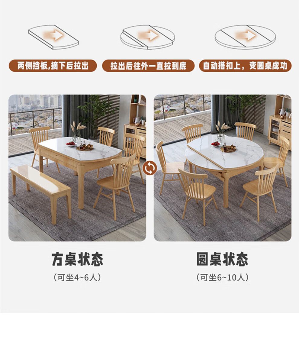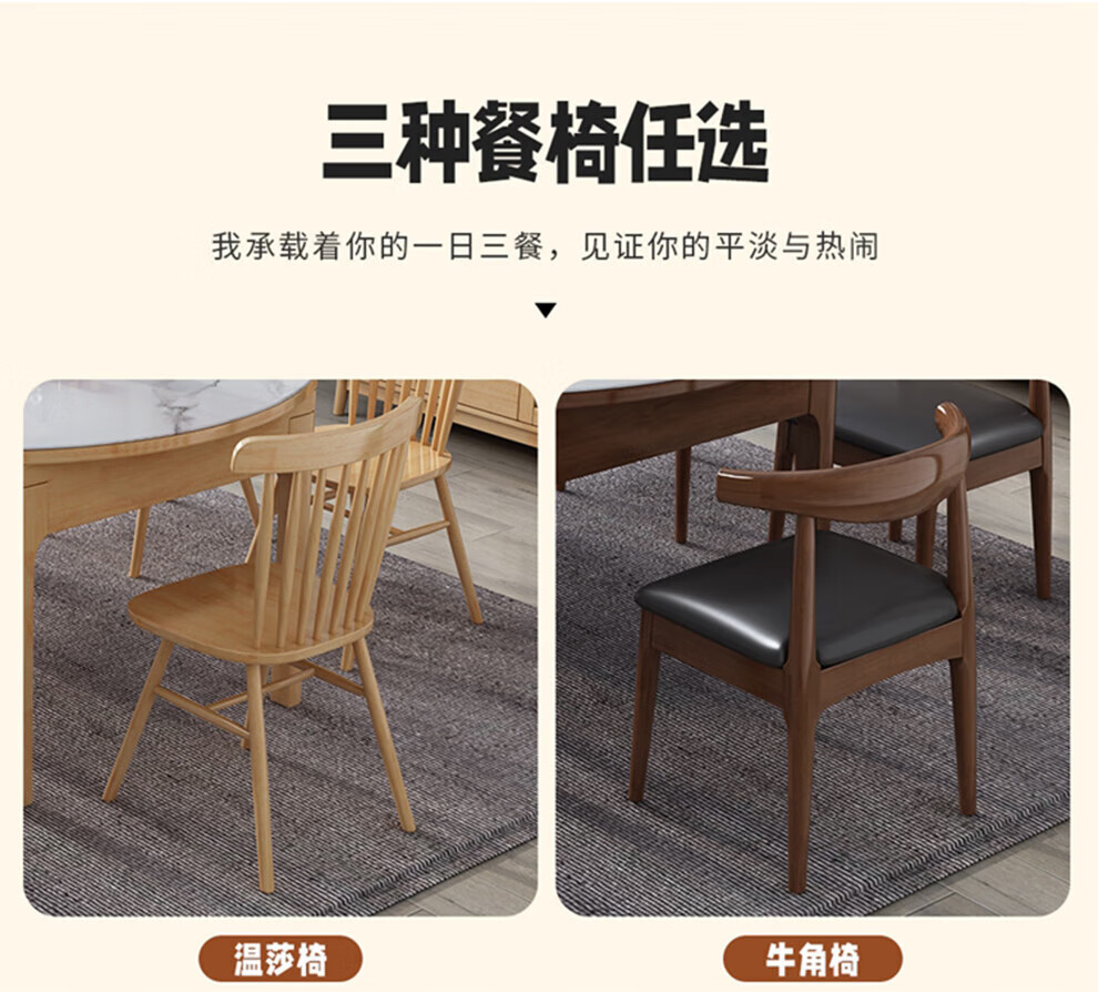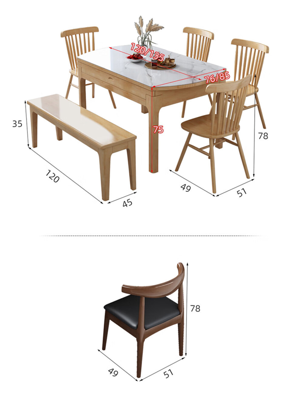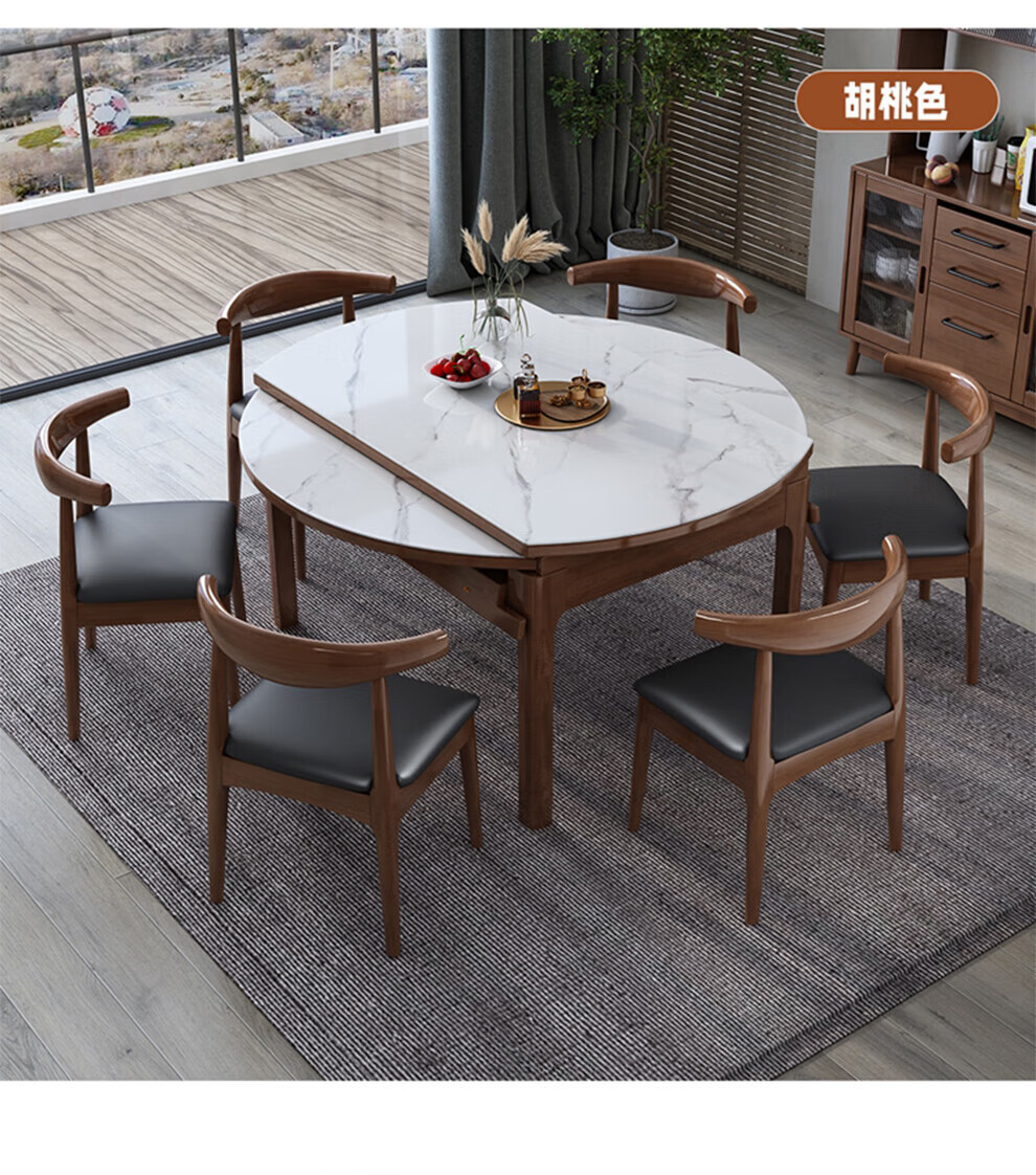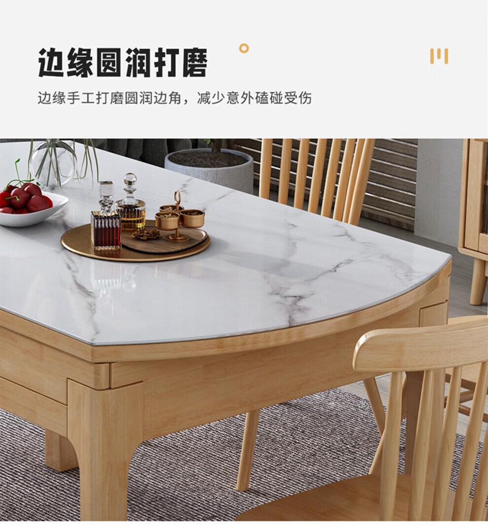 Meja makan kayu Solid dan kursi Nordik, piring batu rumah tangga hotel persegi dan bulat penggunaan ganda sub-restoran furnitur apartemen kecil meja makan