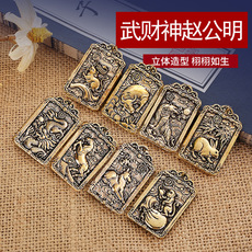 纯黄铜赵公明十二生肖财神令钥匙扣配件五路财神男女招米挂饰吊坠