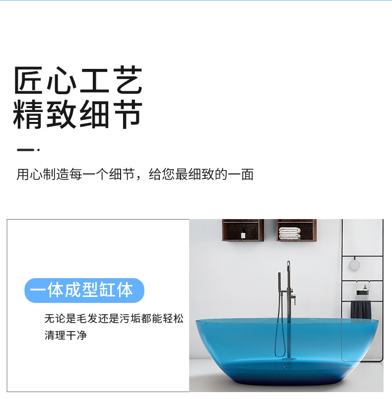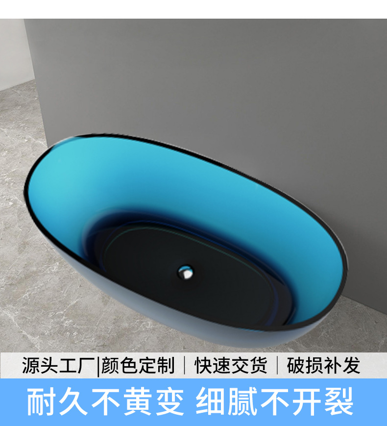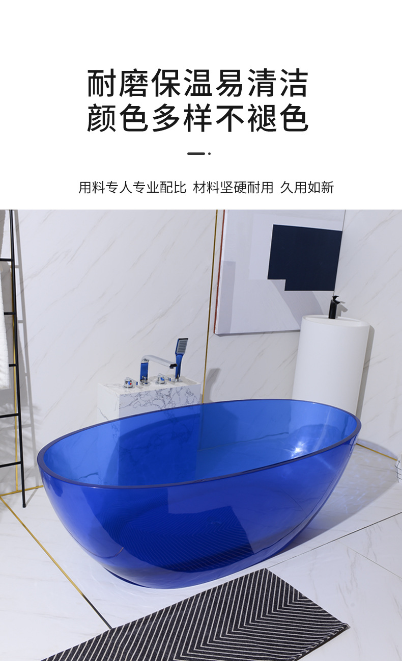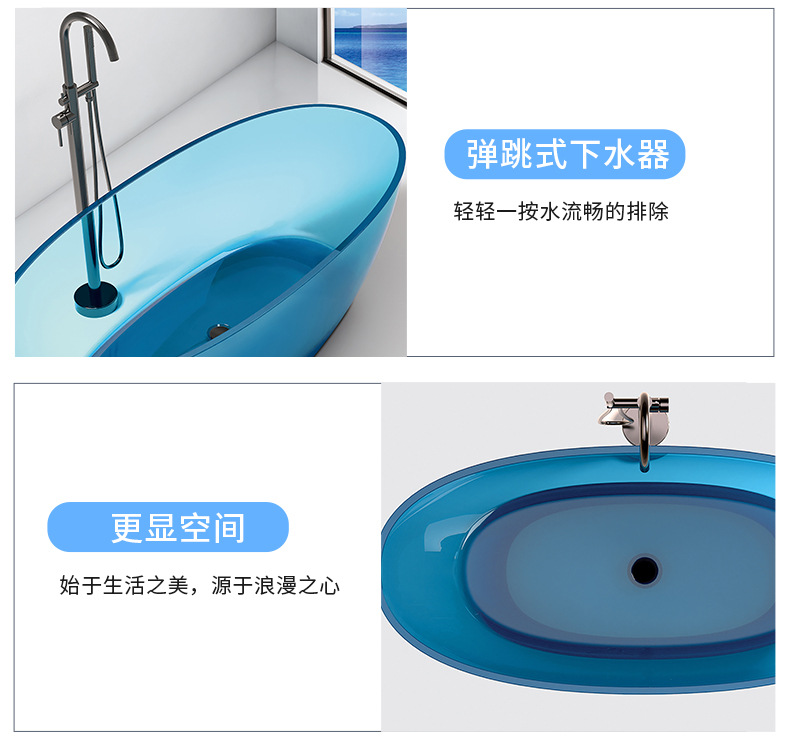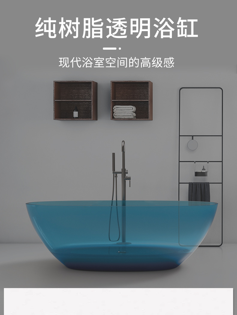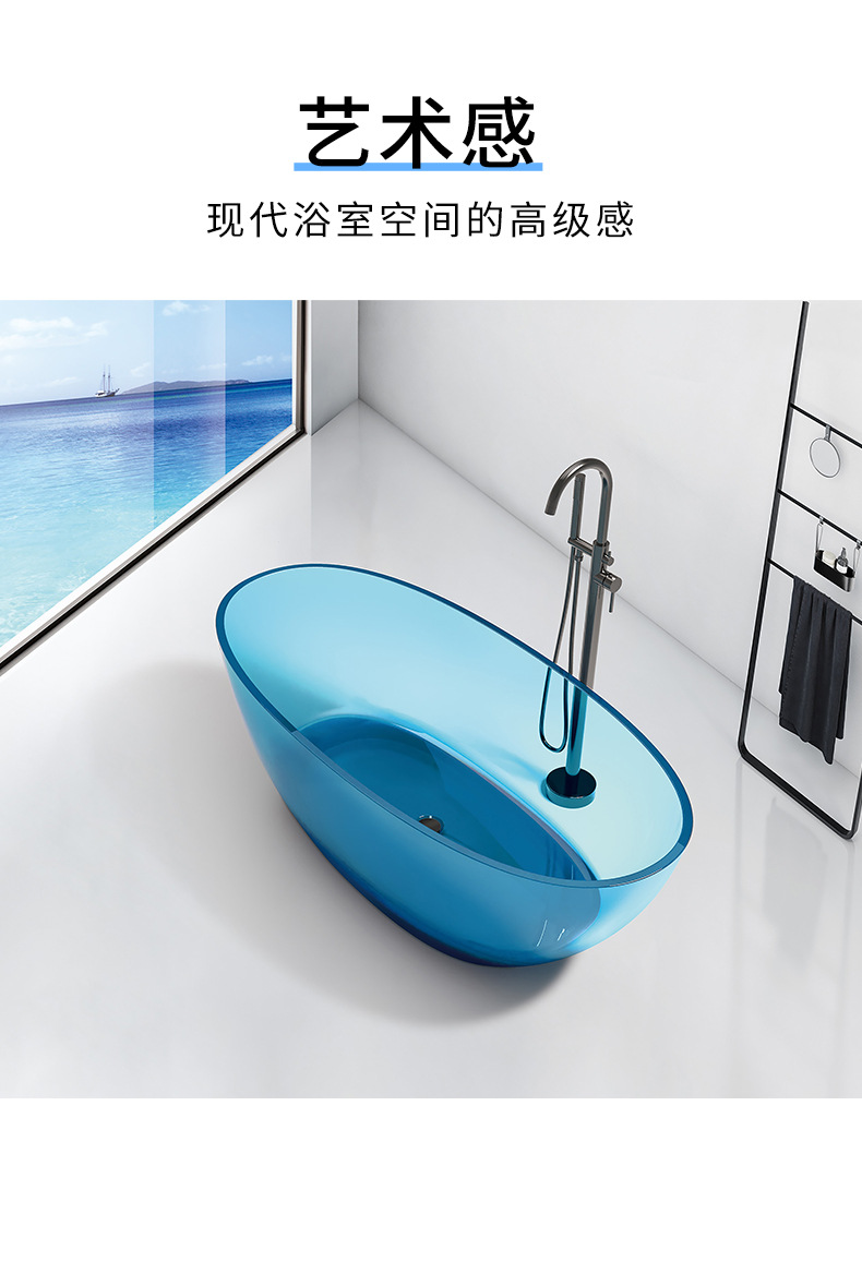 Sumber pabrik penjualan langsung bak mandi transparan oval sederhana ringan mewah fashion all-in-one instalasi-gratis bak mandi resin murni