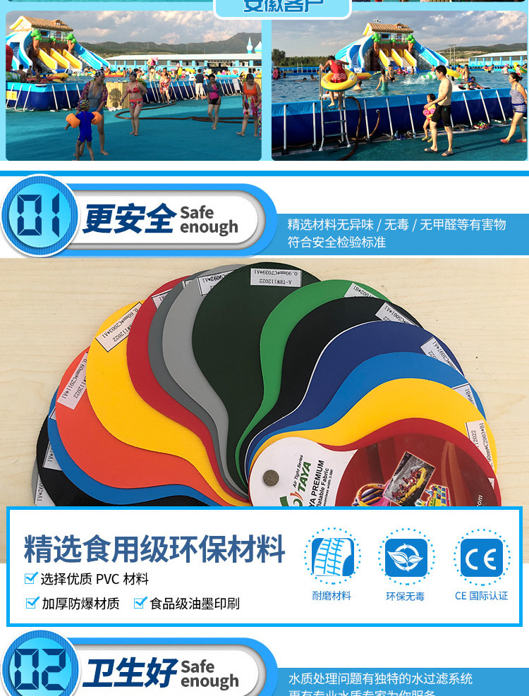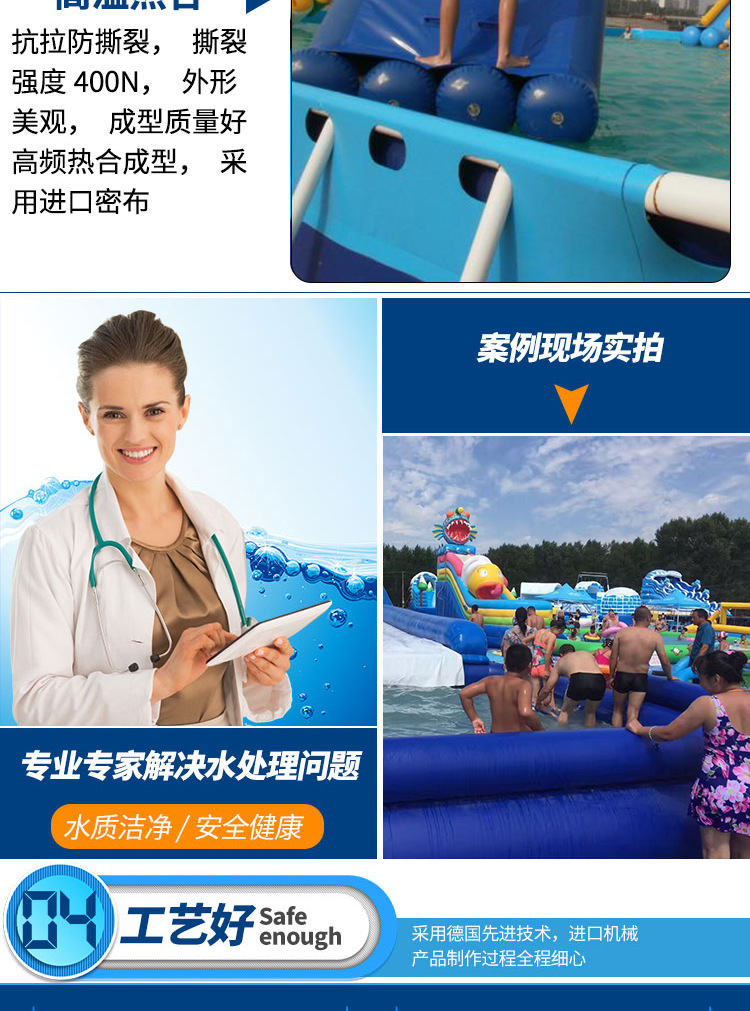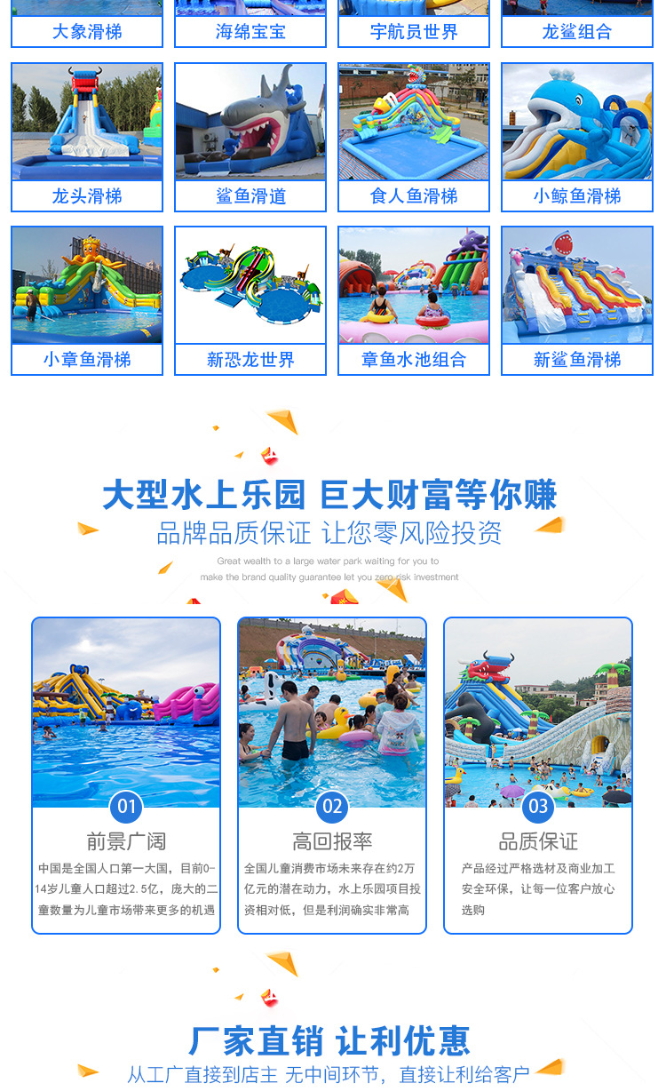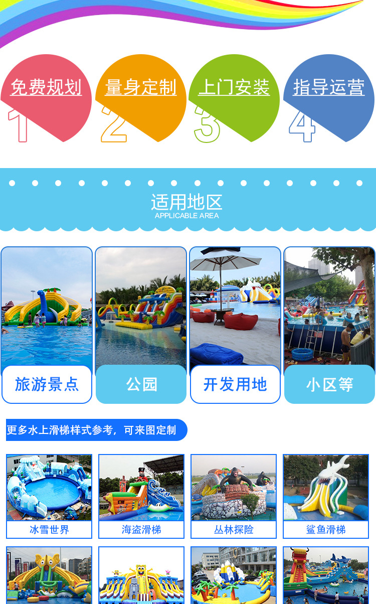 广州正粤充气制品有限公司是一家大型专业生产气模的厂家,我公司占地面积达4000平方,两间大型仓库保证客户产品储存。专业生产大型充气水上乐园、充气水上冲关。水池滑梯组合、充气水池、支架水池、大型充气城堡、充气滑梯、陆地大滑梯、淘气堡、陆地闯关、儿童乐园、大黄鸭、跷跷板、等各种水上漂浮玩具。水上玩具、户外帐篷,趣味运动组合,彩光气模,商业广告卡通、升空球、拱门等,水上游乐设施,海域游乐冲关设备等产品,拥有完整、生产、销售、科学的管理质量认证体系。