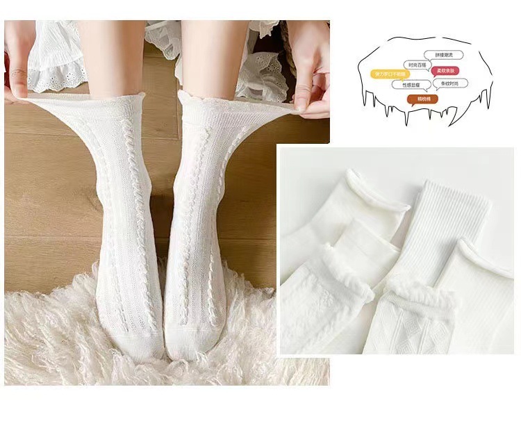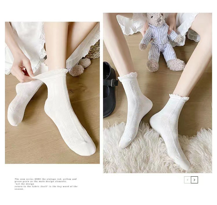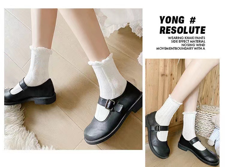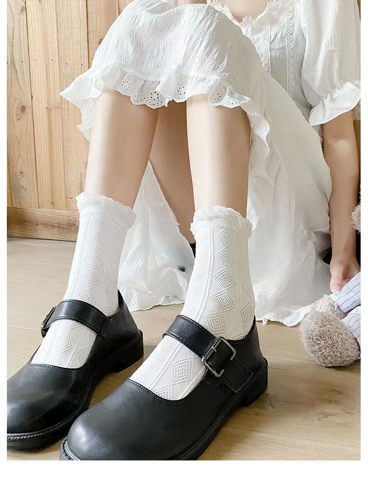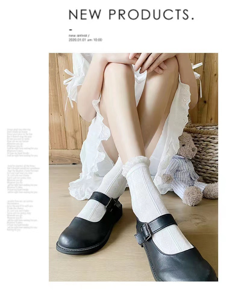 Kaus kaki putih wanita kaus kaki jk Jepang lucu kaus kaki renda lolita kaus kaki setengah betis baru musim semi dan musim panas dengan sepatu Mary Jane