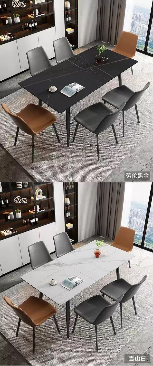 Set meja dan kursi makan modern Nordic yang dapat diperpanjang, meja makan lipat dan dapat diperpanjang multifungsi untuk apartemen kecil dengan nuansa mewah ringan.