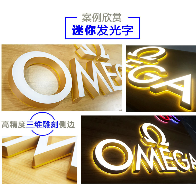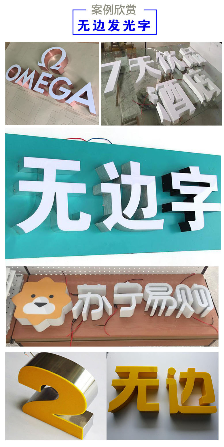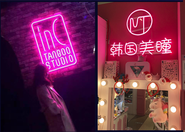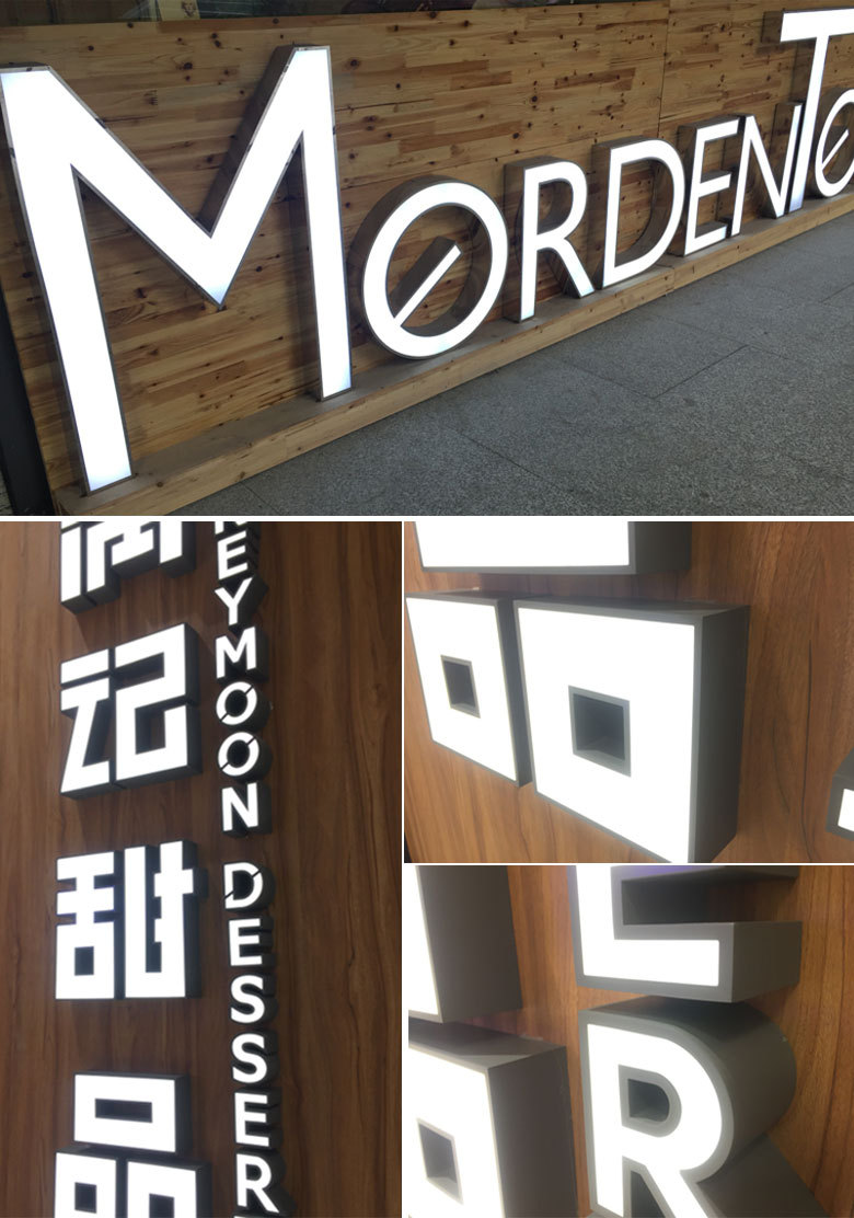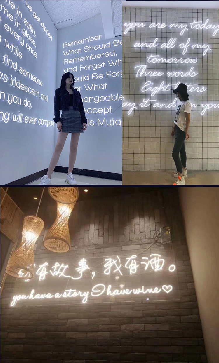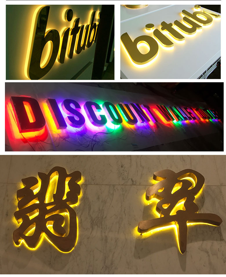 Led papan reklame karakter bercahaya buatan pabrik papan tanda pintu baja tahan karat tanpa bingkai lampu neon akrilik karakter mini