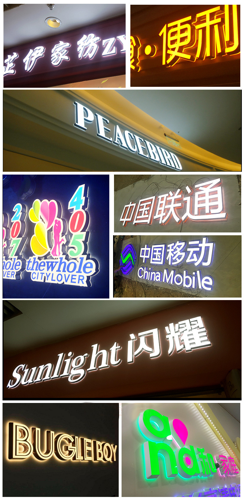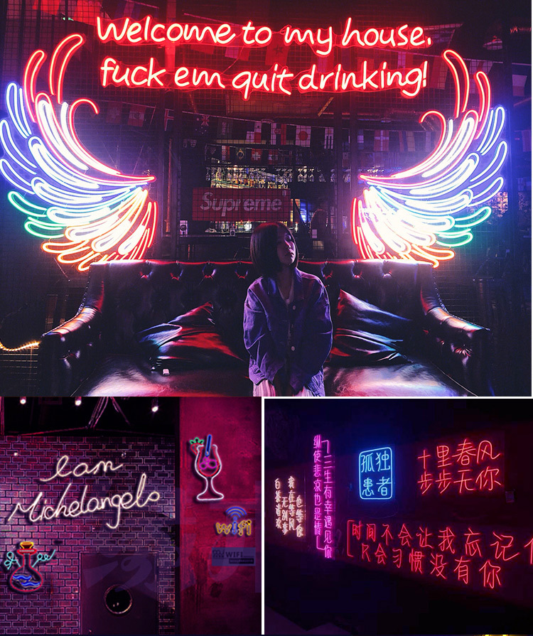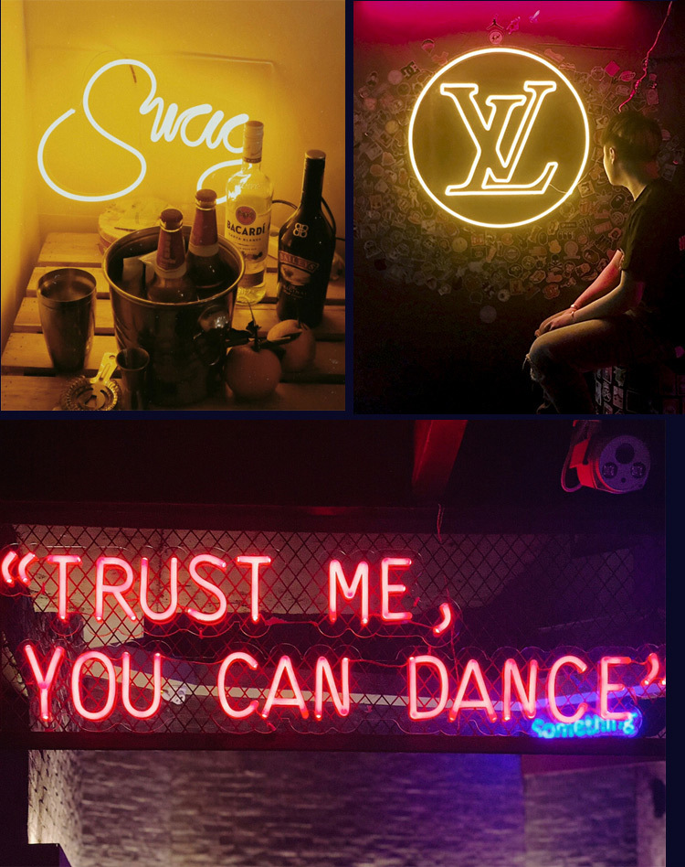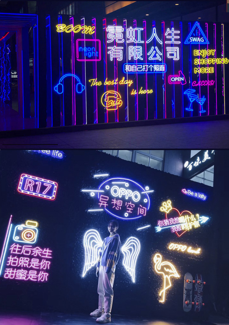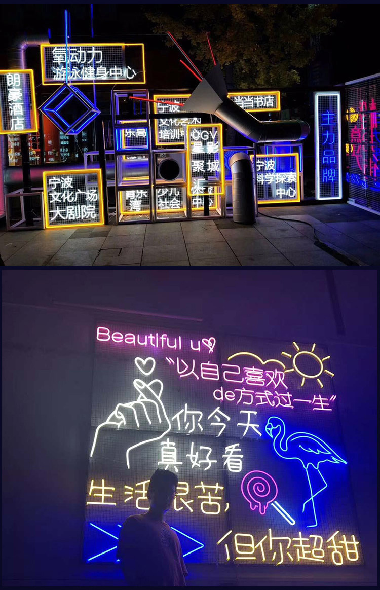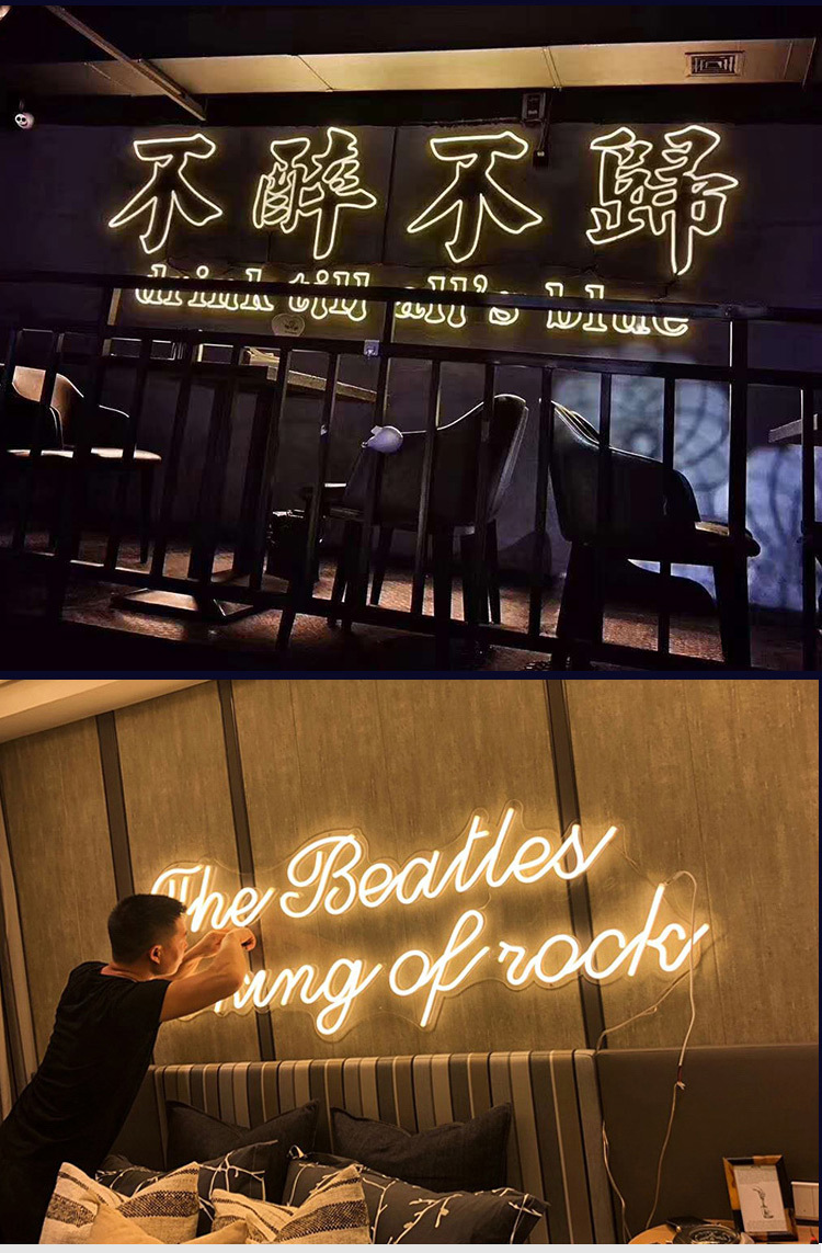 Led papan reklame karakter bercahaya buatan pabrik papan tanda pintu baja tahan karat tanpa bingkai lampu neon akrilik karakter mini