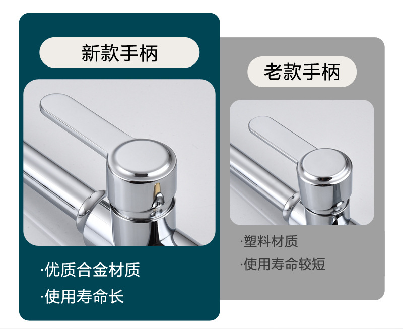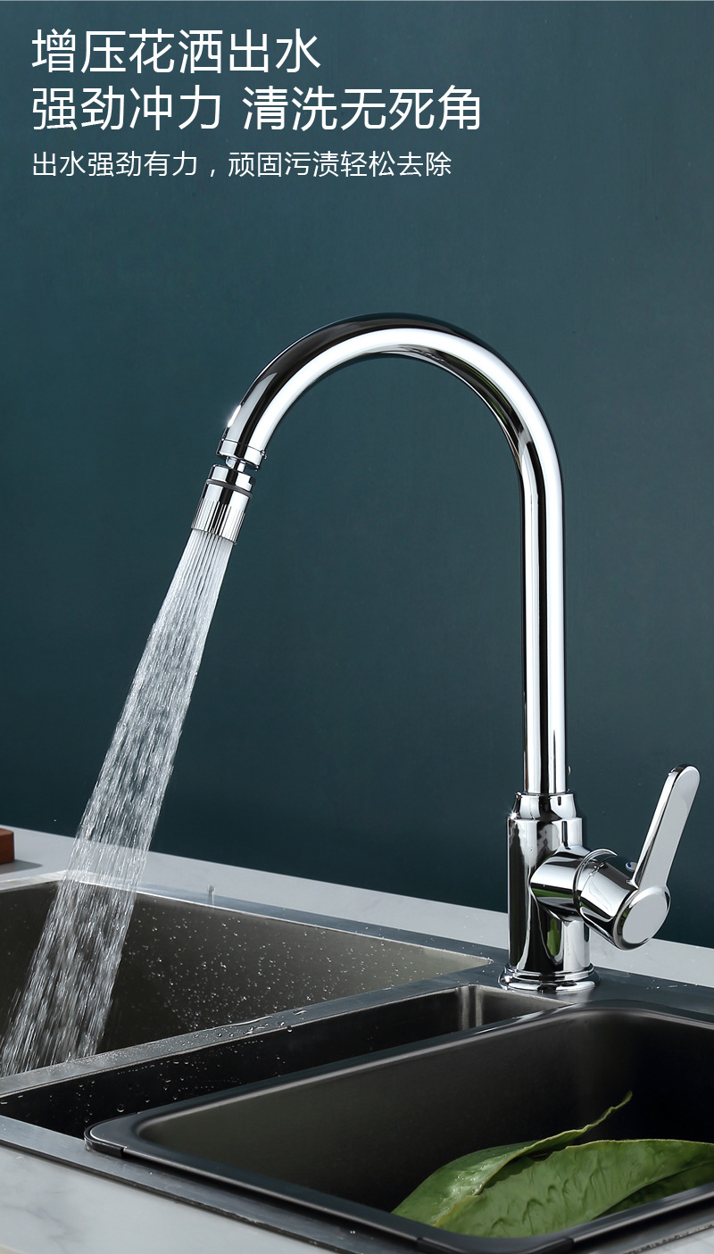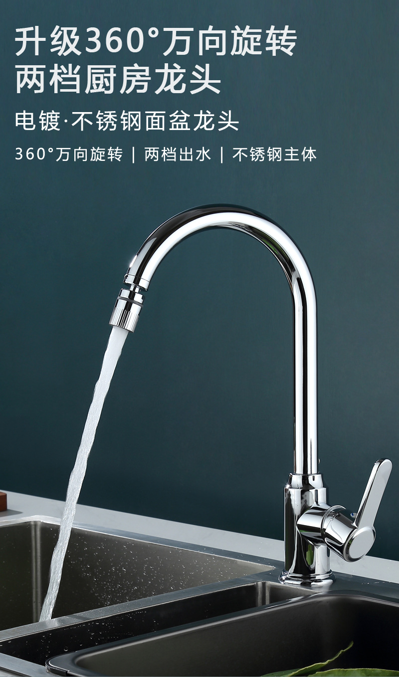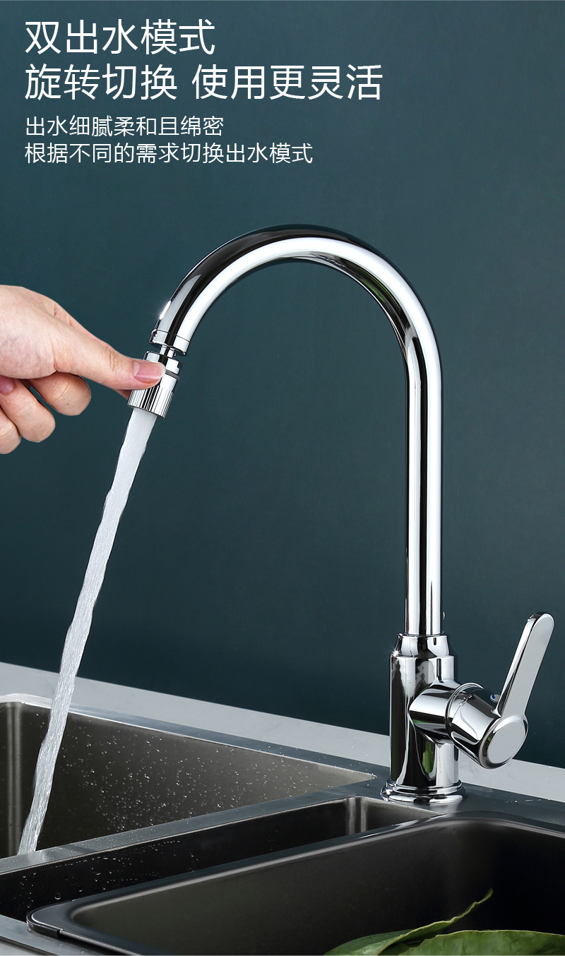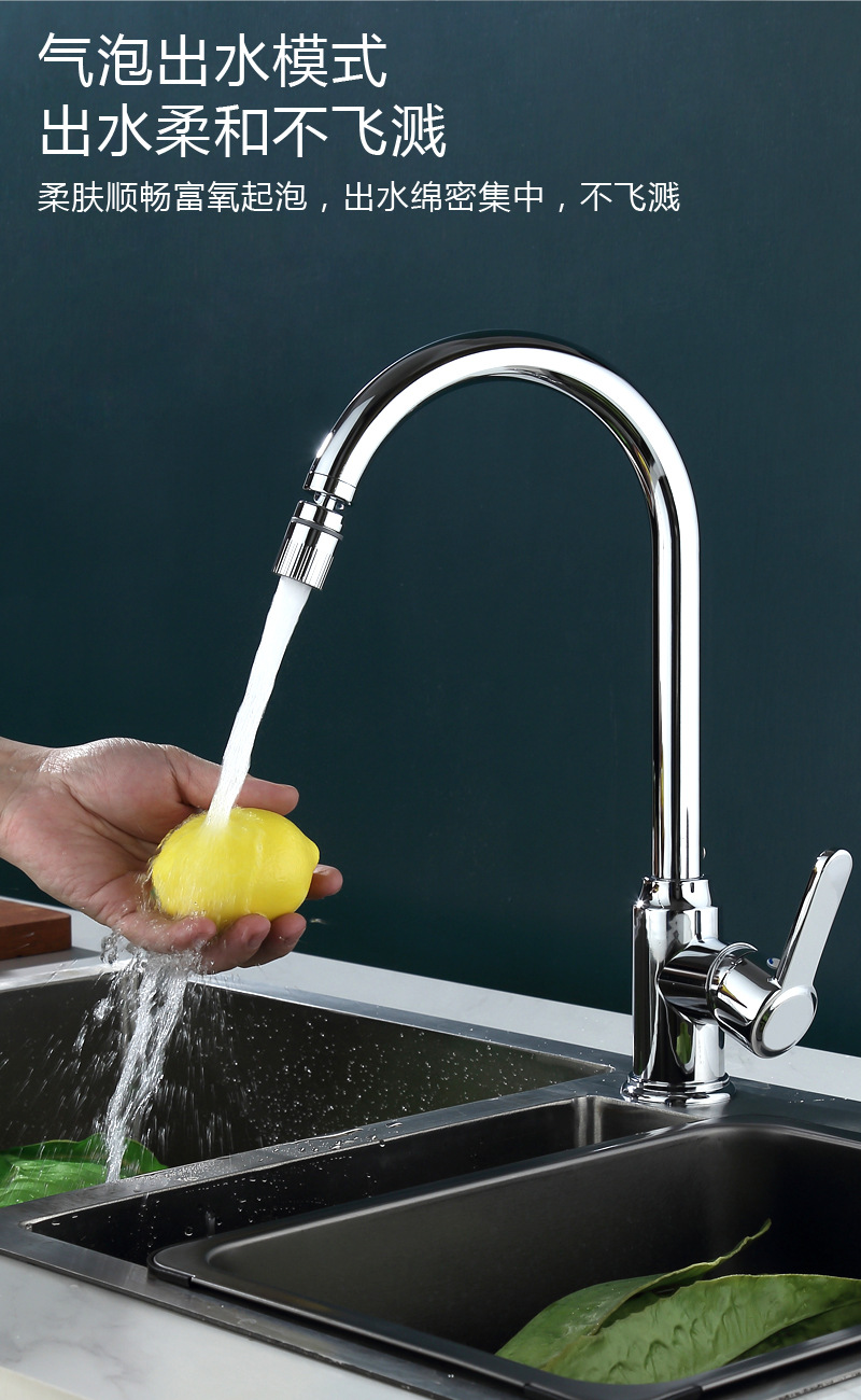 Keran wastafel dapur rumah tangga, kepala kandang air tahan percikan bak cuci dua gigi universal guna ganda panas dan dingin