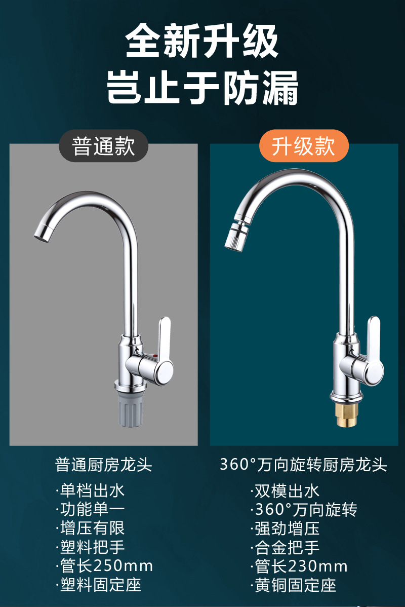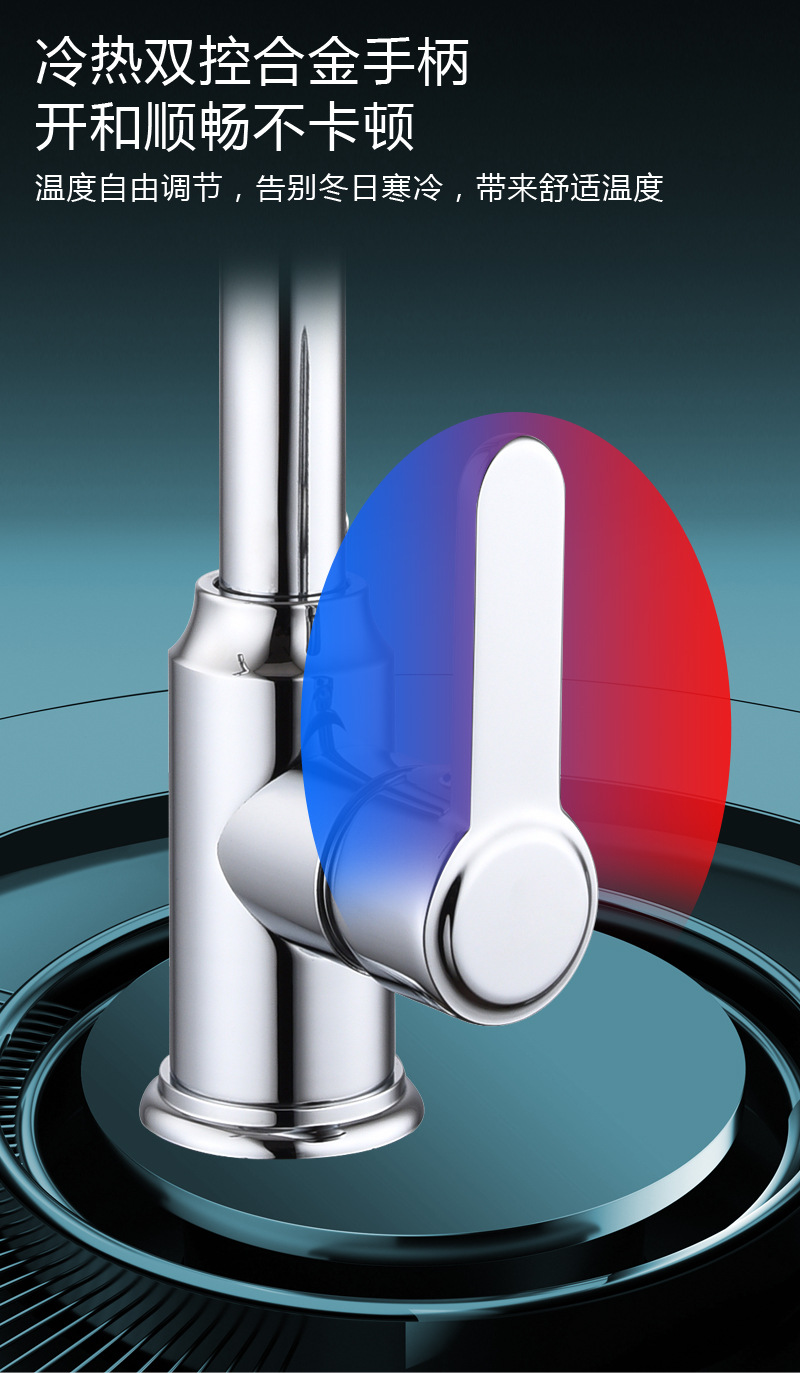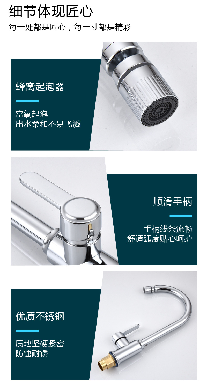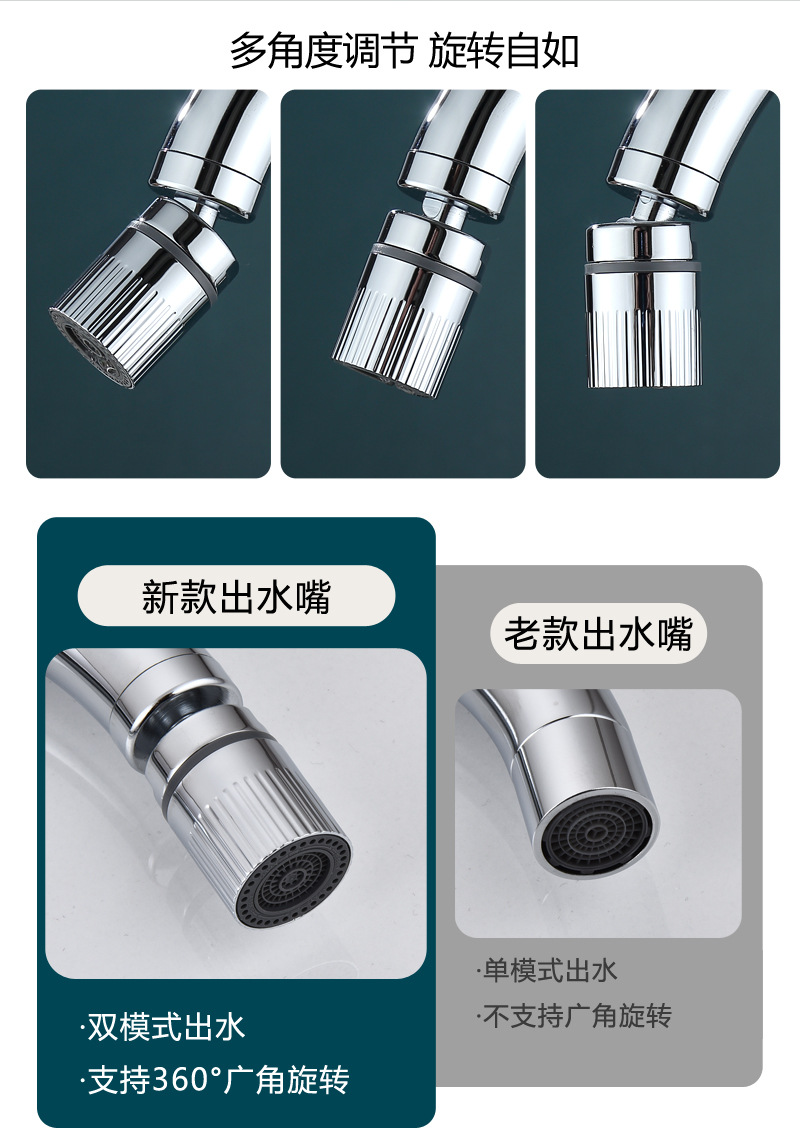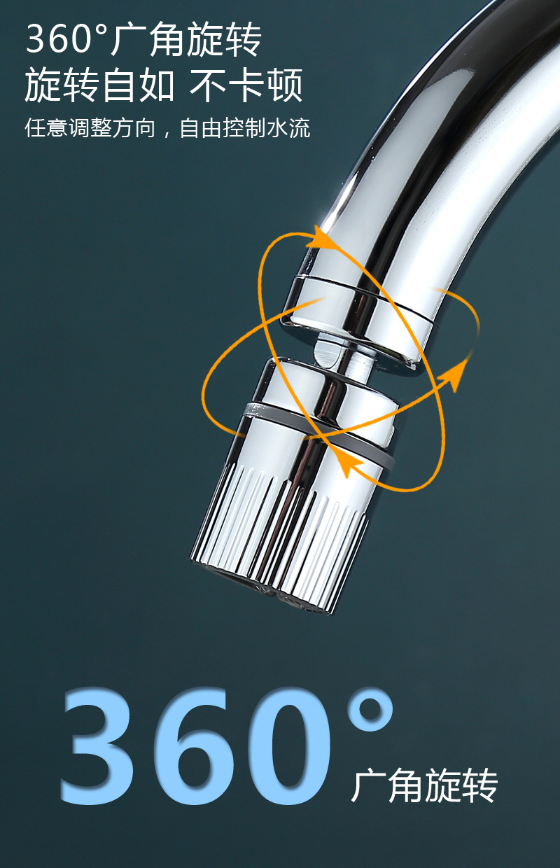 Keran wastafel dapur rumah tangga, kepala kandang air tahan percikan bak cuci dua gigi universal guna ganda panas dan dingin