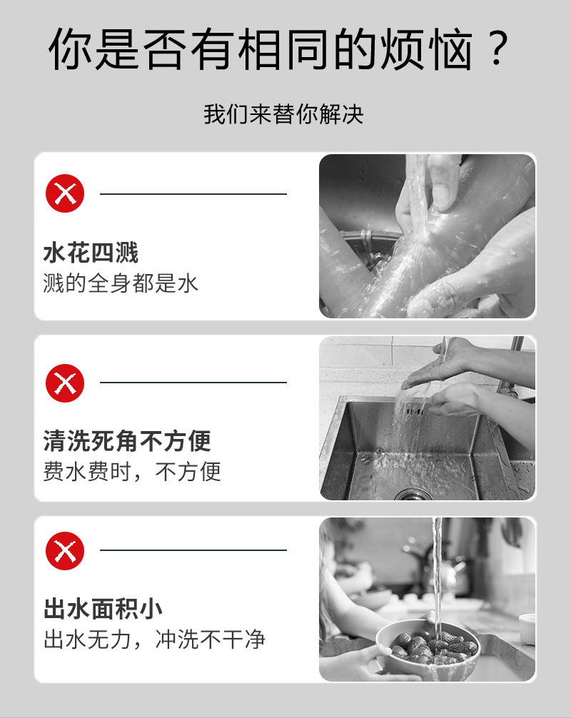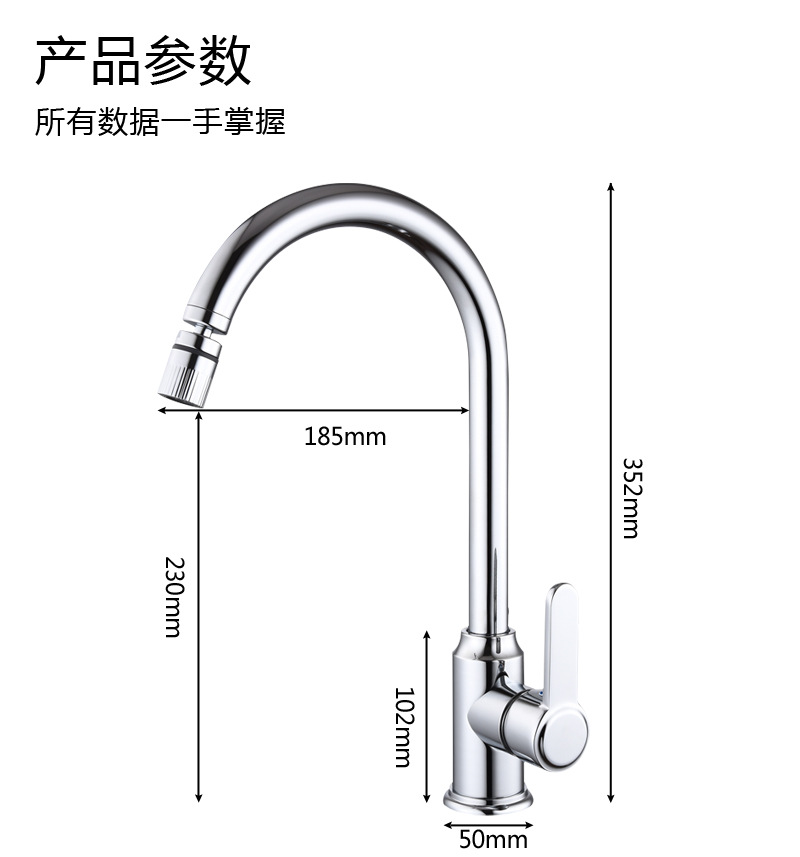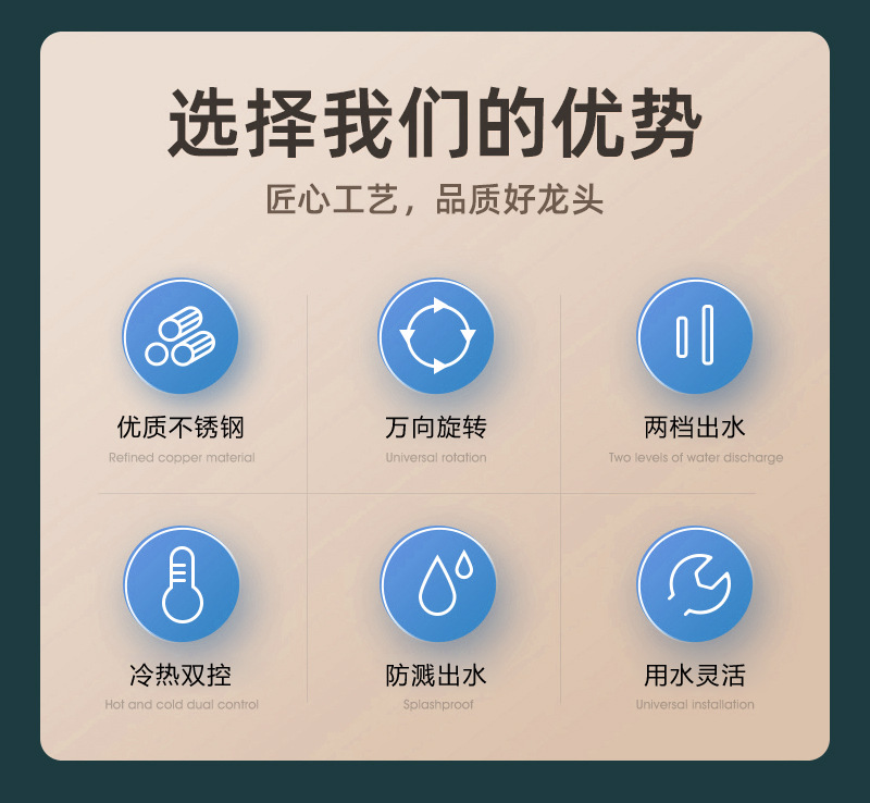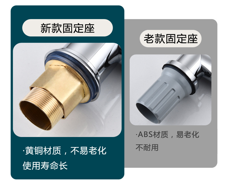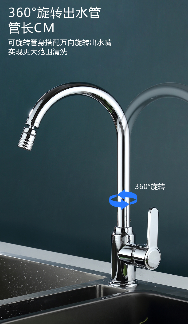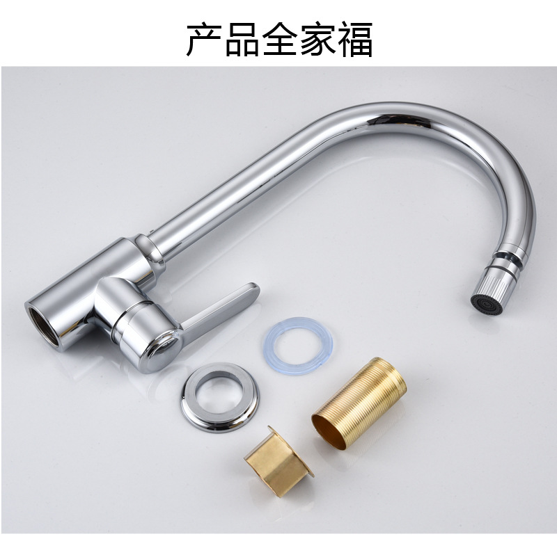 Keran wastafel dapur rumah tangga, kepala kandang air tahan percikan bak cuci dua gigi universal guna ganda panas dan dingin