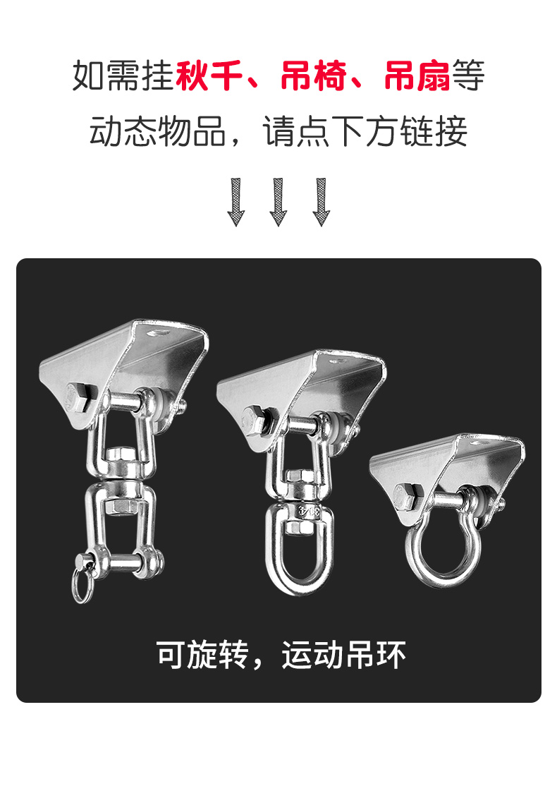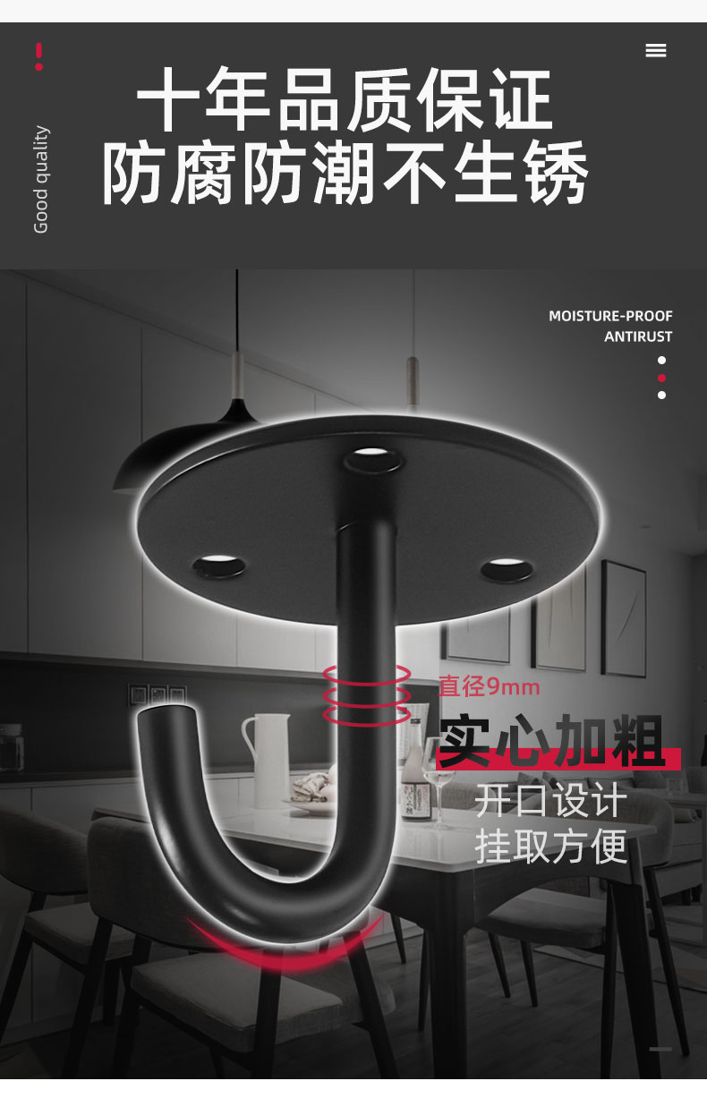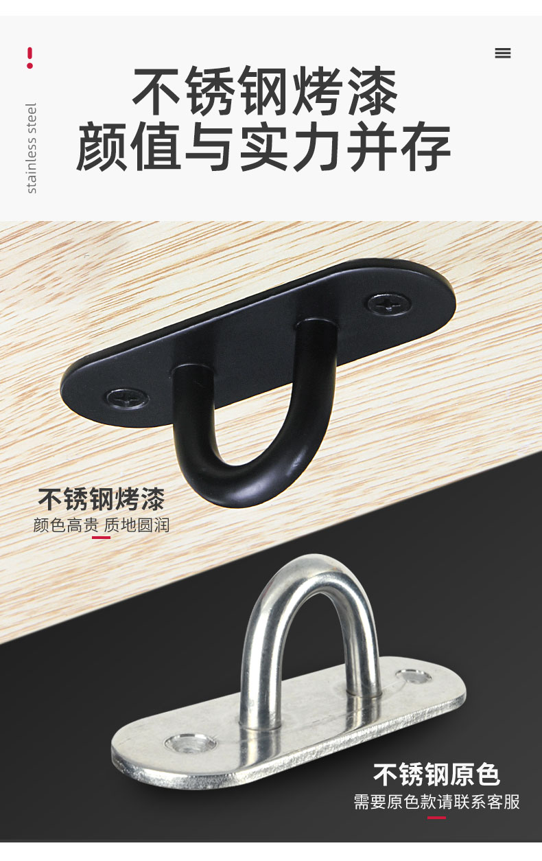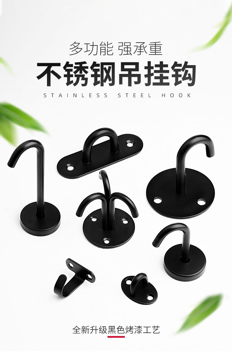 Kait langit-langit baja tahan karat hitam 6S untuk menggantung layar proyektor, lentera, kait gantung tugas berat di atas langit-langit.