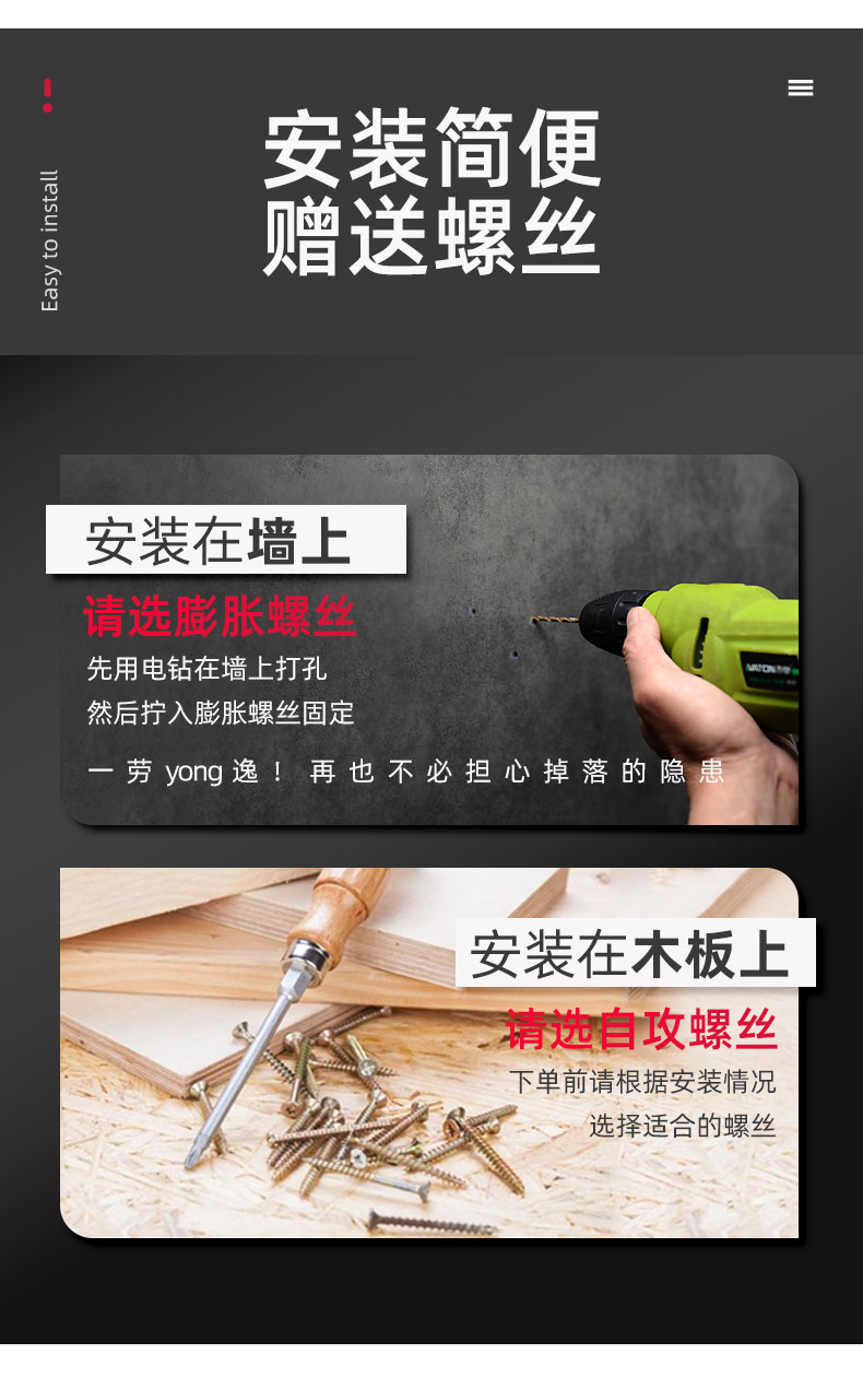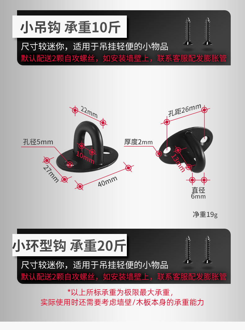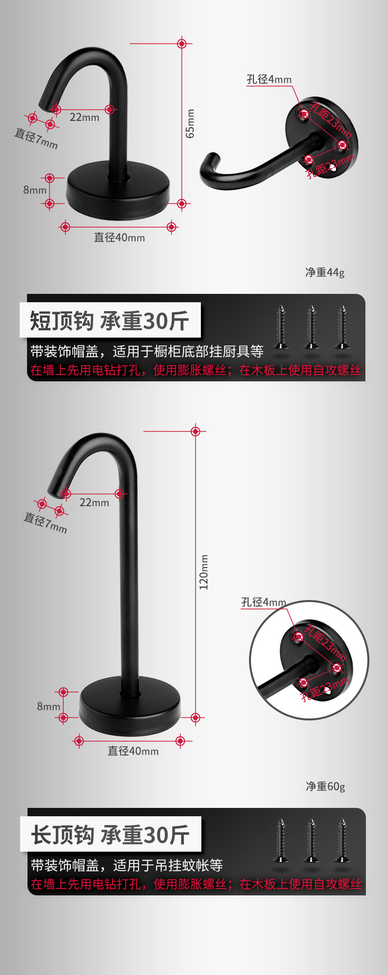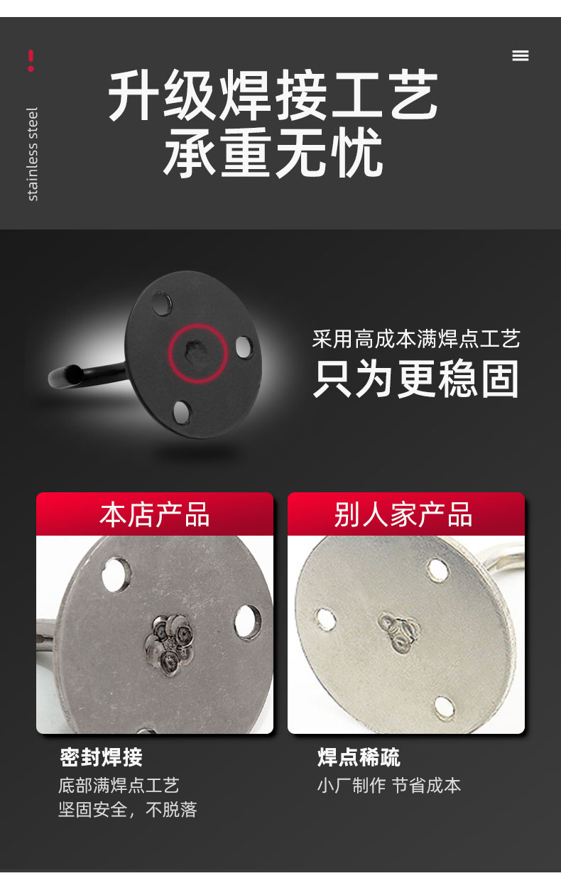 Kait langit-langit baja tahan karat hitam 6S untuk menggantung layar proyektor, lentera, kait gantung tugas berat di atas langit-langit.