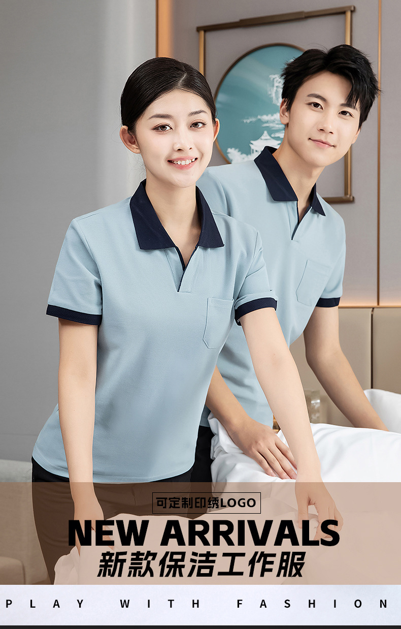 Kaus lengan pendek bersih-bersih properti baru T-shirt petugas Hotel kamar mandi bibi pembersih pakaian kerja