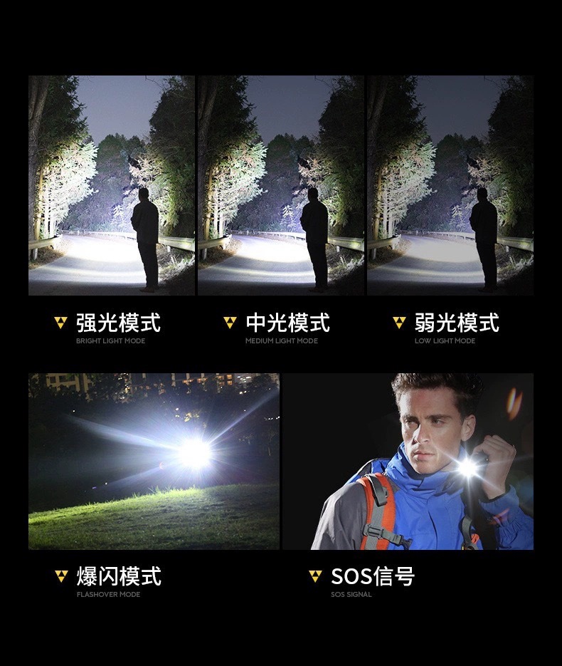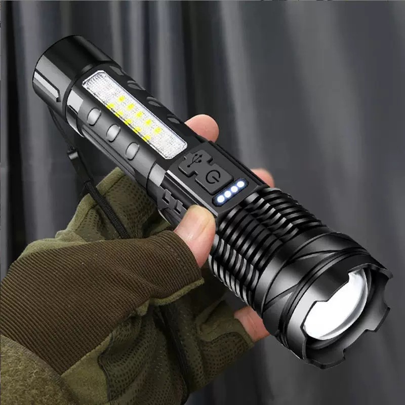A76 senter zoom teleskopik LED daya tinggi, senter listrik display luar ruangan pencahayaan tahan lama