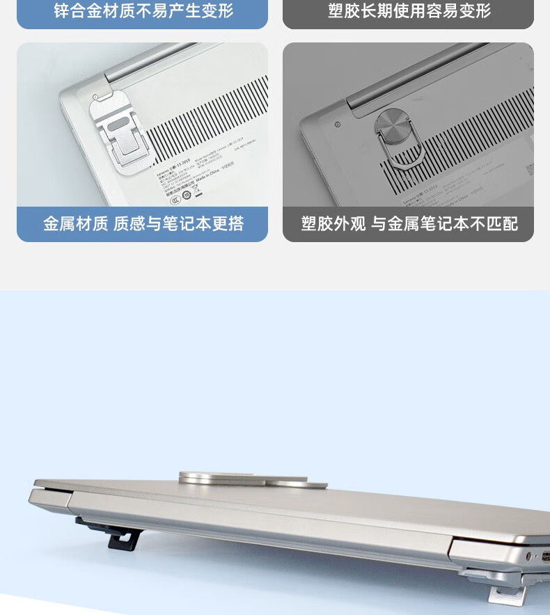 Penyangga laptop mini portabel, penambah ketinggian, alas kaki kecil dari paduan seng, rak pendingin, alas alas