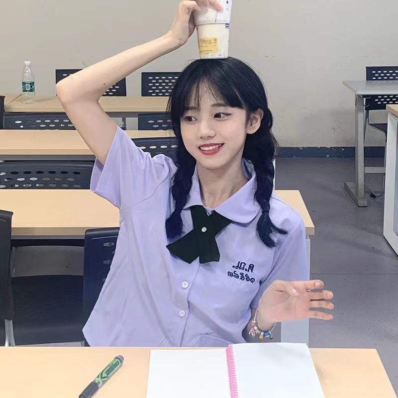 Seragam sekolah Thailand Perempuan, seragam sekolah gaya sama, kemeja lengan panjang, rok pendek JK, setelan seragam kelas wisuda