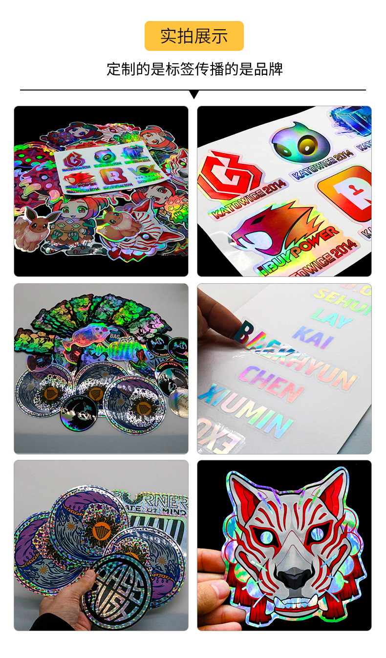 Stiker perekat Laser stiker bagasi cetak tangan akun ins stiker kepribadian mobil laser label warna-warni kustomisasi