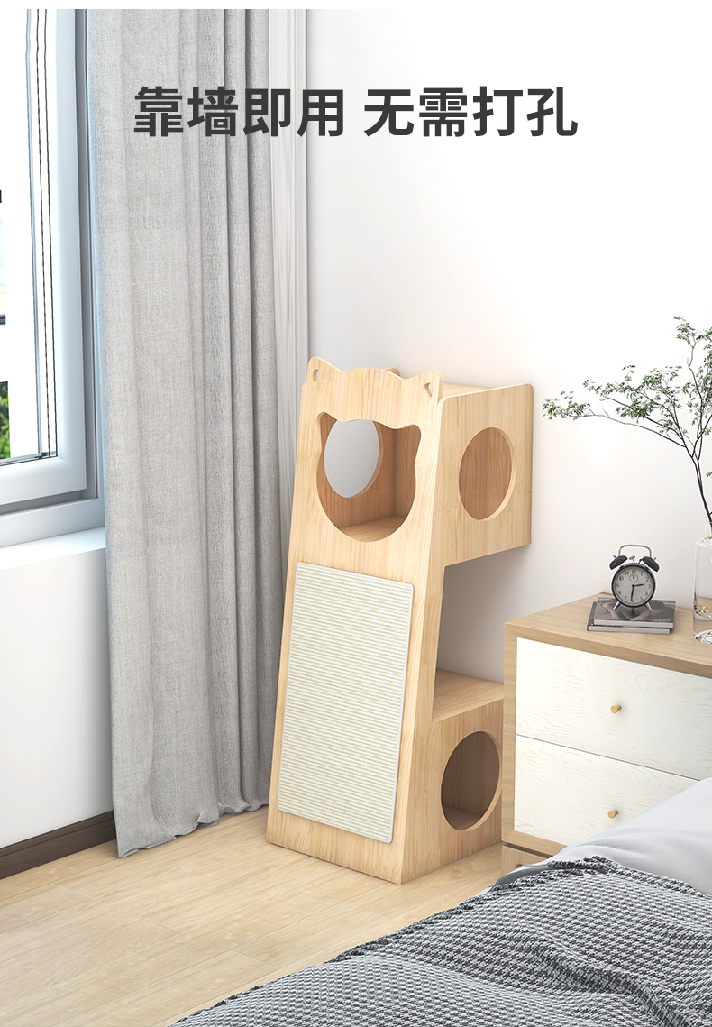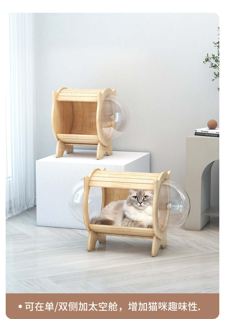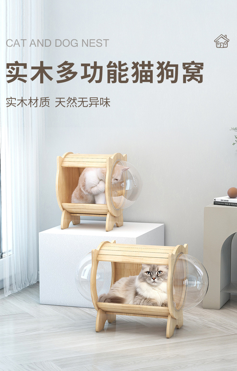 Rumah kucing multifungsi baru, rumah kucing kayu solid, alas garukan kucing dari sisal, sarang kucing kapsul ruang angkasa, papan garukan kucing.