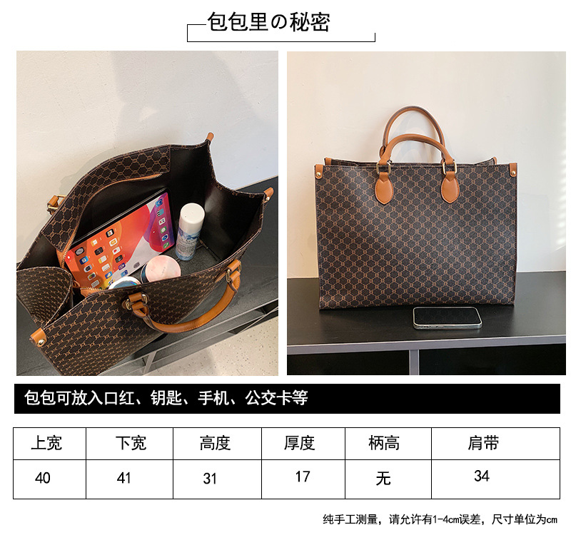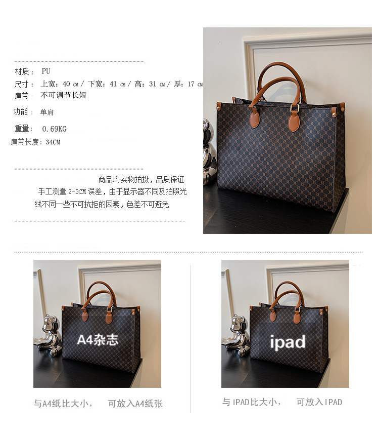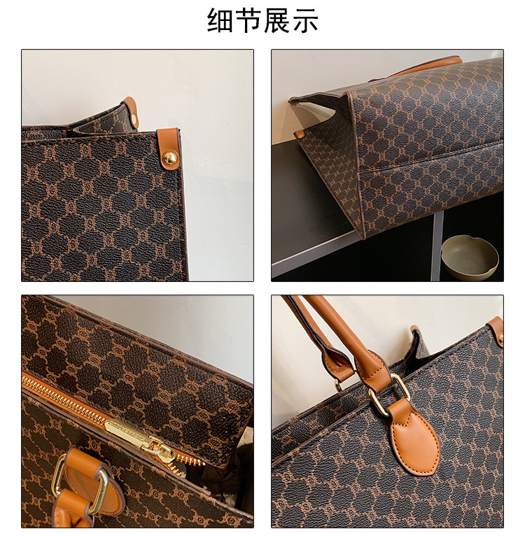 L Home tas wanita kapasitas besar tas bahu retro Eropa dan Amerika tas tote huruf presbiopi tas tangan komuter PU wanita