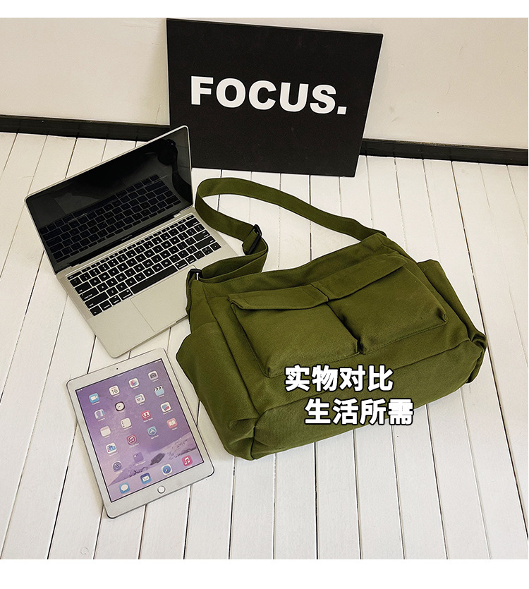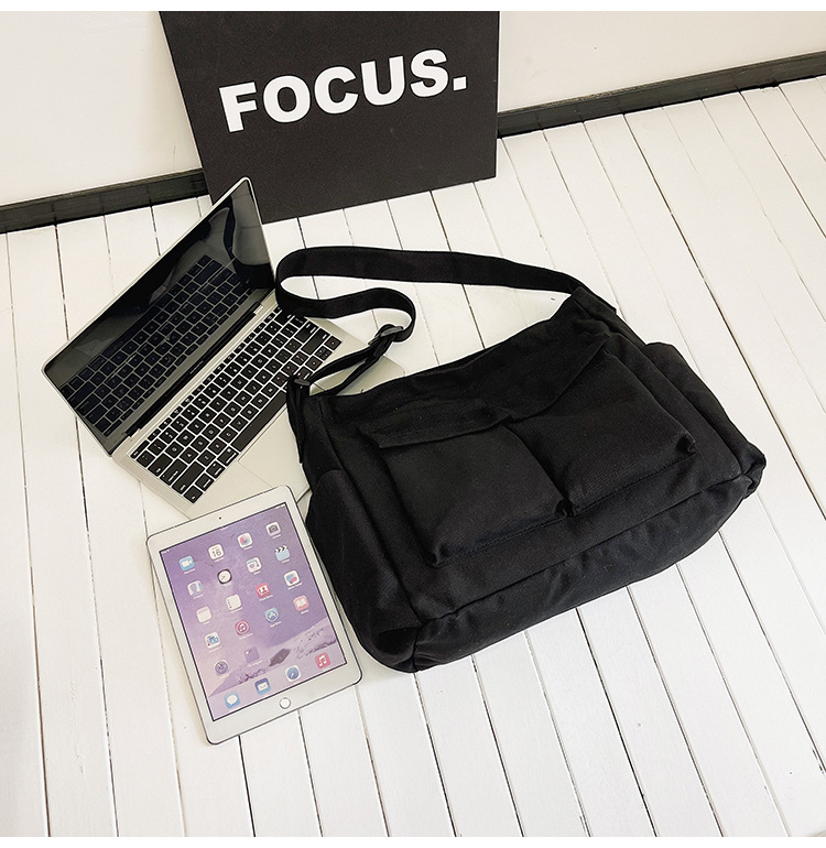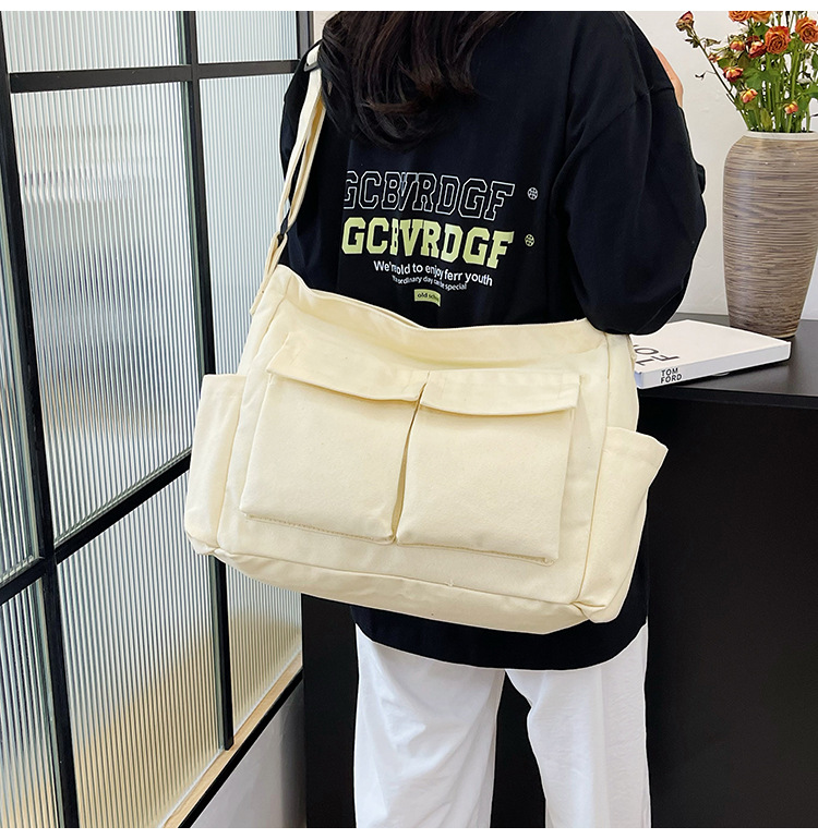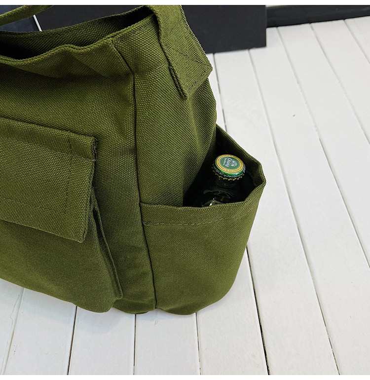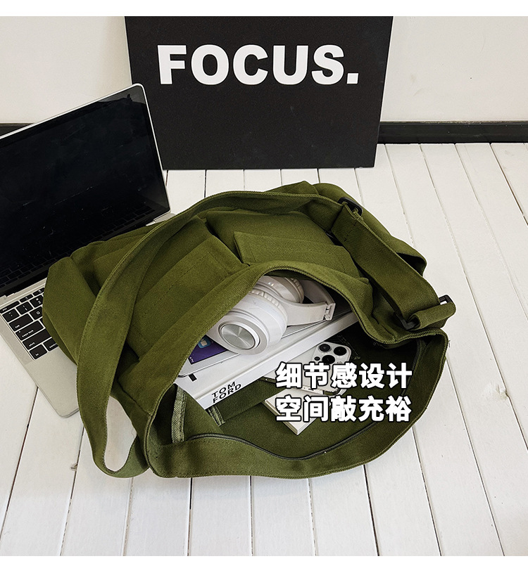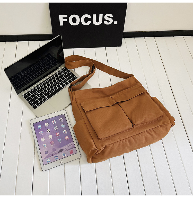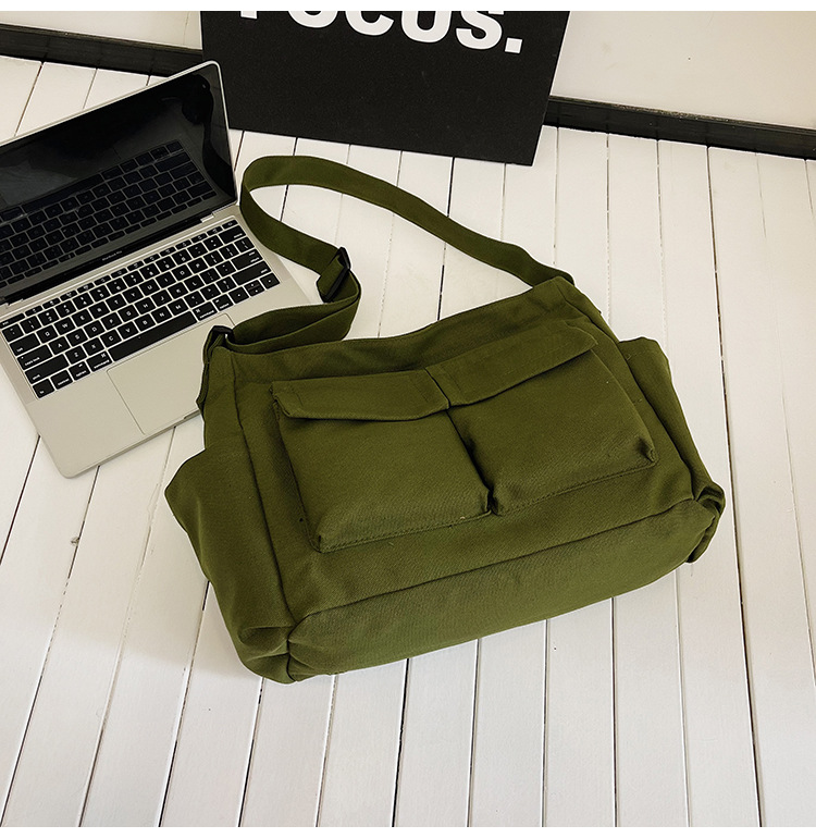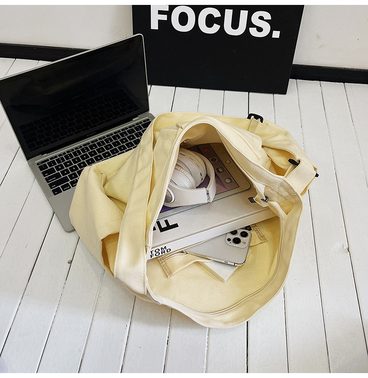 Tas bahu gaya Workwear pria dan wanita, tas ins kanvas tas sekolah siswa jalan kapasitas besar artistik tas kasual