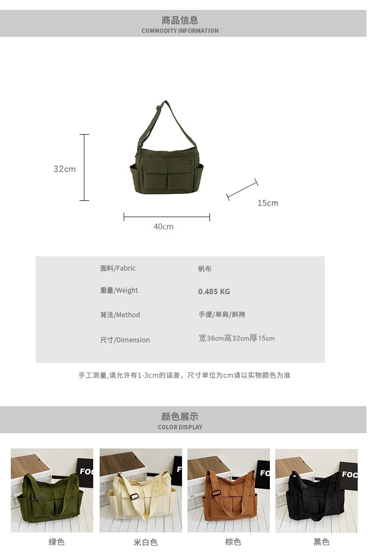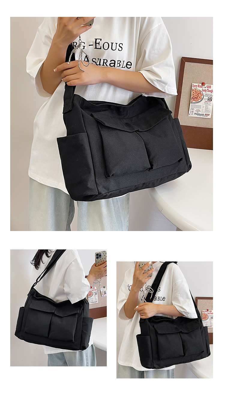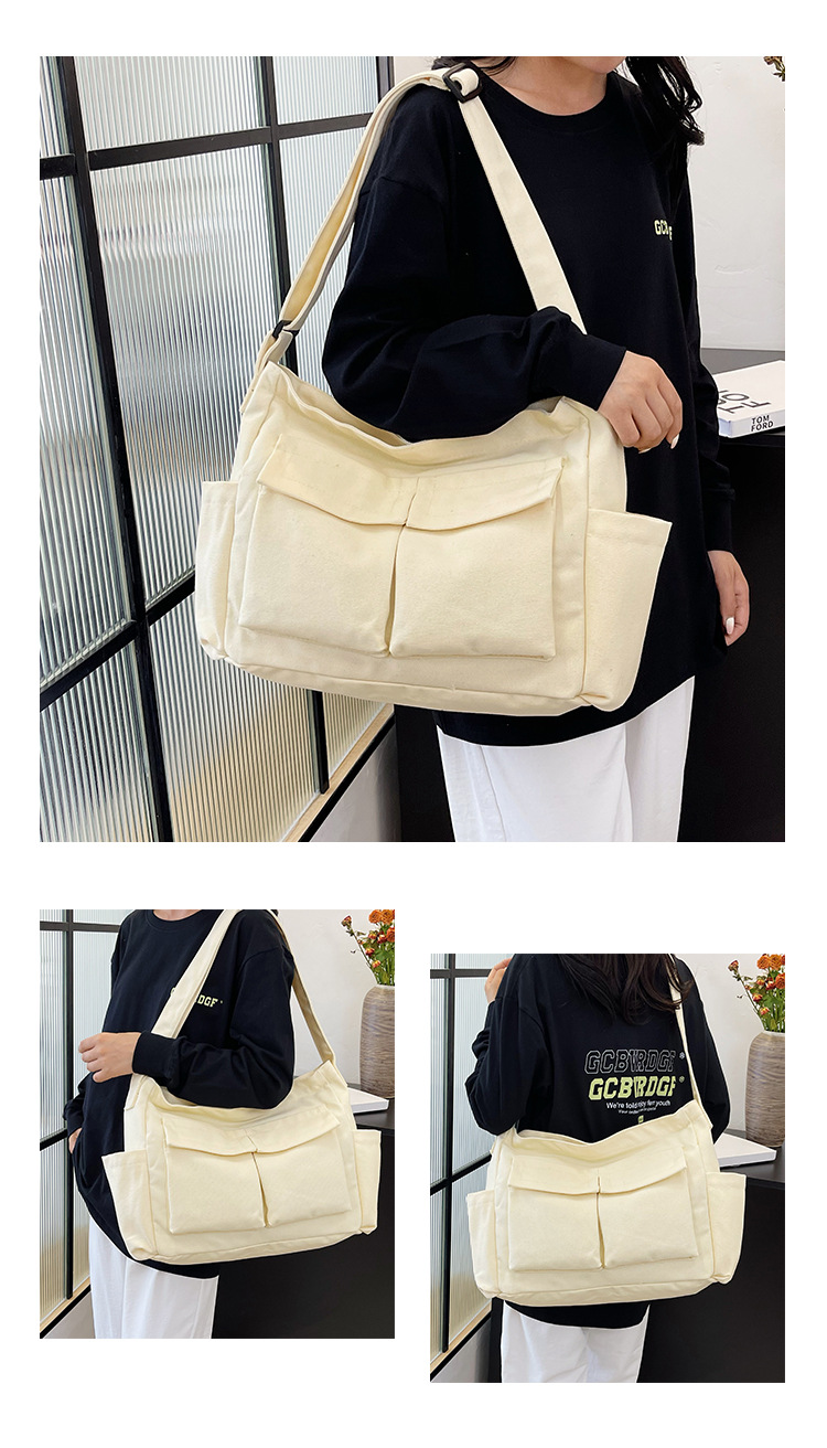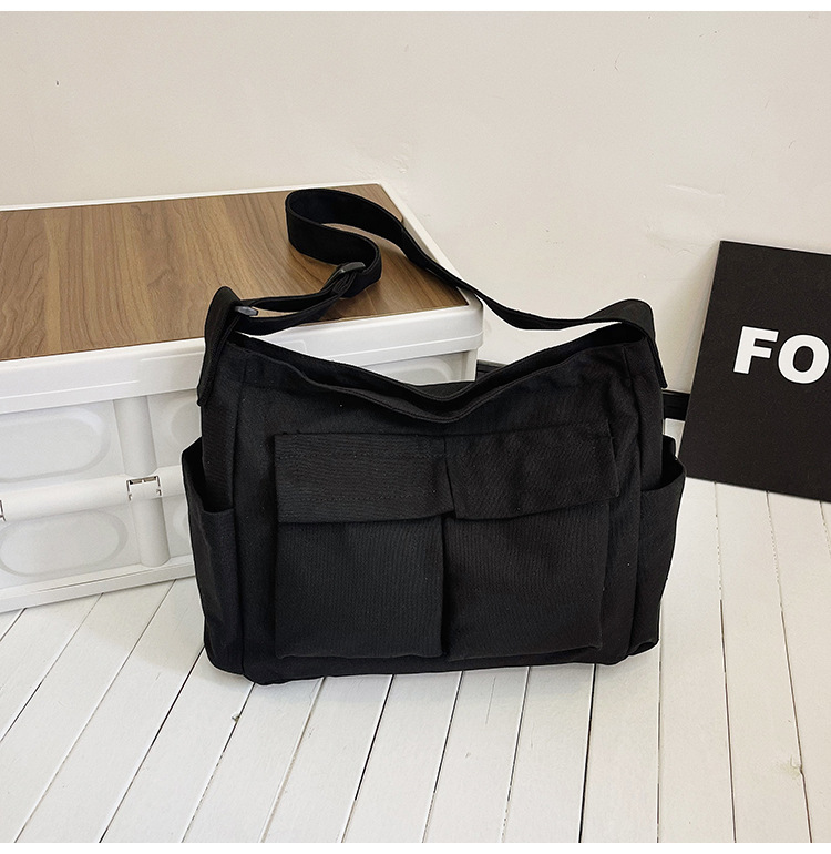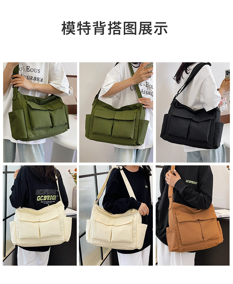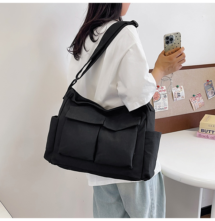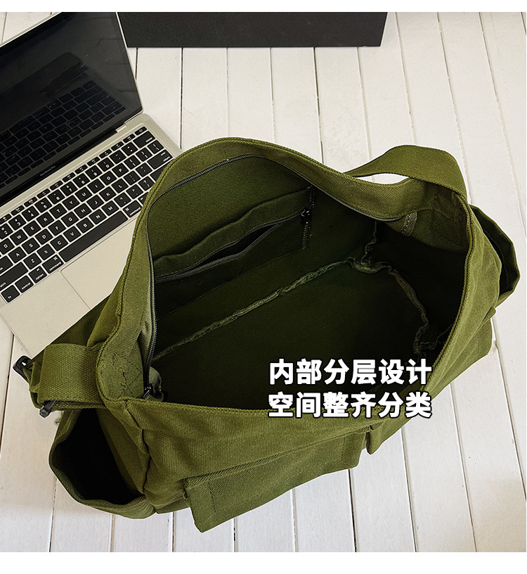 Tas bahu gaya Workwear pria dan wanita, tas ins kanvas tas sekolah siswa jalan kapasitas besar artistik tas kasual