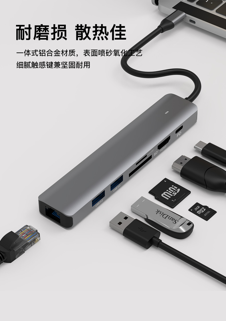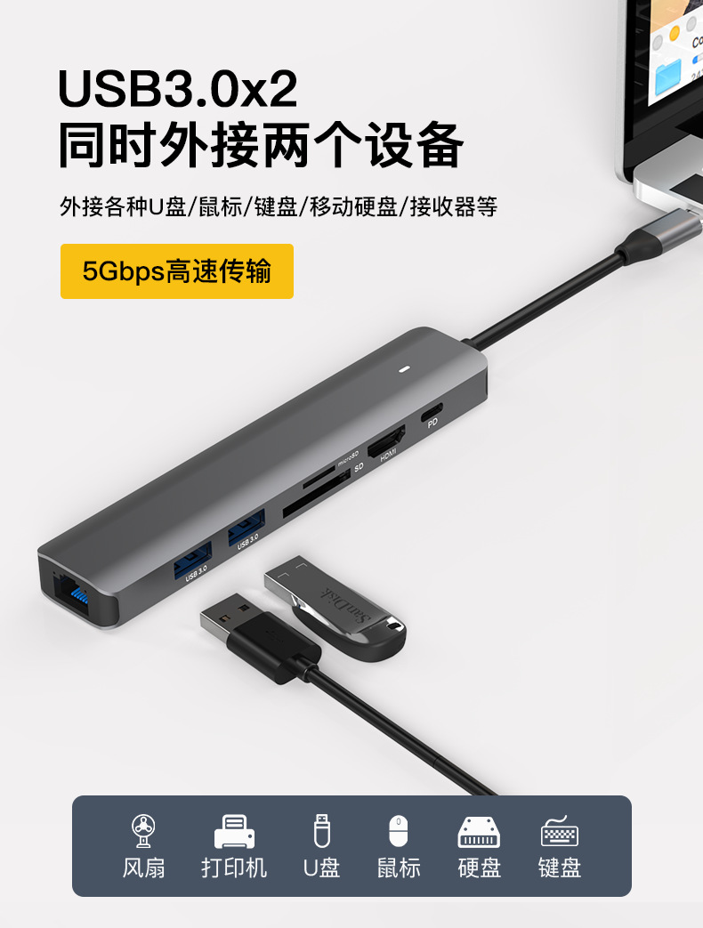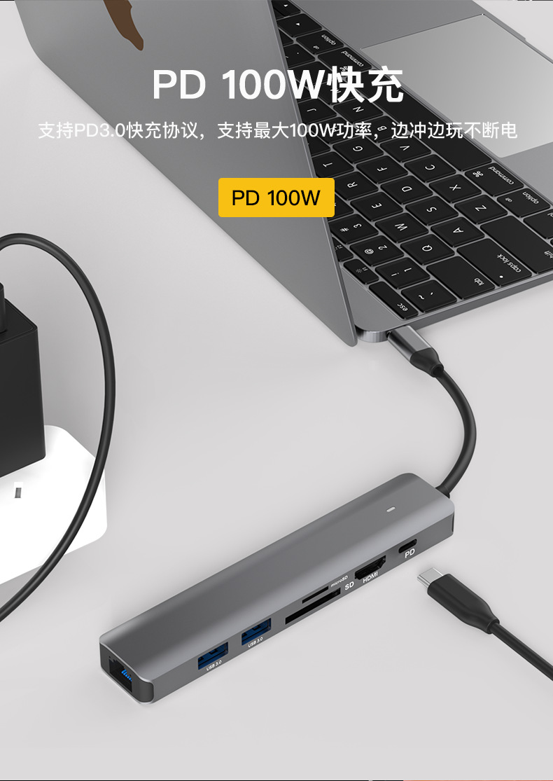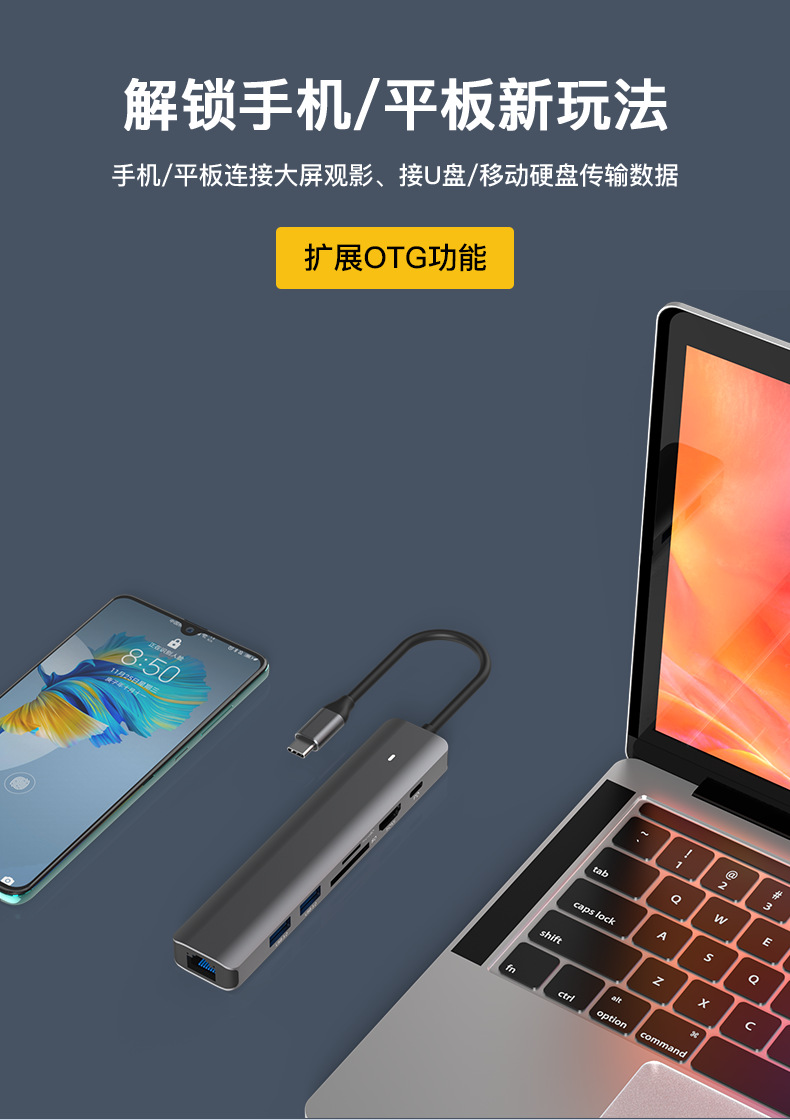 Stasiun dok tipe-c hdmi2.0 port jaringan gigabit 3.0 usb splitter PD100w notebook transmisi kecepatan tinggi 4K