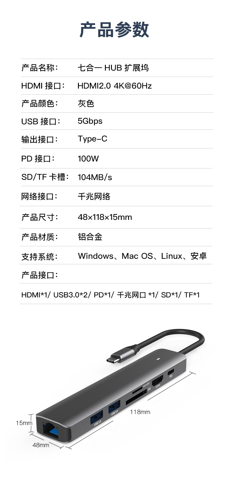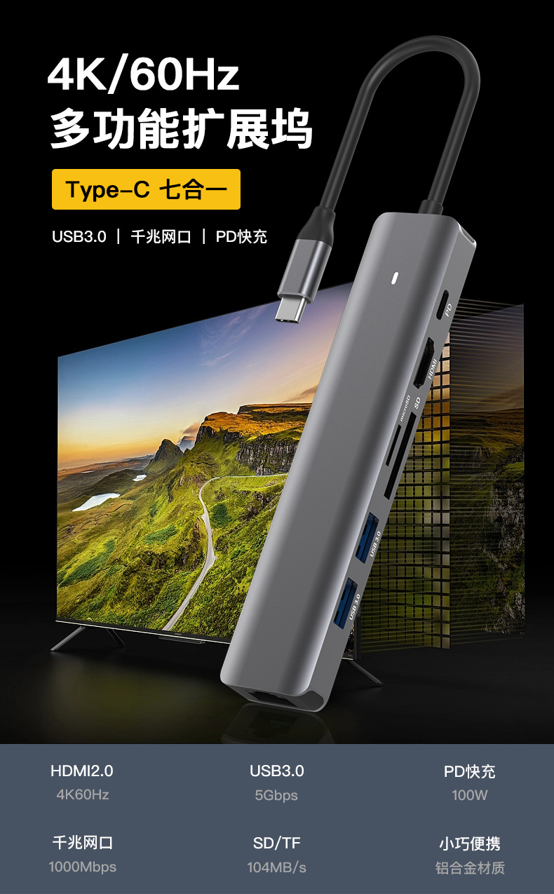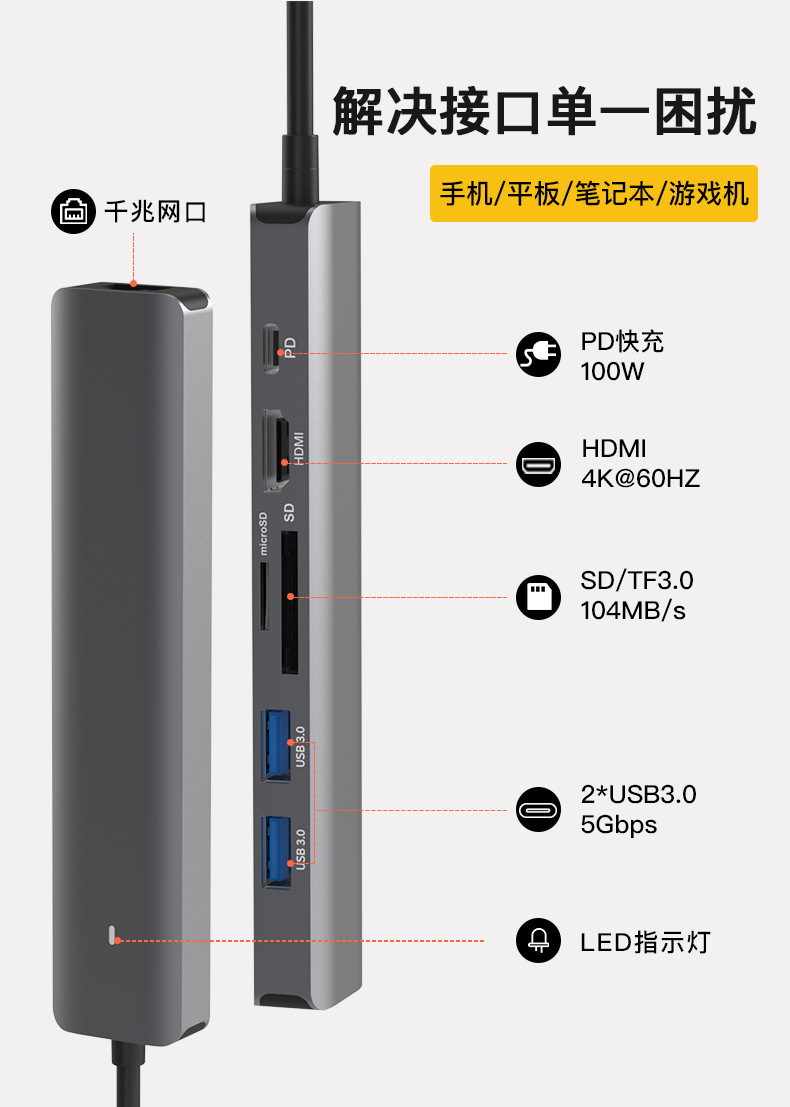 Stasiun dok tipe-c hdmi2.0 port jaringan gigabit 3.0 usb splitter PD100w notebook transmisi kecepatan tinggi 4K