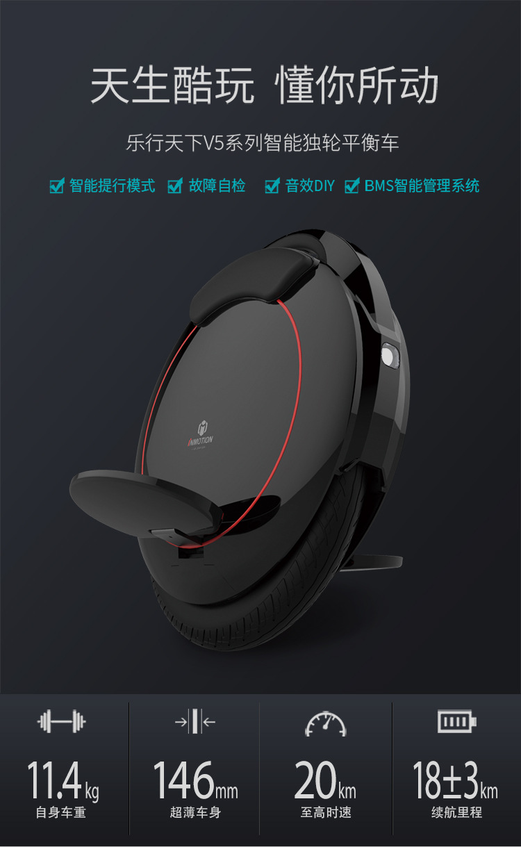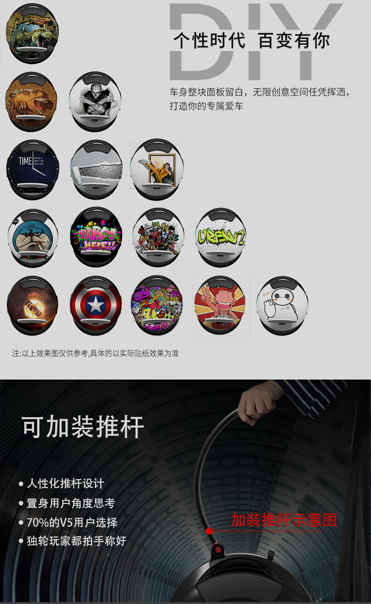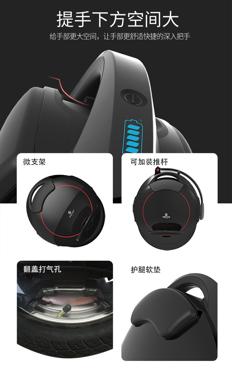 Skuter roda tunggal unicycle V5 hitam dengan sensor gerak dan manajemen APP beserta tongkat dorong. Permintaan harga ke layanan pelanggan.