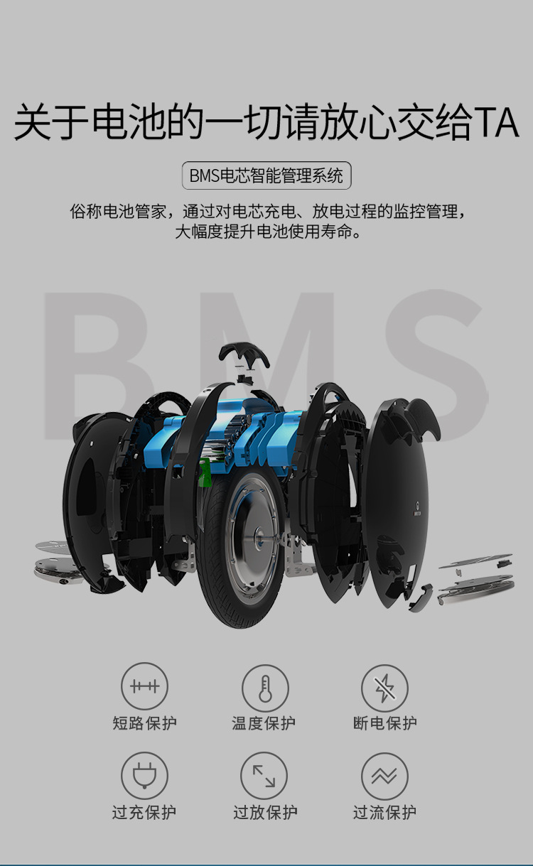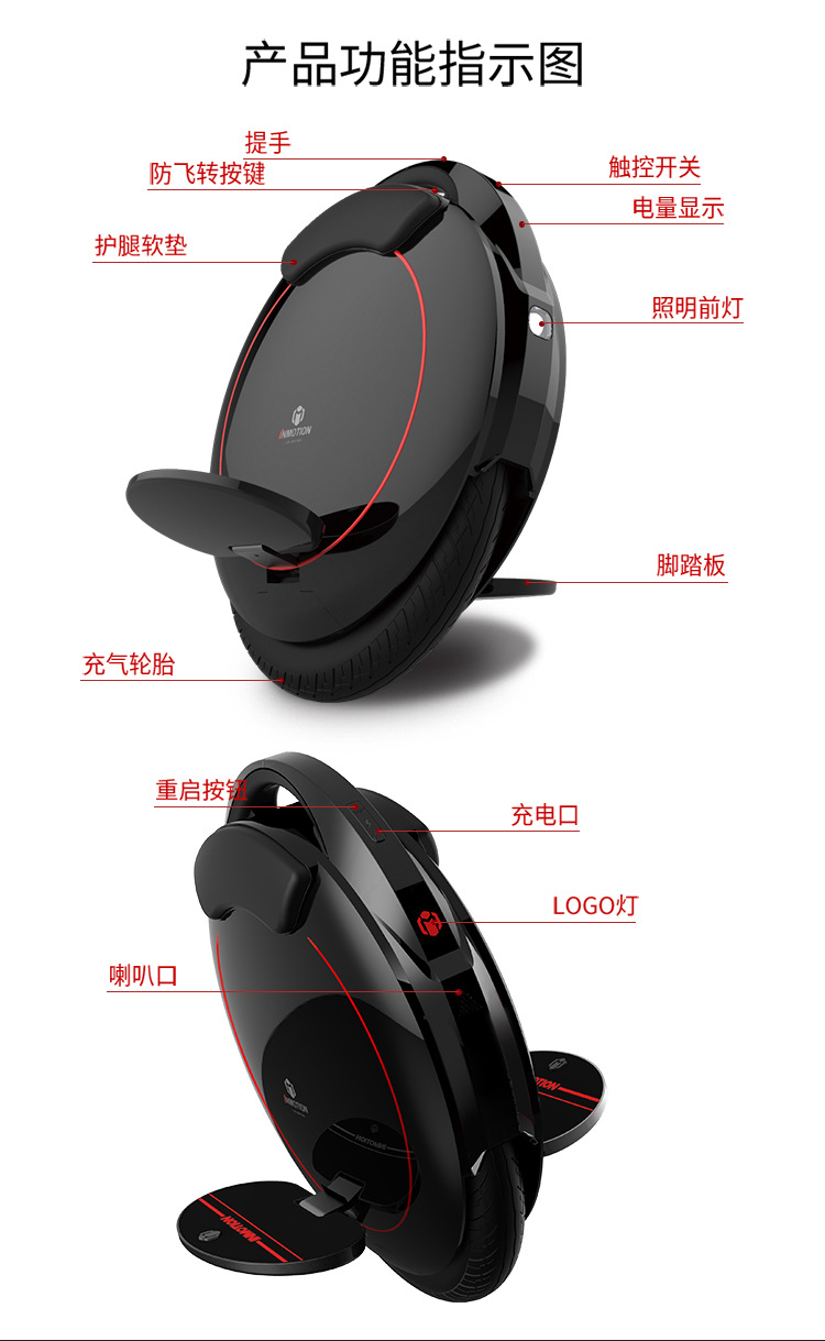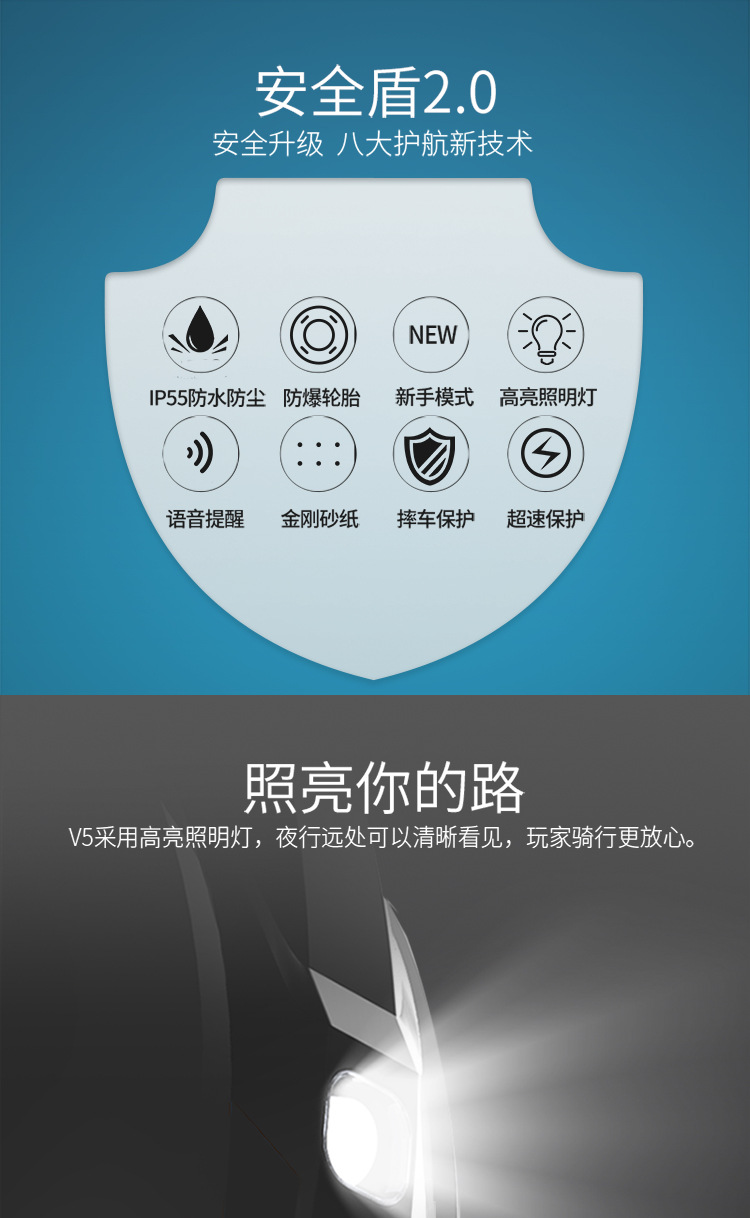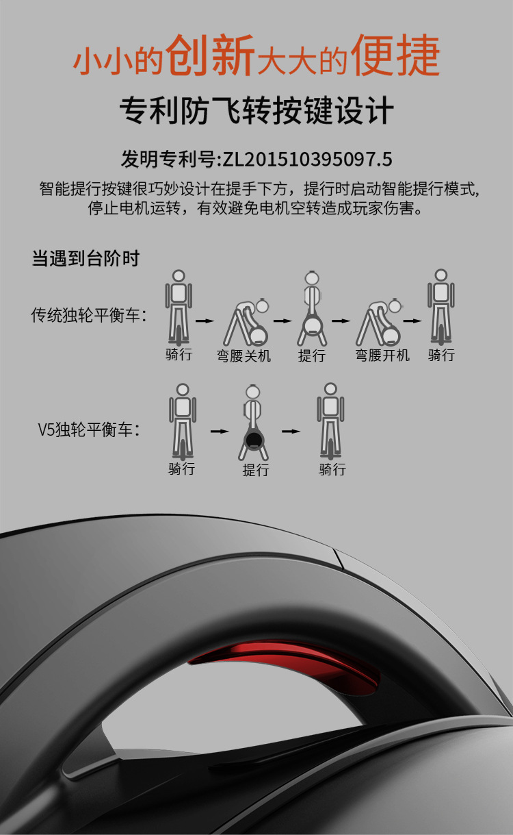 Skuter roda tunggal unicycle V5 hitam dengan sensor gerak dan manajemen APP beserta tongkat dorong. Permintaan harga ke layanan pelanggan.