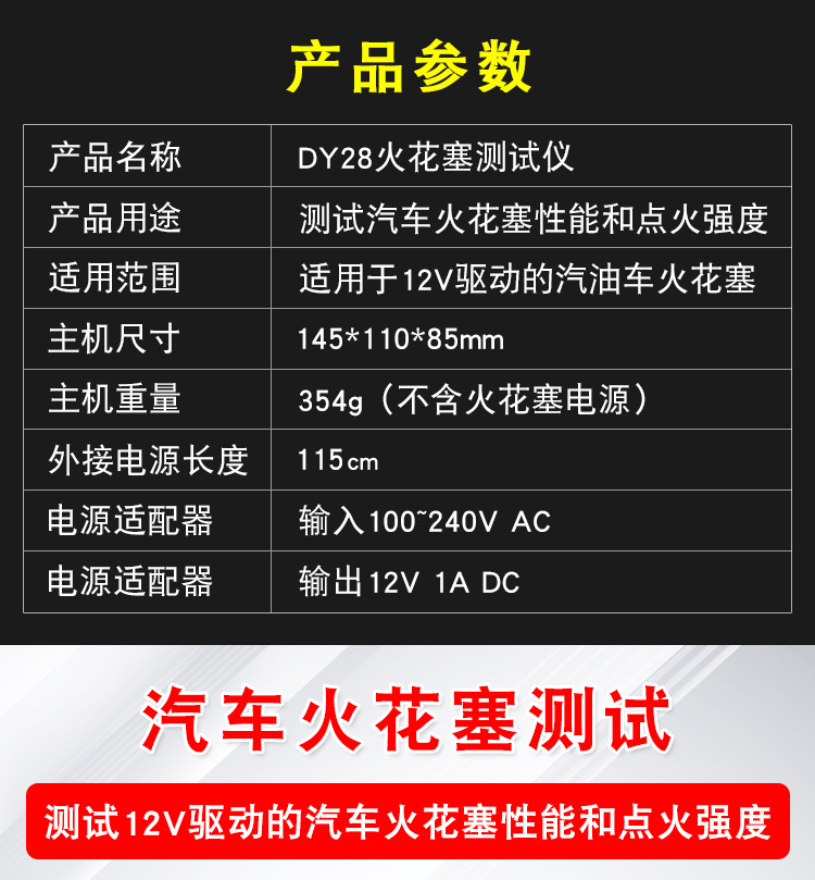 Penguji pengapian colokan percikan mobil DY28, nosel lubang ganda, sistem pengapian tekanan tinggi, detektor bangku uji