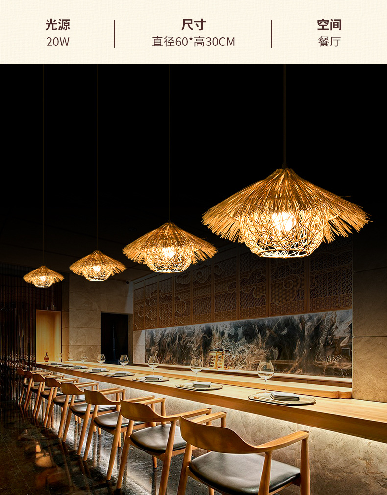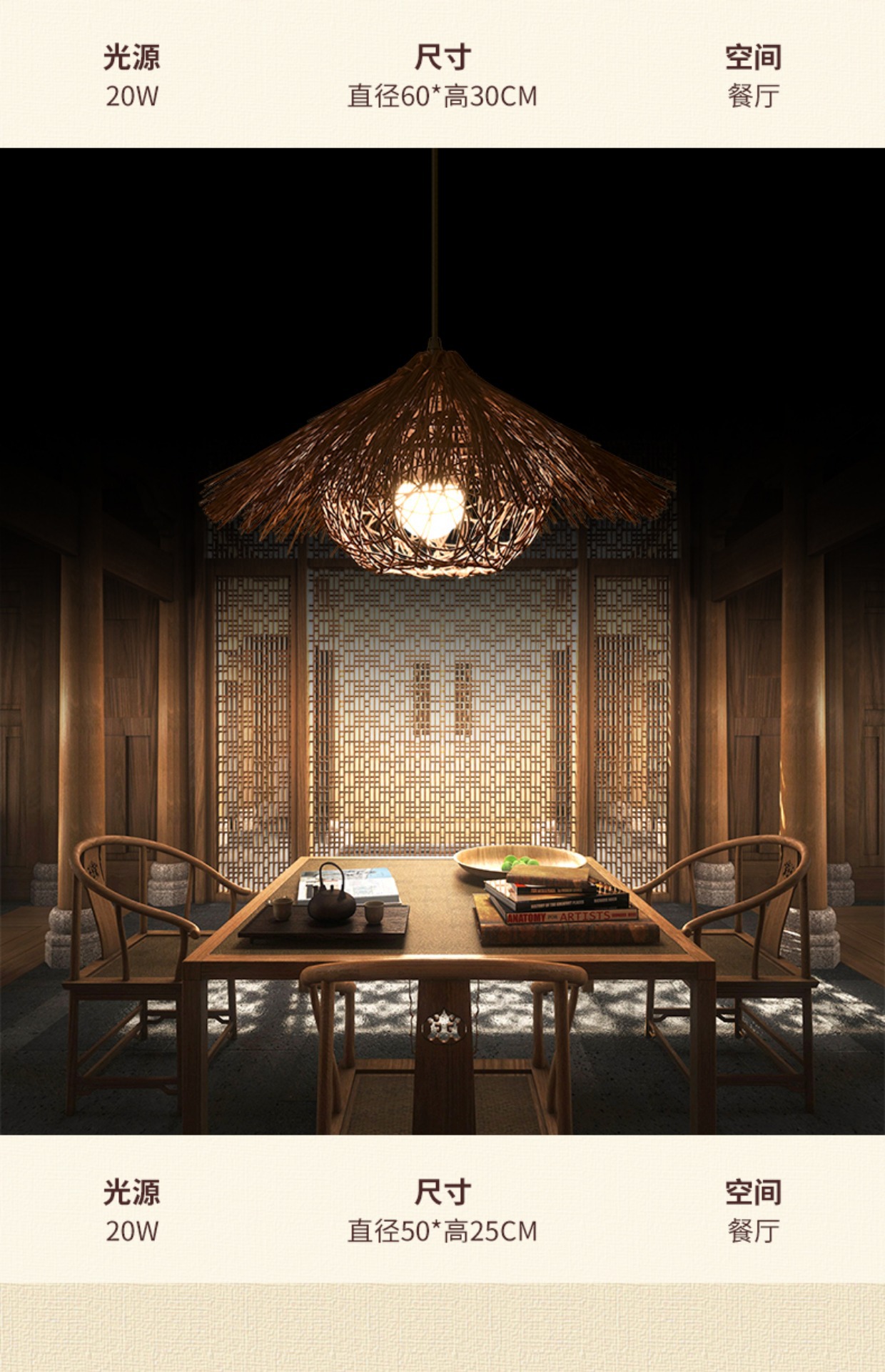 Lampu rotan Restoran bambu, lampu gantung rotan kreatif, restoran, pot panas, tempat tidur rotan & sarapan, lampu gantung bambu Asia Tenggara