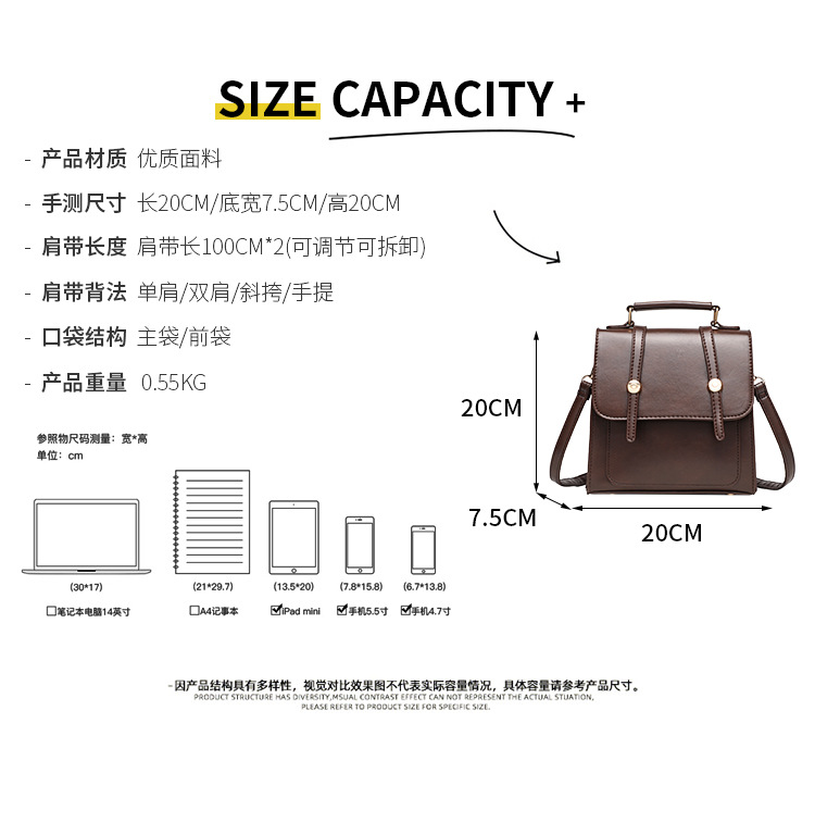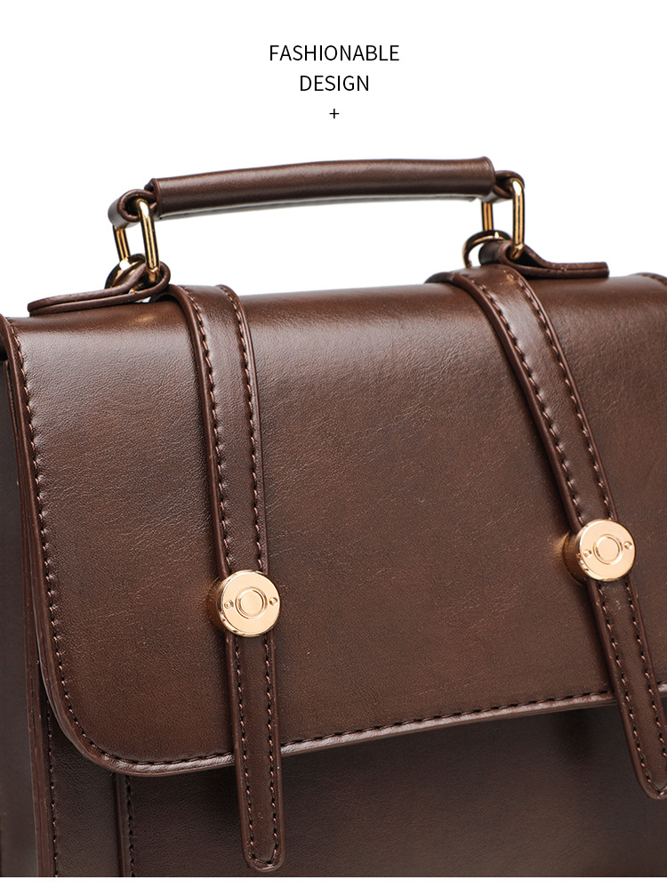 Ransel retro Amerika Niche tas persegi kecil gesper selempang Inggris tas punggung kecil siswa komuter coklat kecil baru