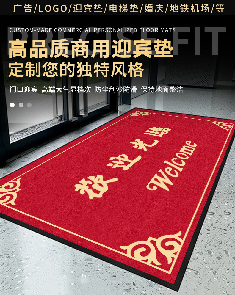 Pabrik langsung Guohao VIP selamat datang tikar selimut merah non-slip penyerap tikar hotel karpet logo iklan tikar grosir