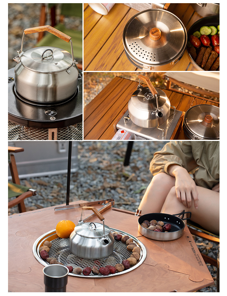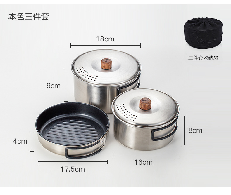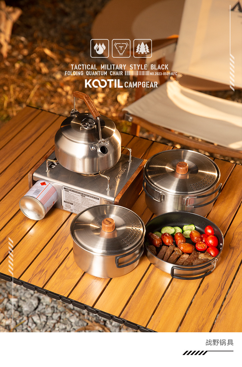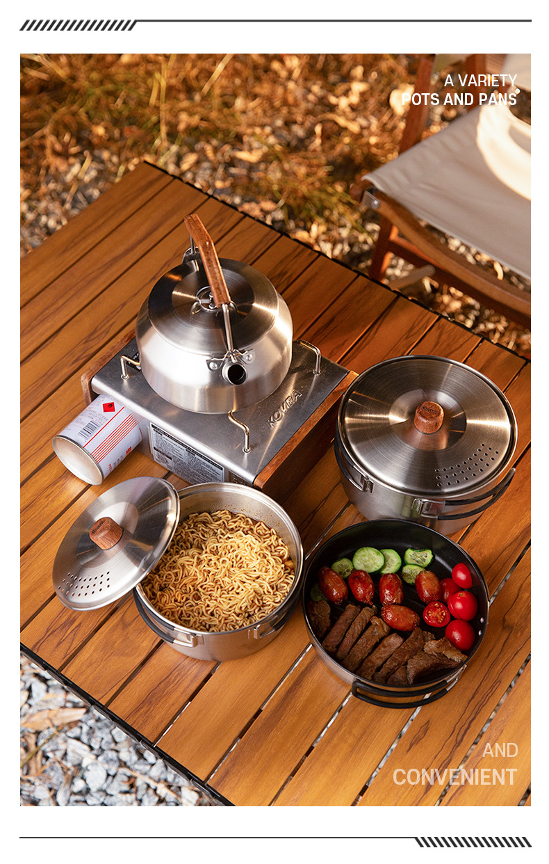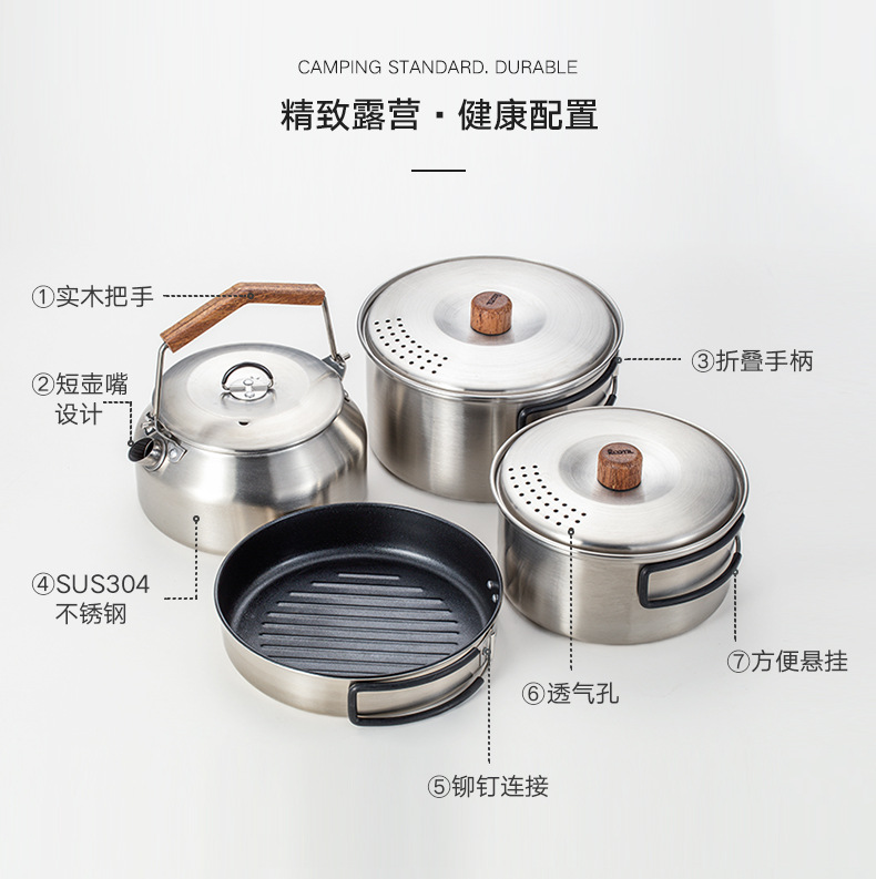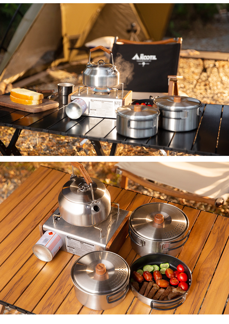 304 ketel stainless steel luar ruangan, panci masak berkemah luar ruangan portabel kompor set panci memasak setelan