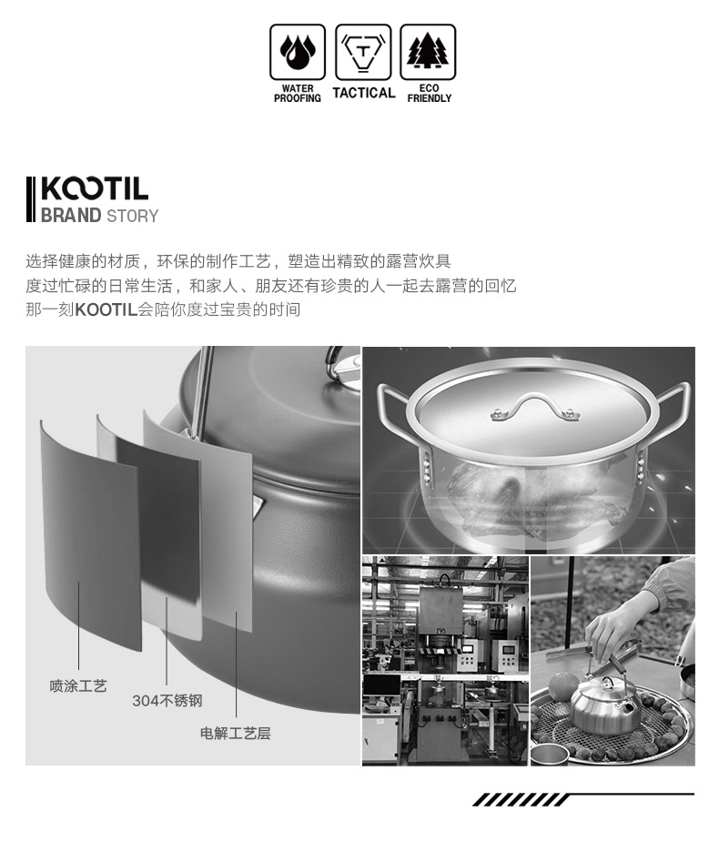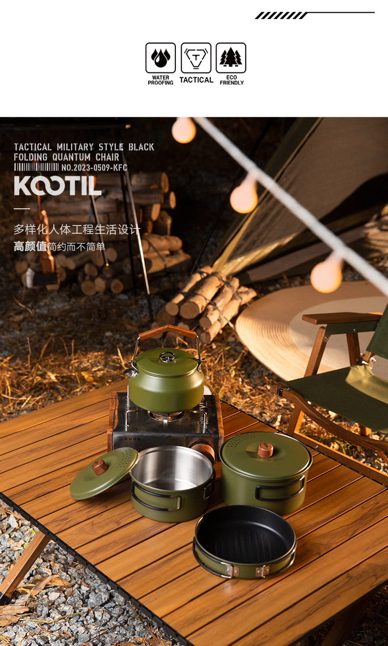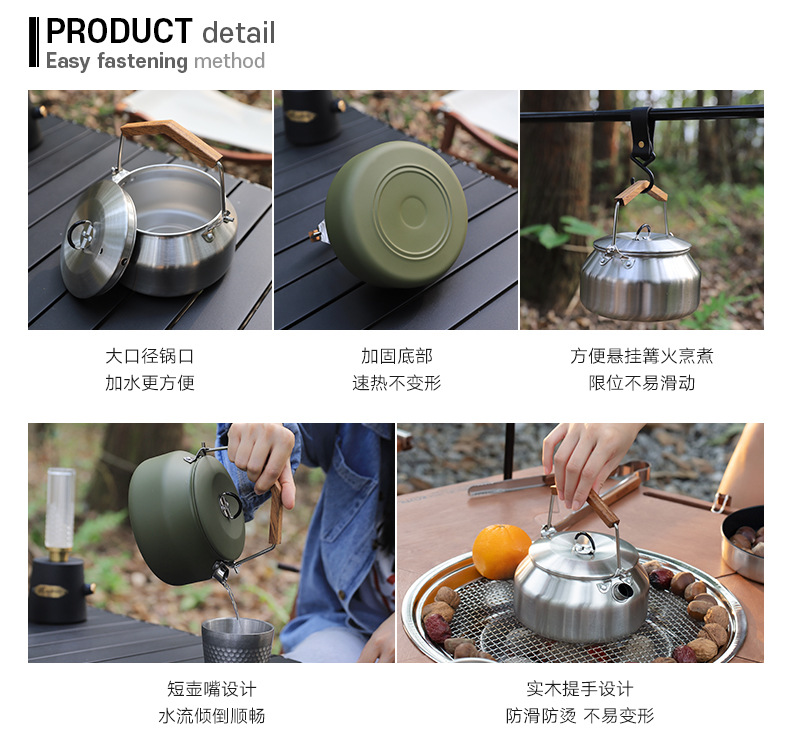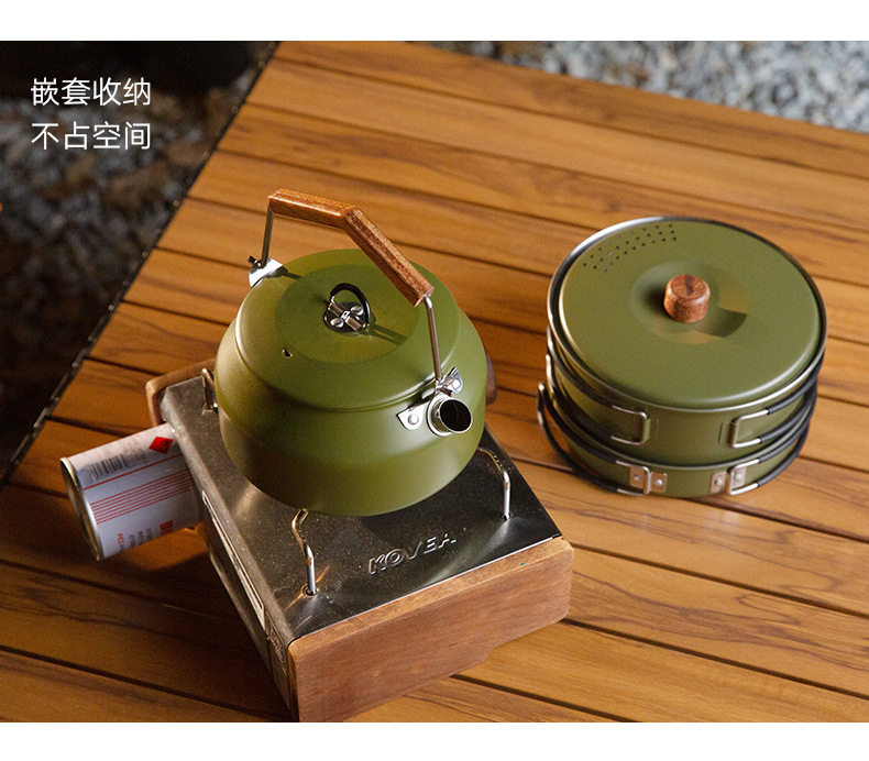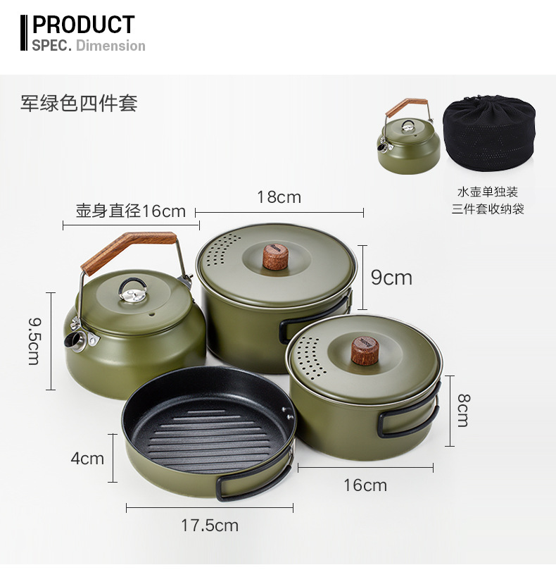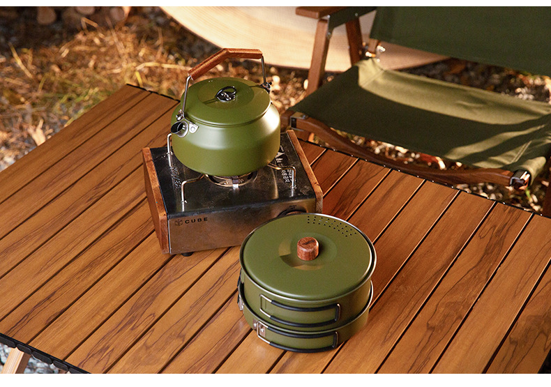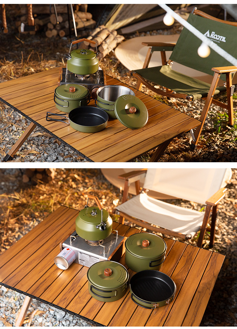 304 ketel stainless steel luar ruangan, panci masak berkemah luar ruangan portabel kompor set panci memasak setelan