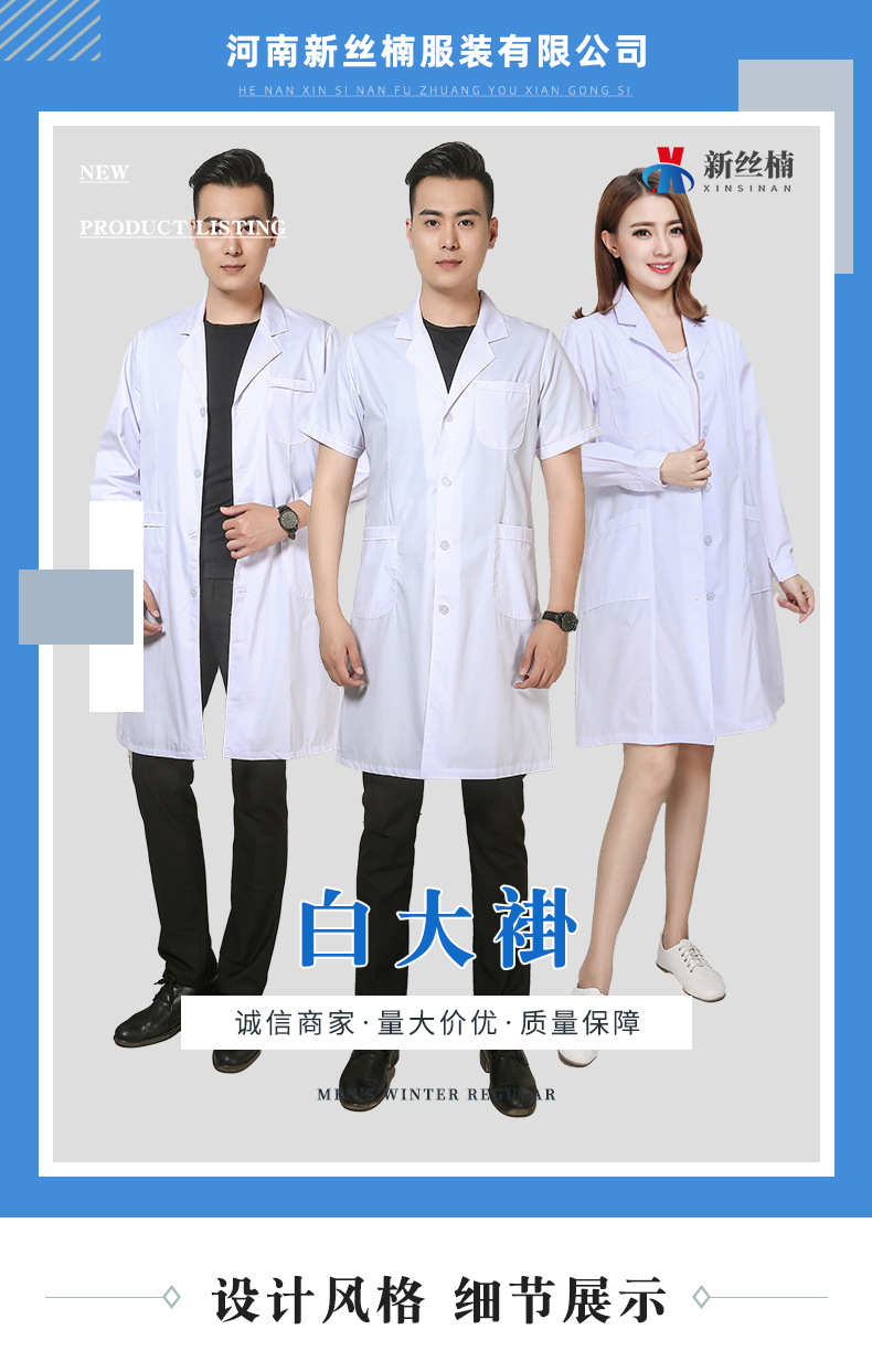 Jas lab putih, seragam dokter lengan panjang untuk wanita, jas lab lengan pendek untuk pria, seragam kerja perawat, seragam medis apoteker rumah sakit.