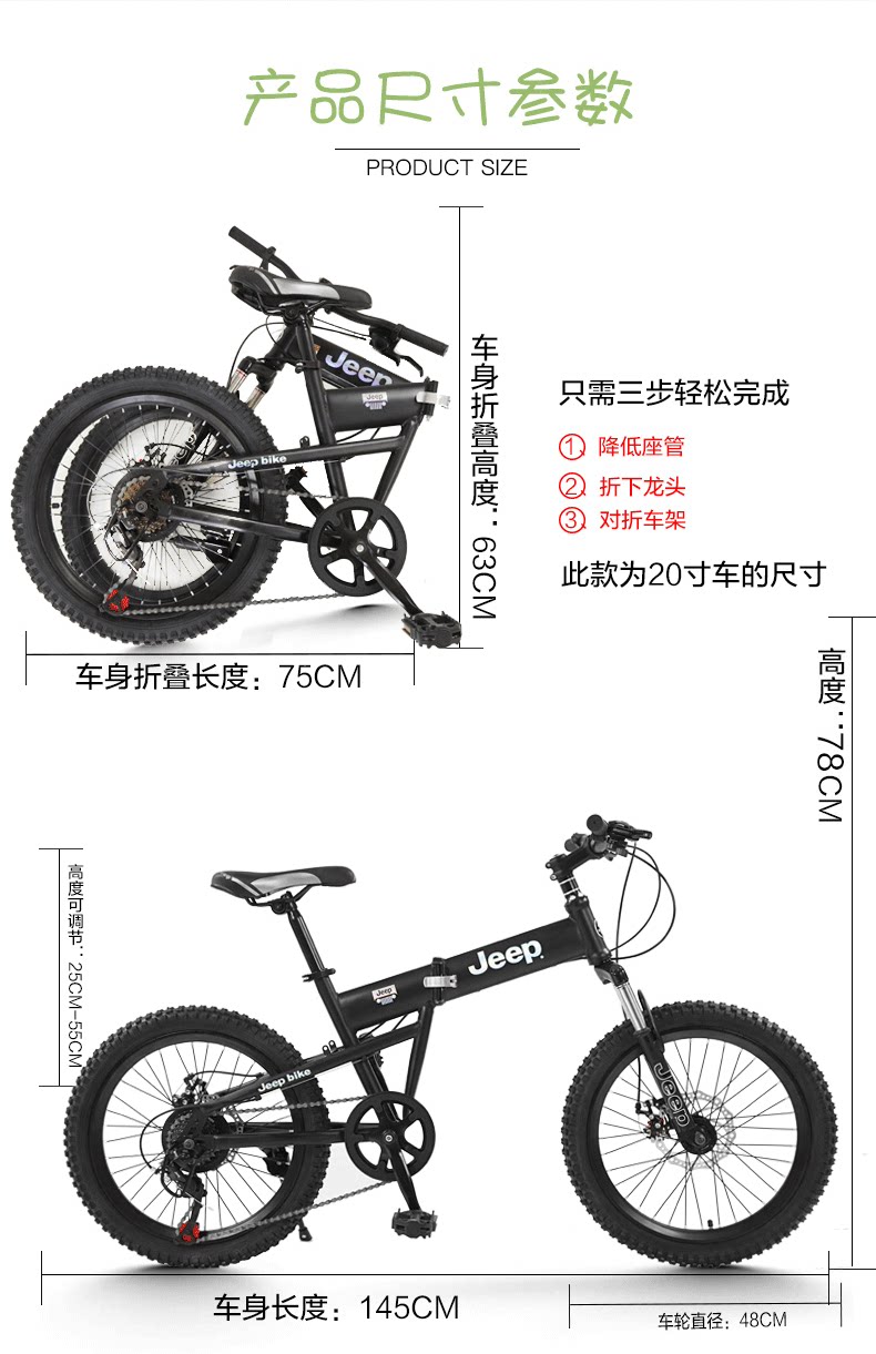 jeep/吉普(悍马)高碳钢折叠学生锻炼变速自行车