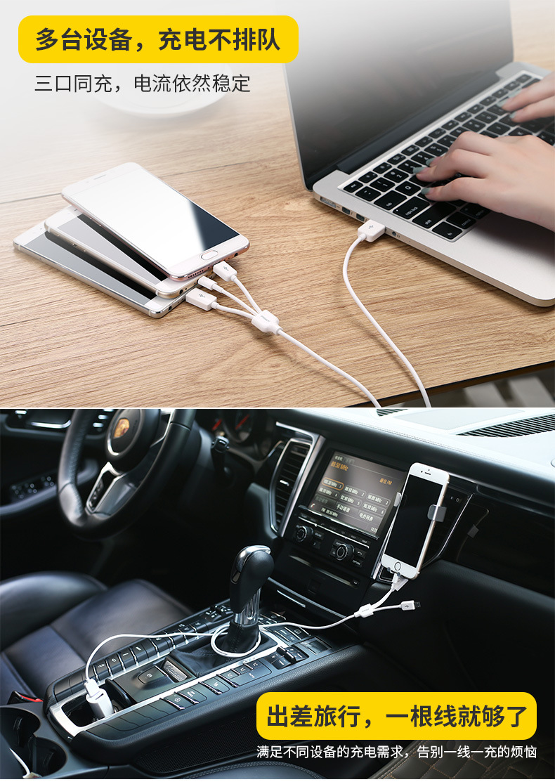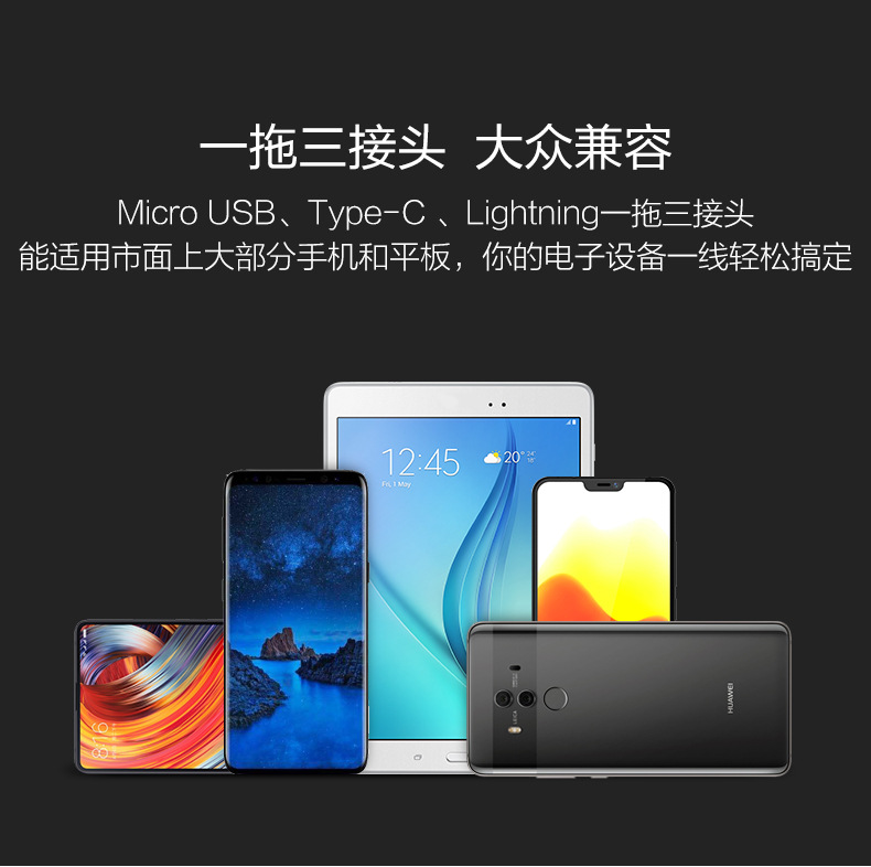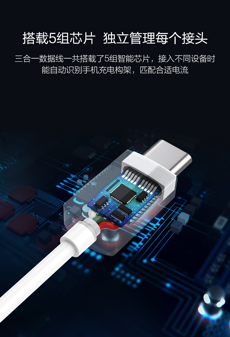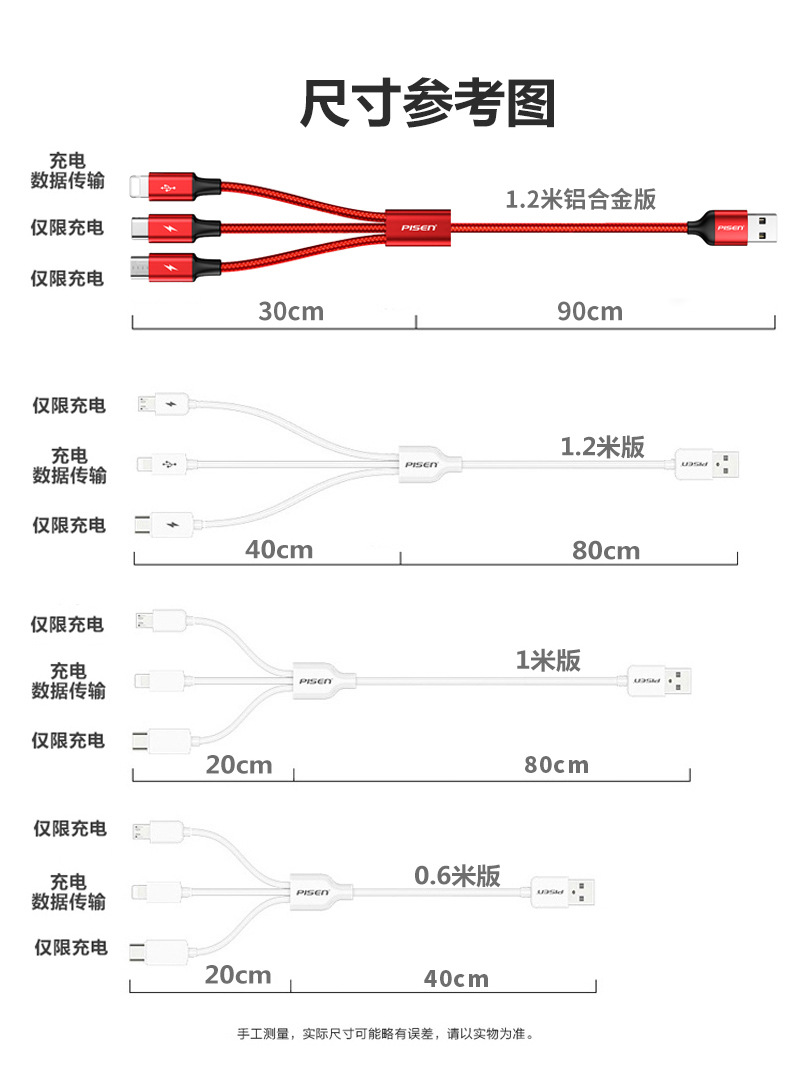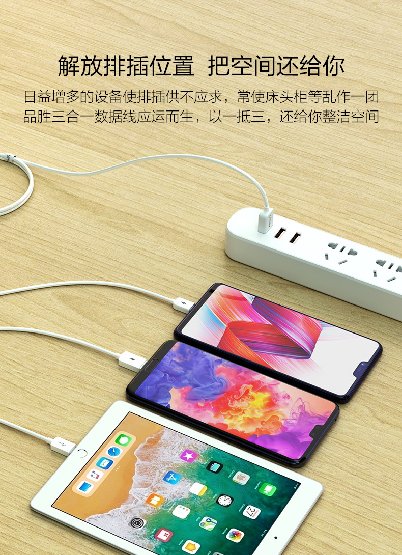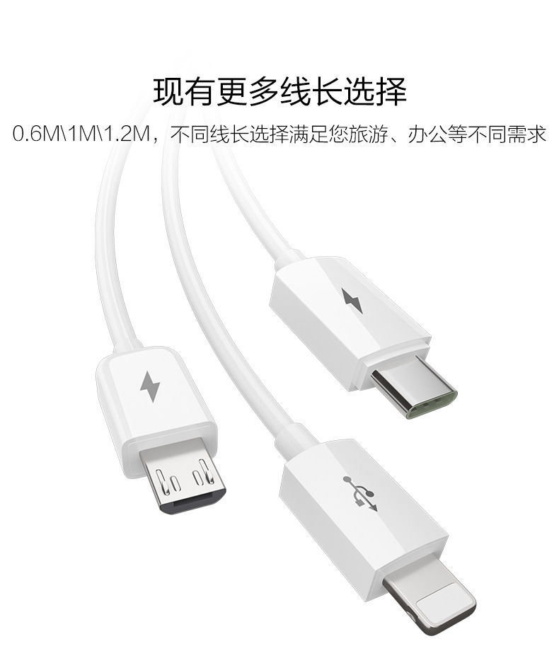 Pinsheng 3-in-1 Kabel Pengisian Kabel Data Cepat 6a