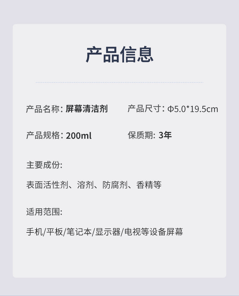Pembersih layar ponsel tablet, alat pembersih debu artefak 200ml solusi pembersih