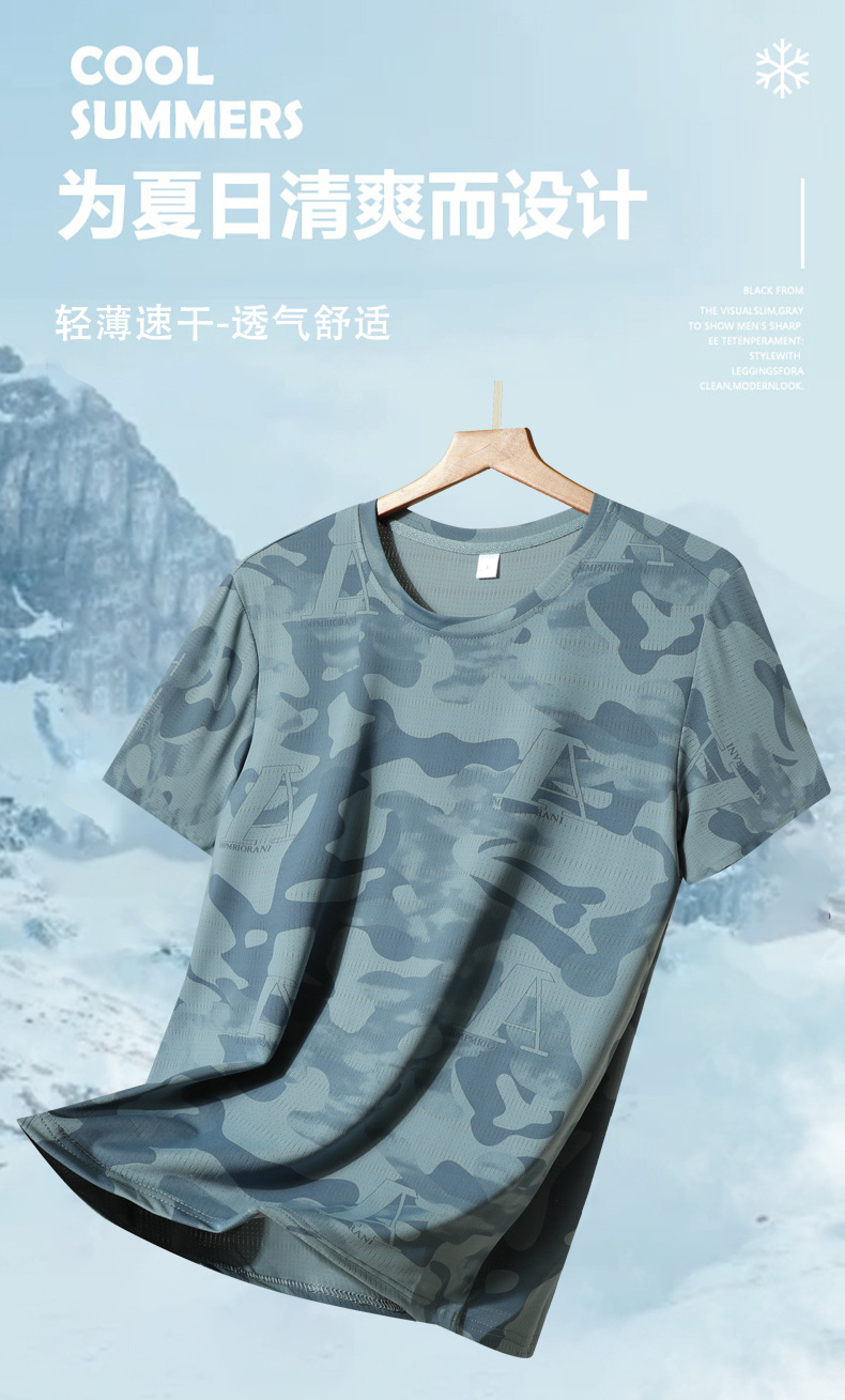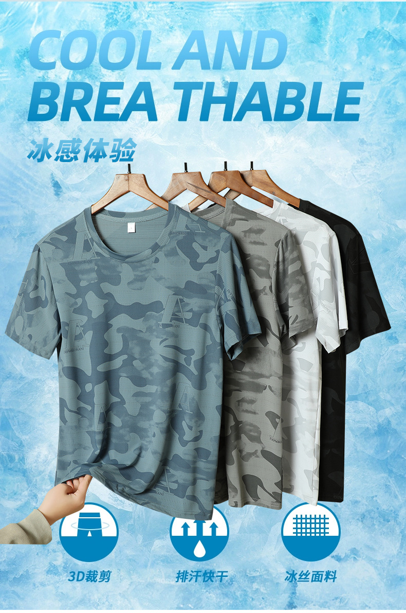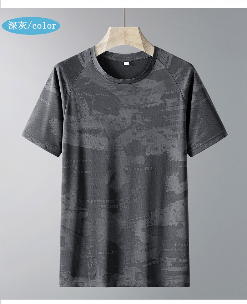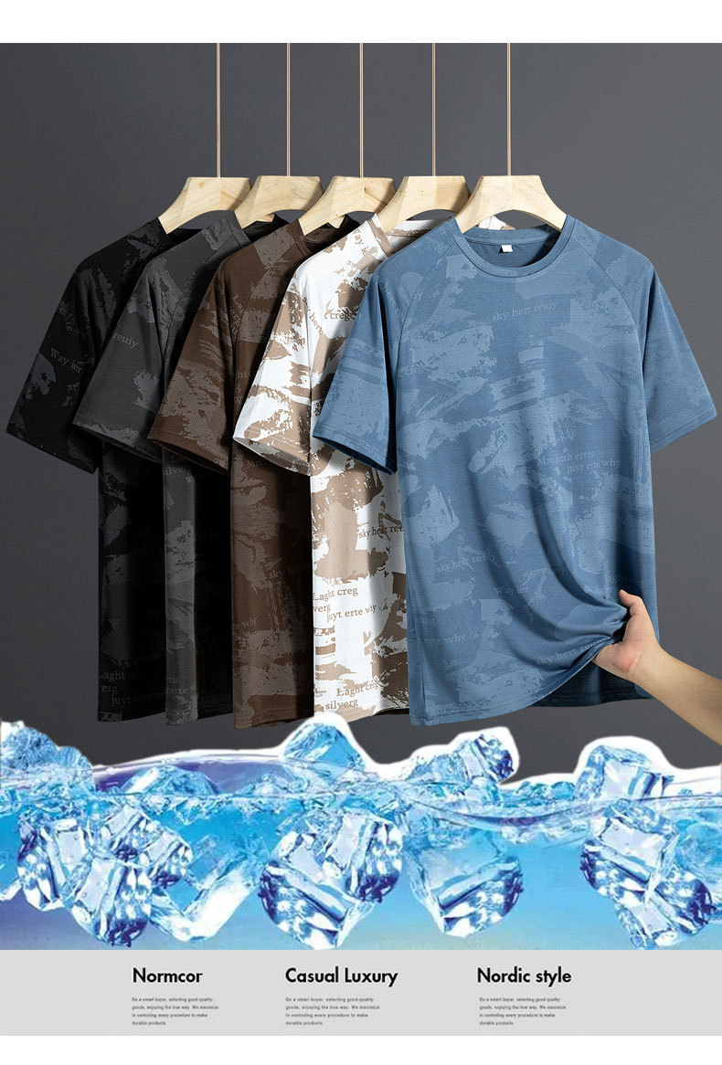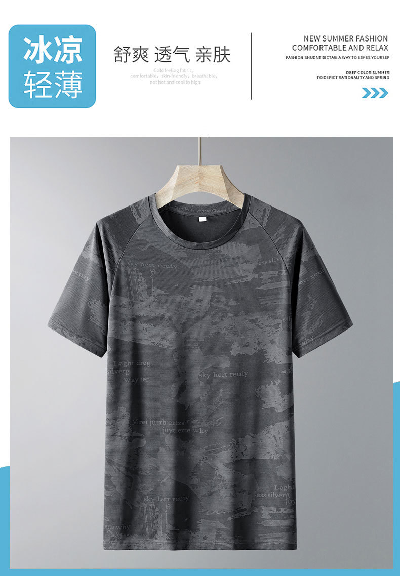 Kaus lengan pendek ukuran besar pria, kaus olahraga lari luar ruangan cepat kering bersirkulasi udara sutra es 2024
