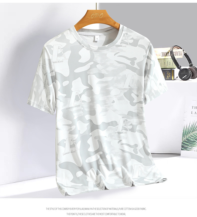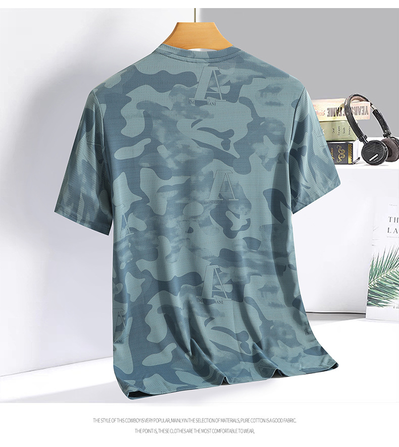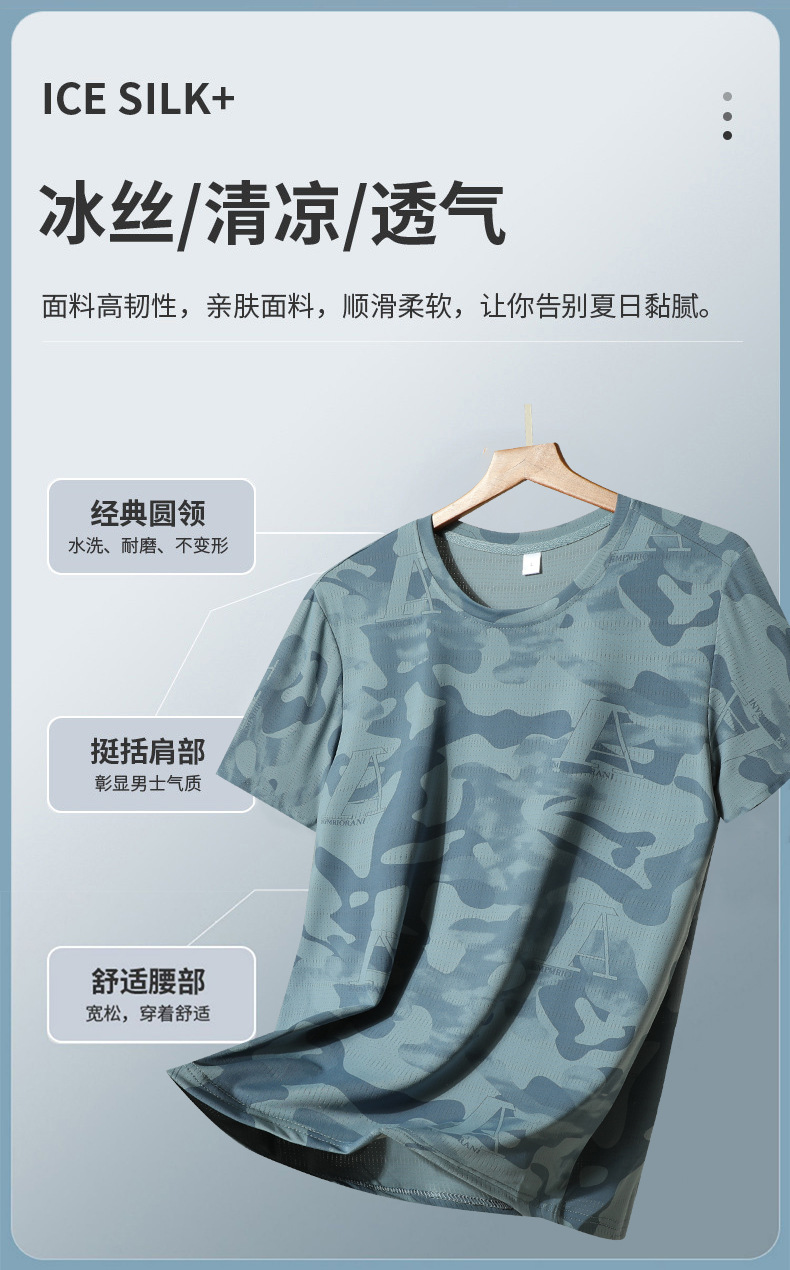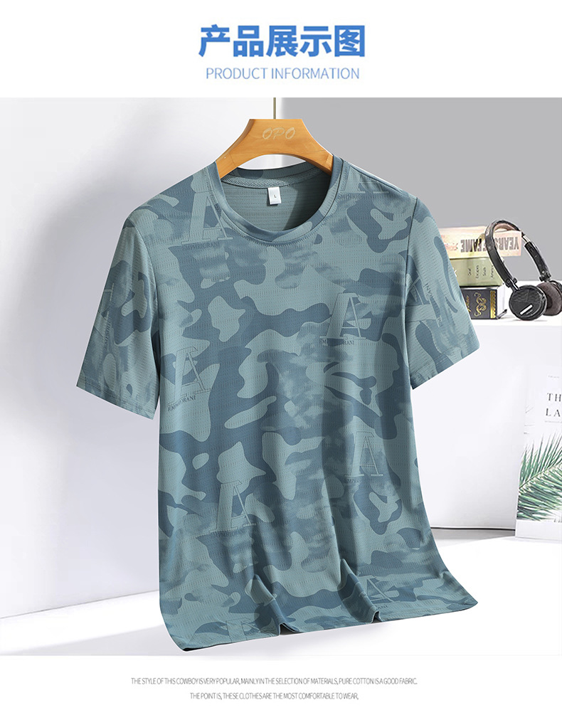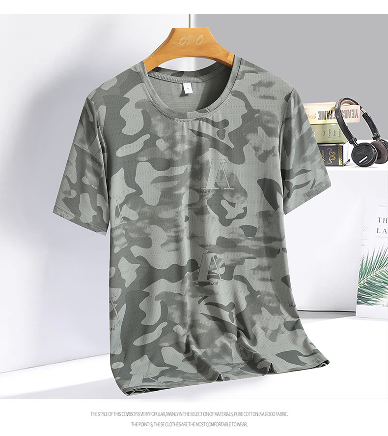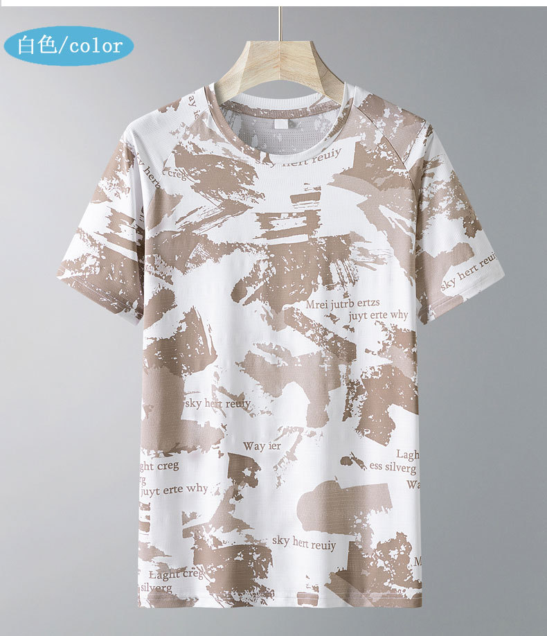 Kaus lengan pendek ukuran besar pria, kaus olahraga lari luar ruangan cepat kering bersirkulasi udara sutra es 2024
