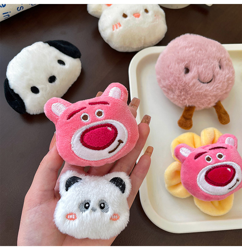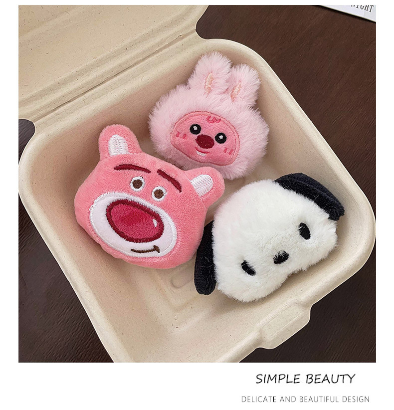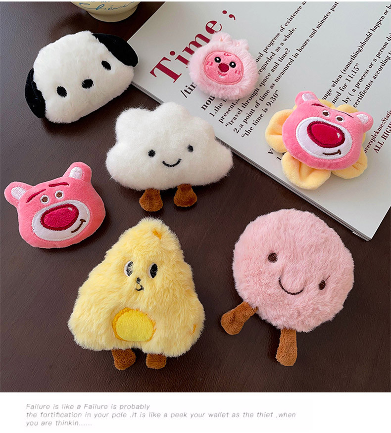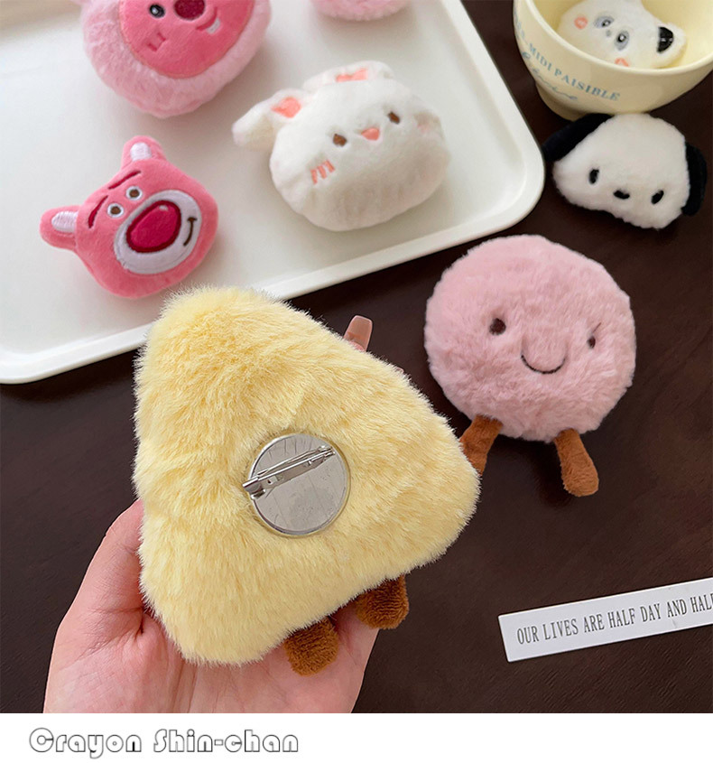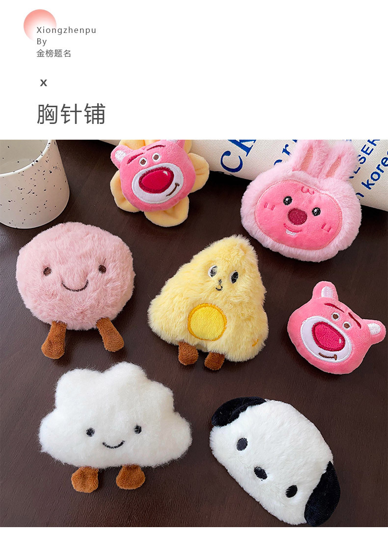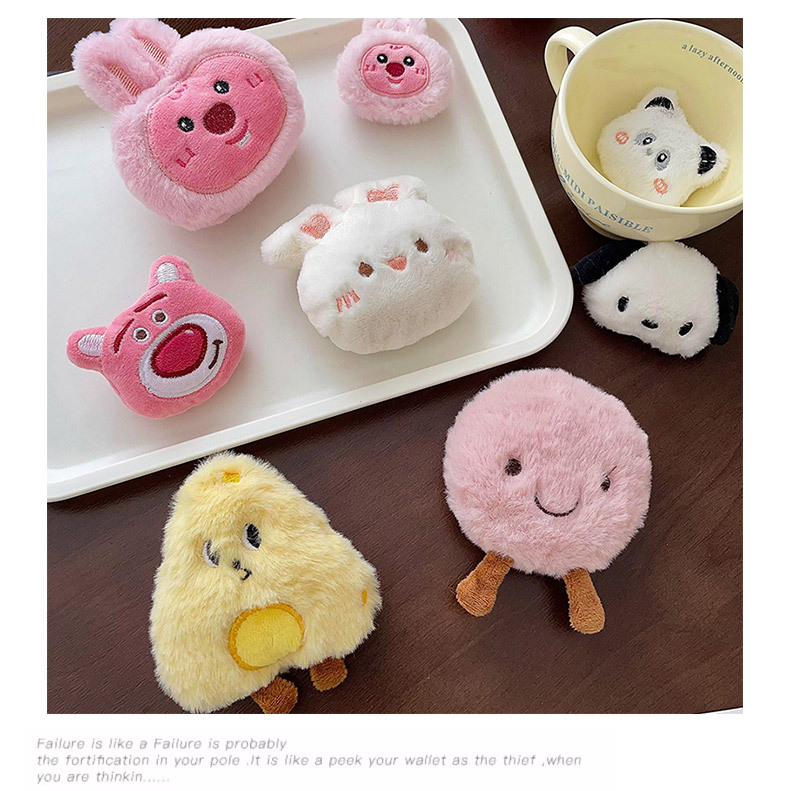 Boneka lembut lucu berang-berang hewan stroberi beruang bros pin baju boneka aksesori kartun boneka liontin mode