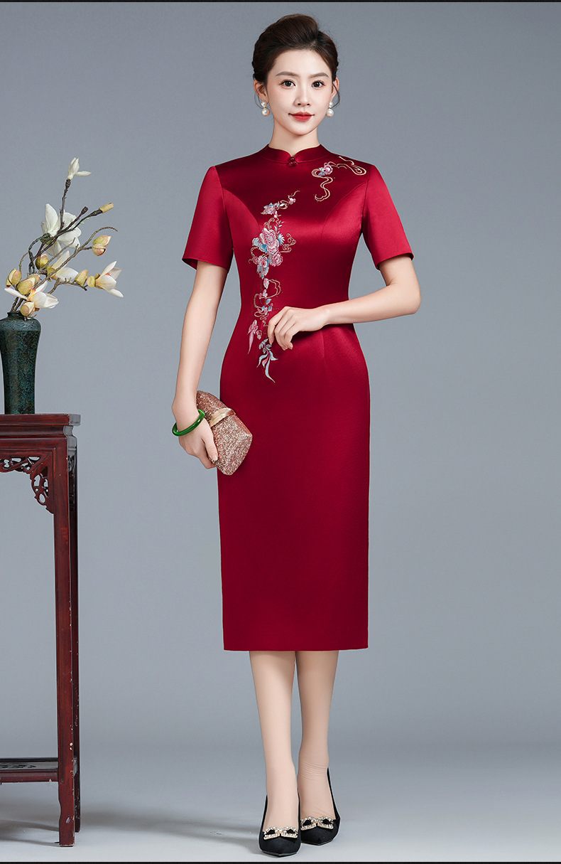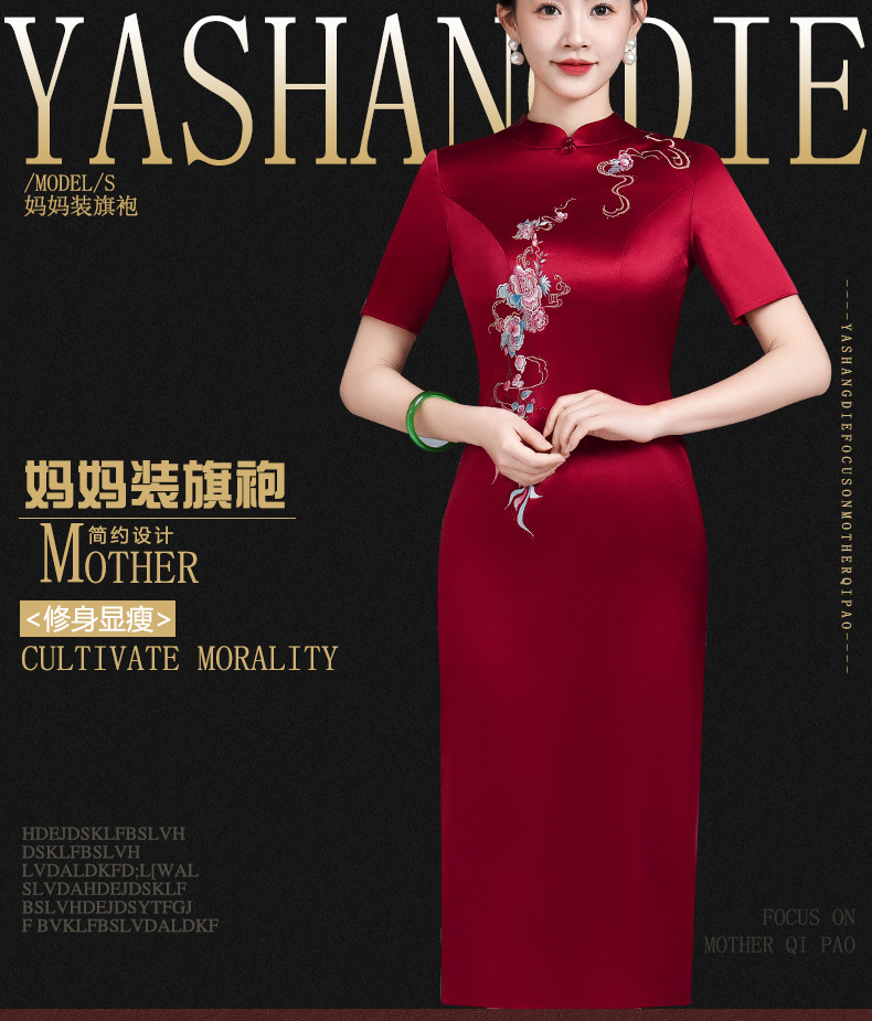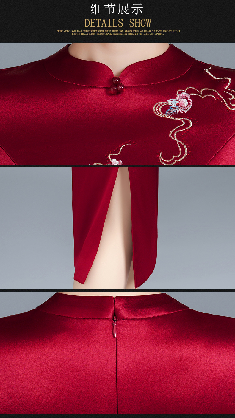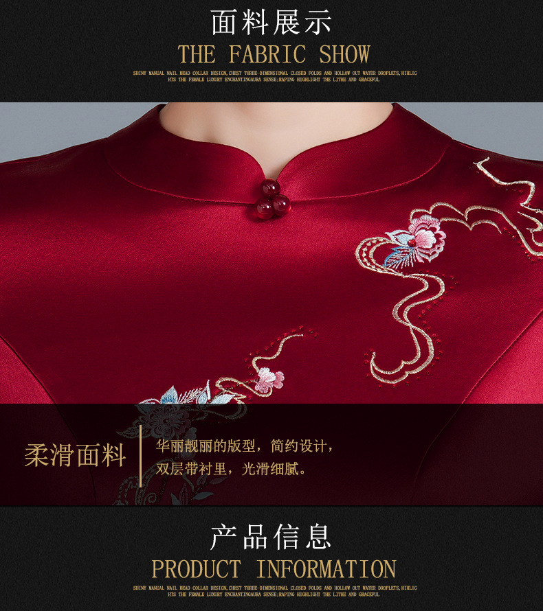 Gaun pernikahan wanita, musim semi baru Xi mother-in-law gaun pernikahan gaya nasional asetat cheongsam muda ibu pernikahan temperamen bordir gaun Cina
