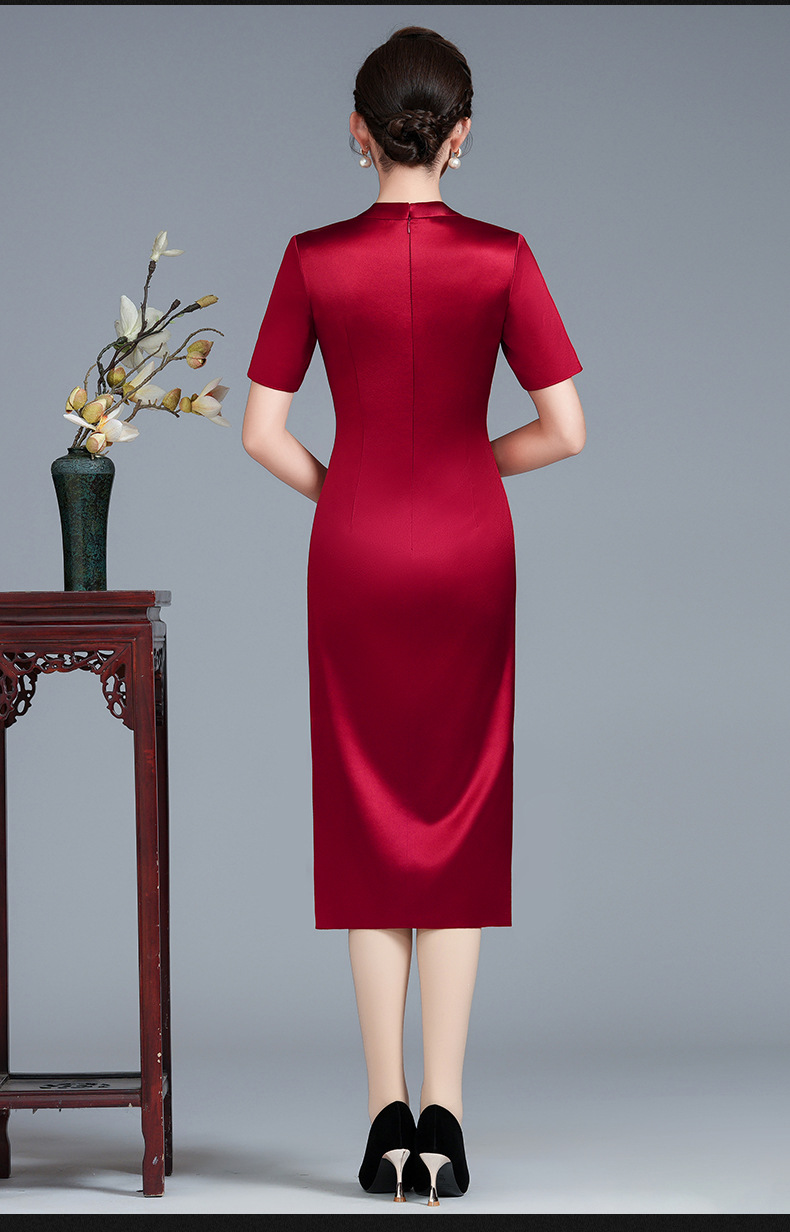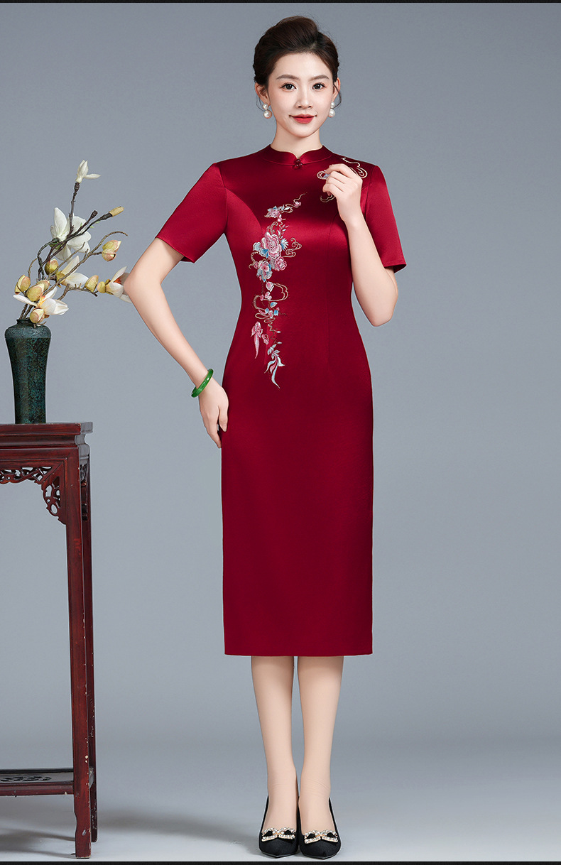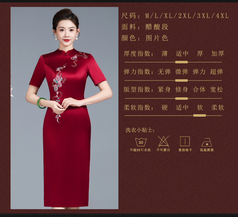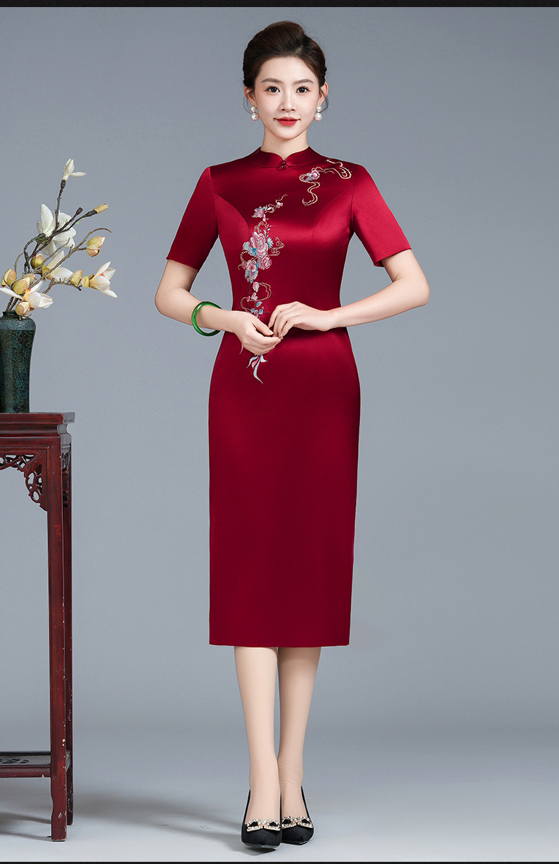 Gaun pernikahan wanita, musim semi baru Xi mother-in-law gaun pernikahan gaya nasional asetat cheongsam muda ibu pernikahan temperamen bordir gaun Cina