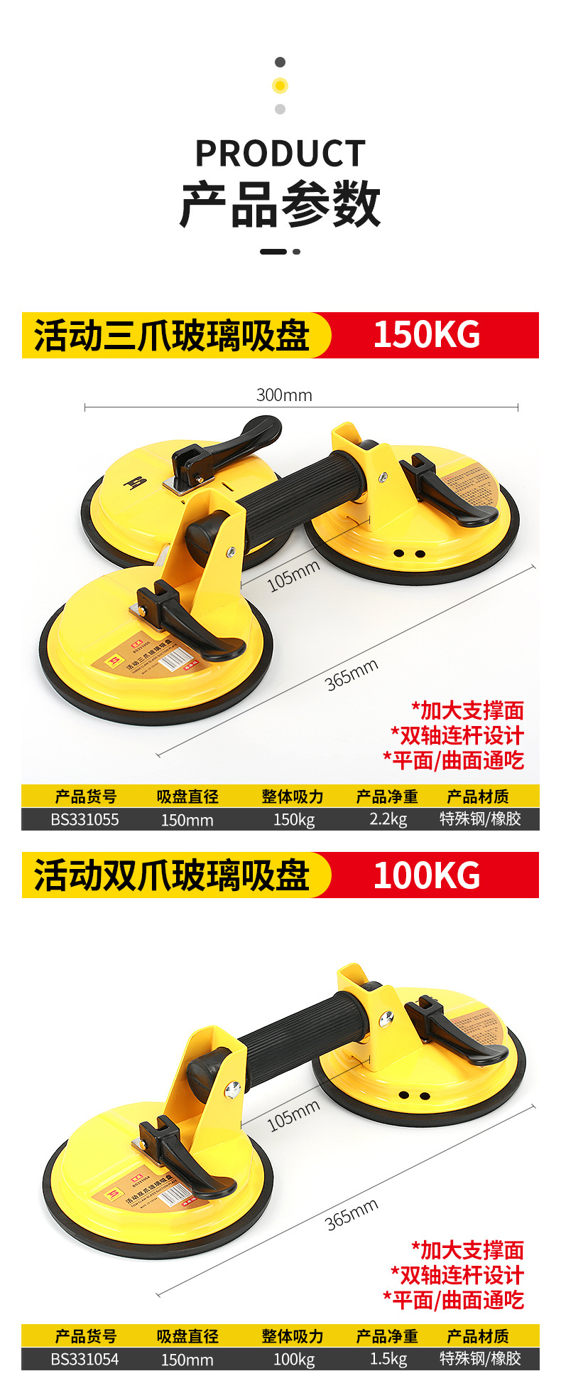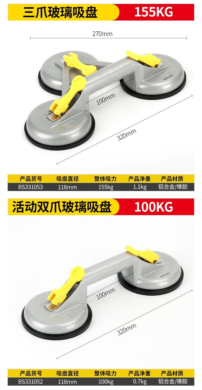 Cakar hisap vakum perangkat penghisap lantai ubin cangkir pengisap kaca tiga cakar ganda tunggal paduan aluminium karet kuat tebal Persia