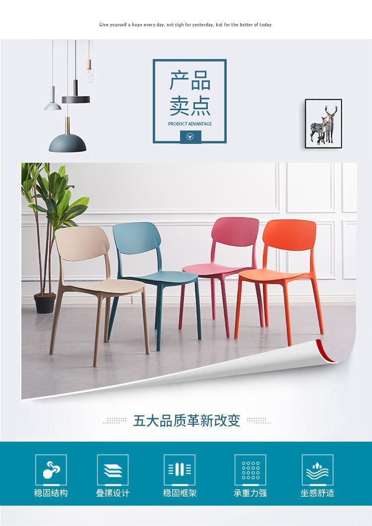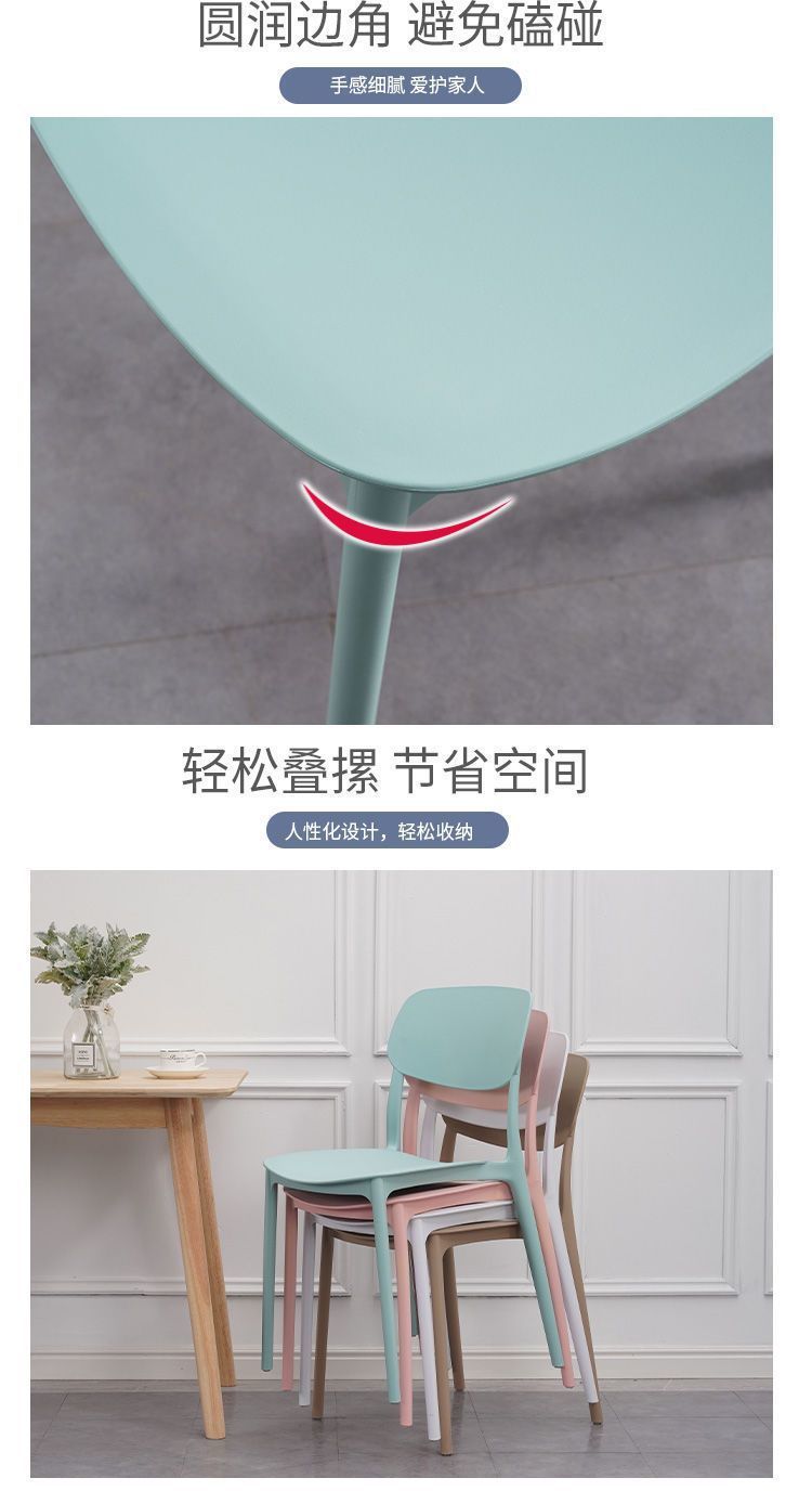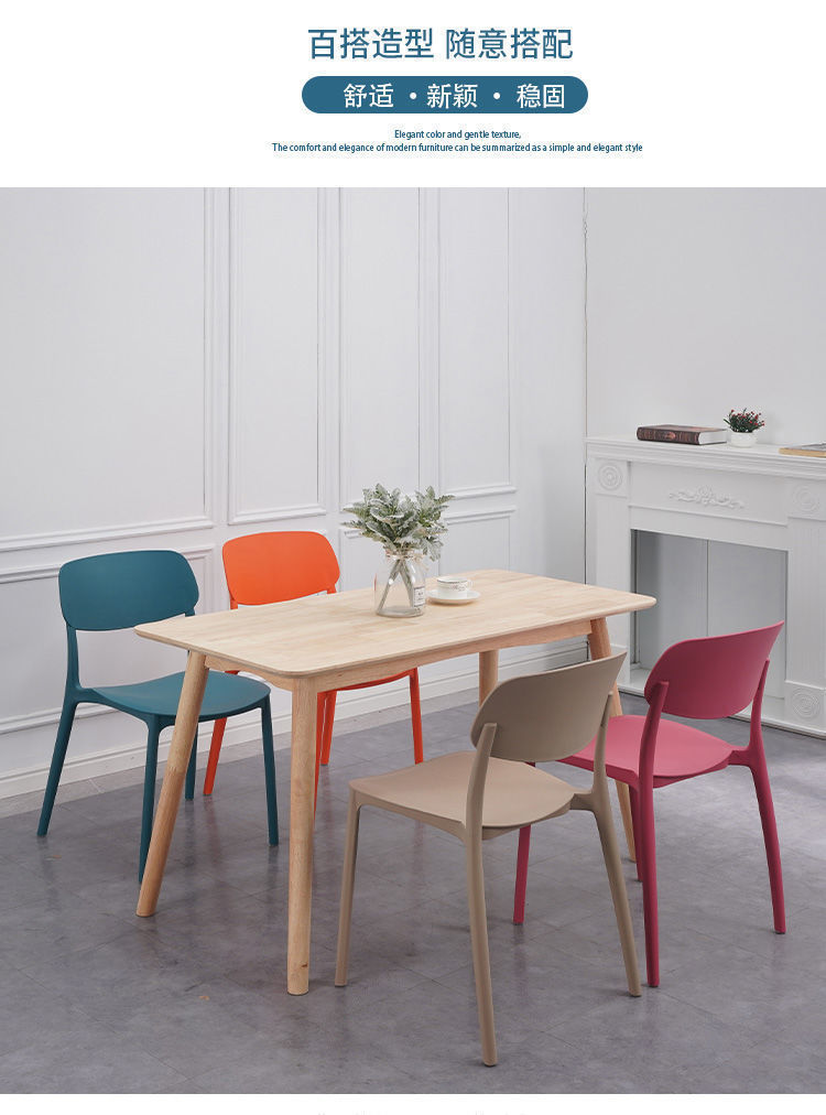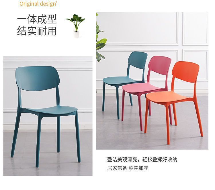 Kursi plastik sandaran dewasa, kursi makan sederhana, kursi plastik tebal modern sederhana, bangku meja Rumah Nordik