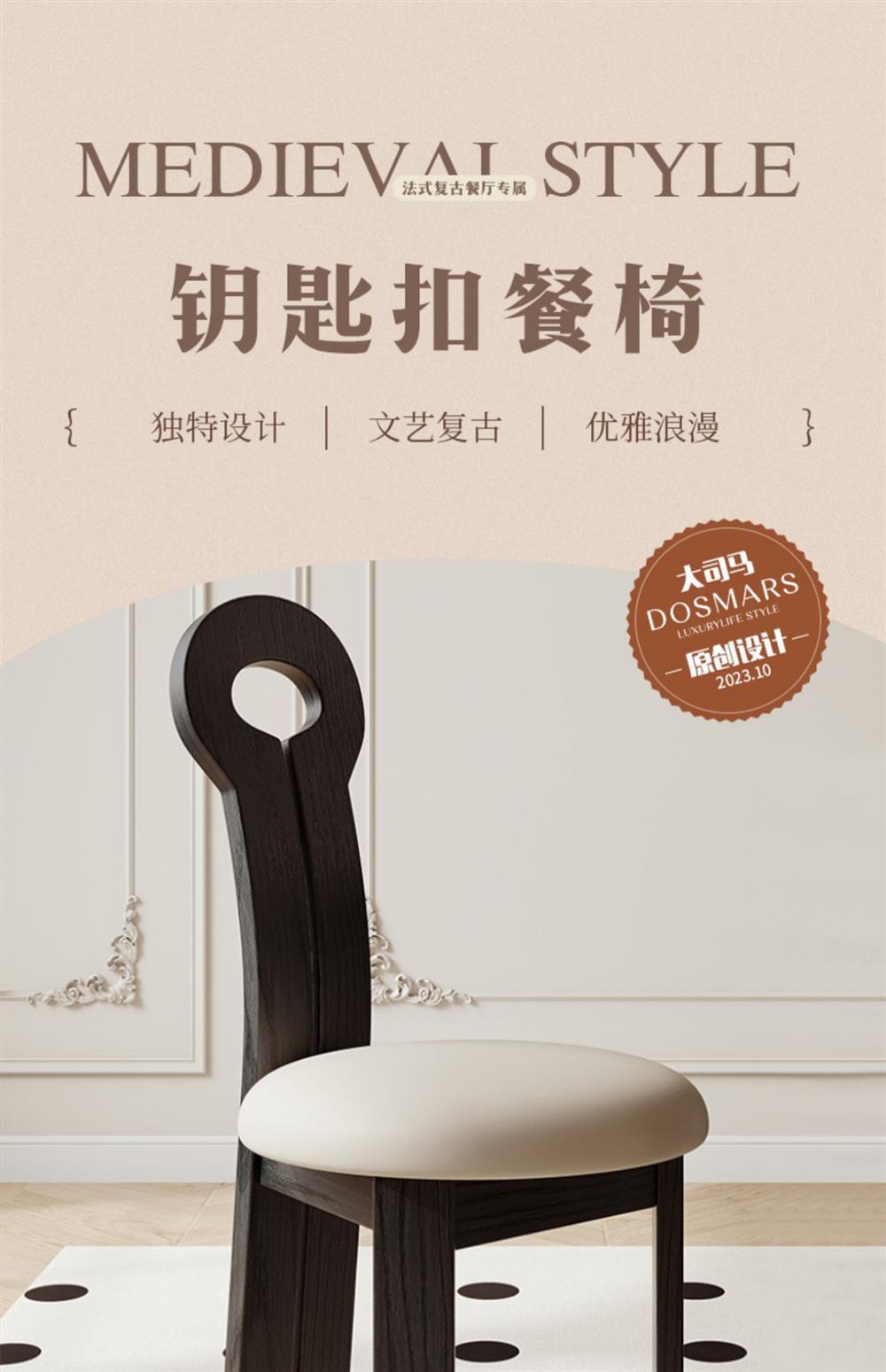 Kursi kunci kuno tengah desainer rumah sandaran B & B, kursi makan ringan mewah restoran retro Perancis kursi kayu solid