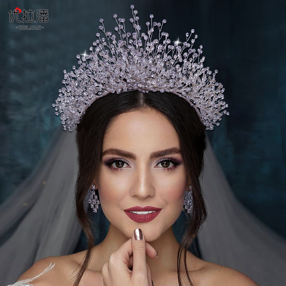 Youlapan HP193 hiasan kepala mahkota elegan pengantin set tiga potong gaun pengantin aksesoris gaun malam aksesoris rambut pernikahan berlian