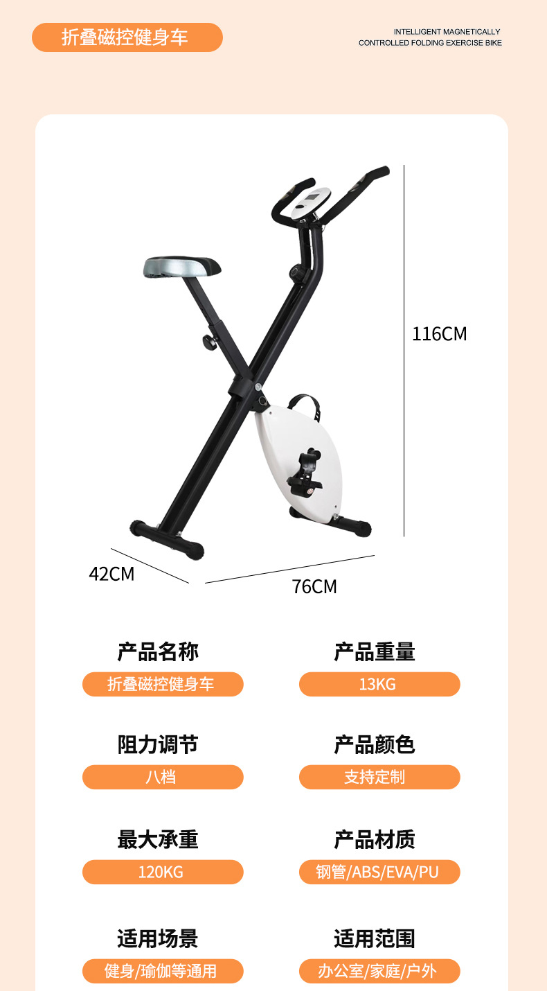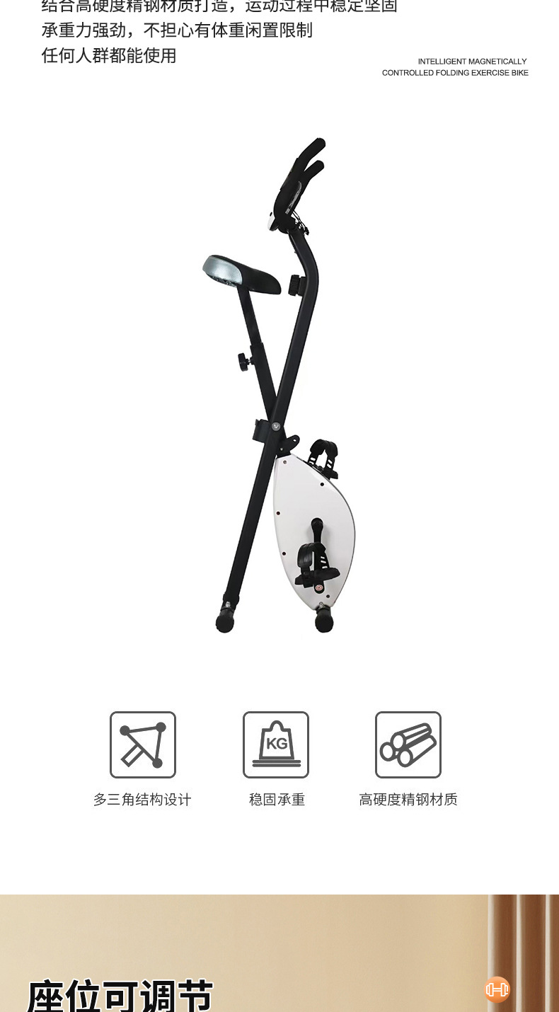 Sepeda statis lipat magnetik terlaris lintas batas dengan sandaran punggung dan sandaran tangan, alat kebugaran dalam ruangan yang senyap, sepeda pedal pelangsing