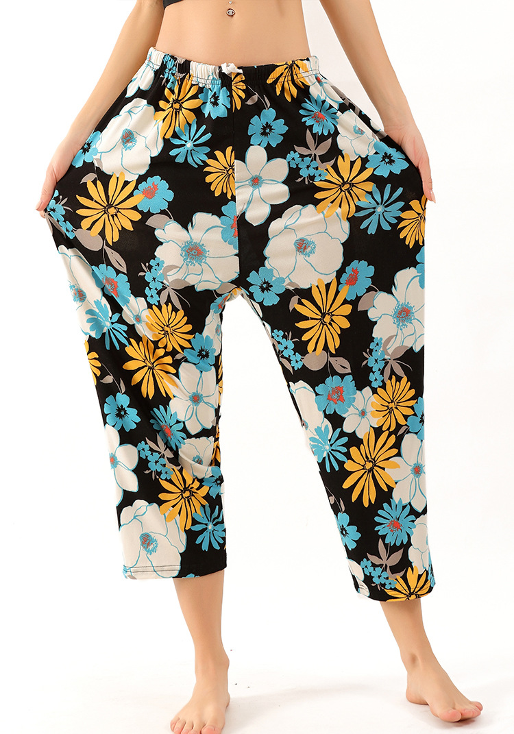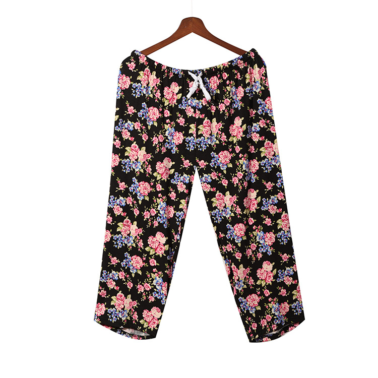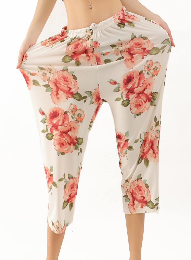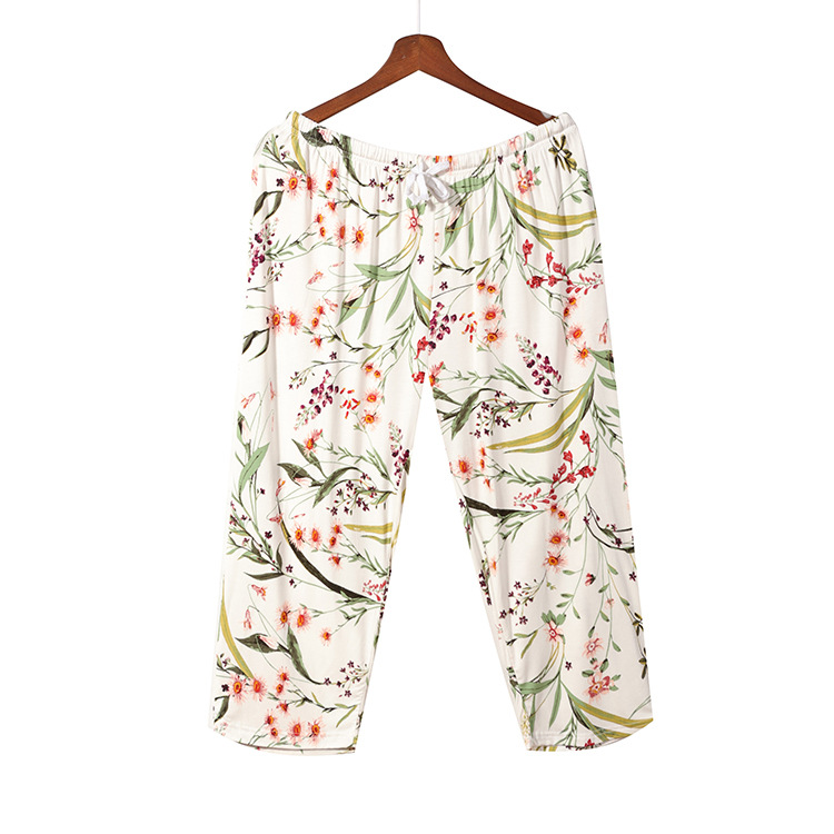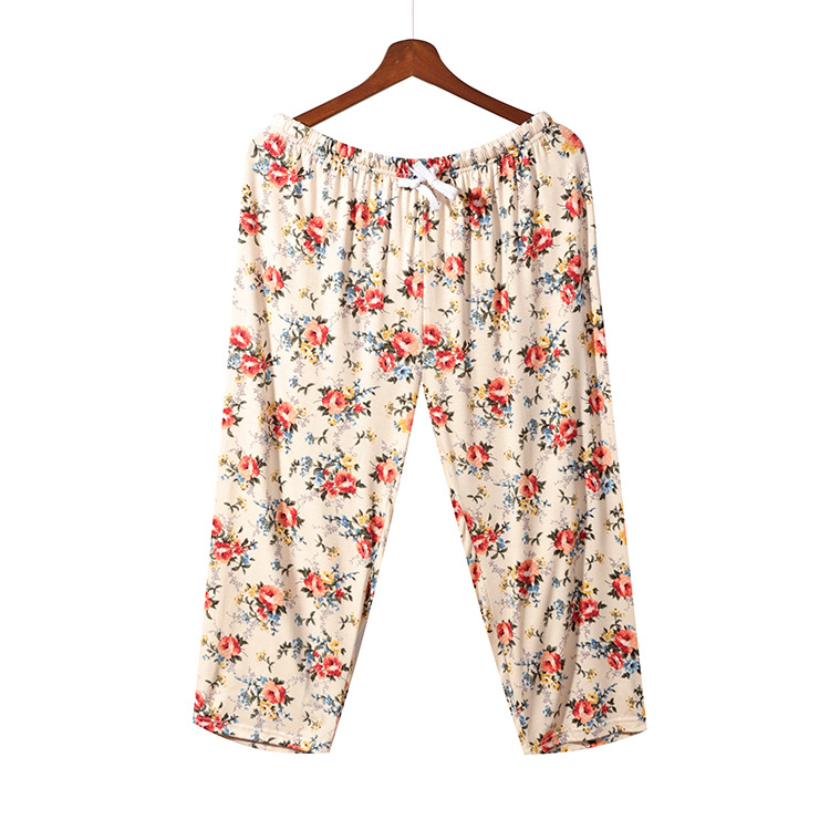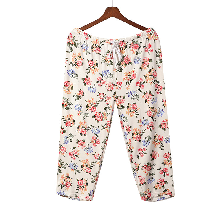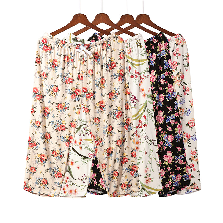 Grosir wanita musim semi dan musim panas baru tipis ukuran besar elastis tinggi kasual bottoming rumah longgar pelangsing bunga celana crop