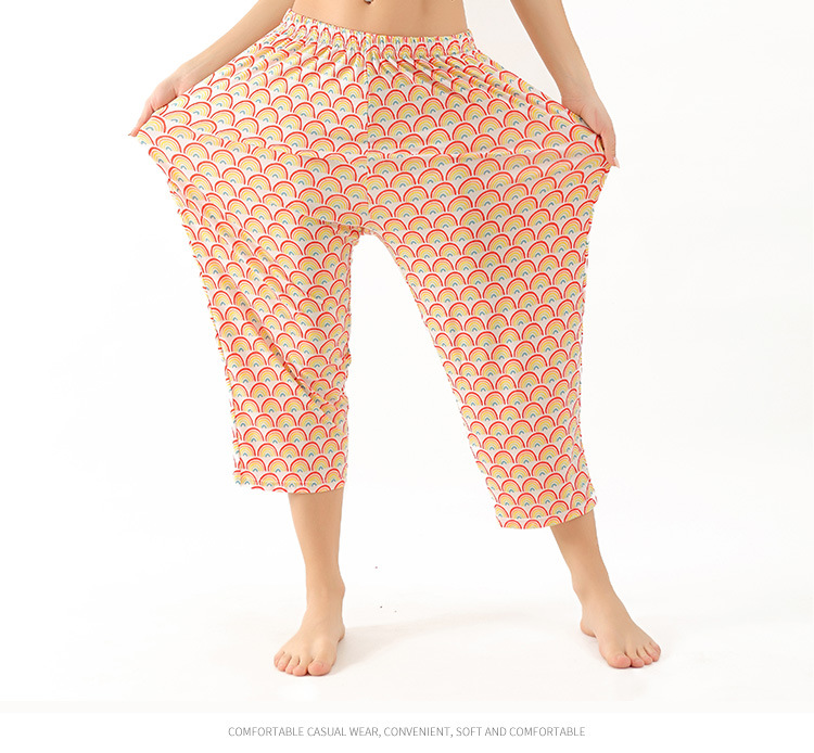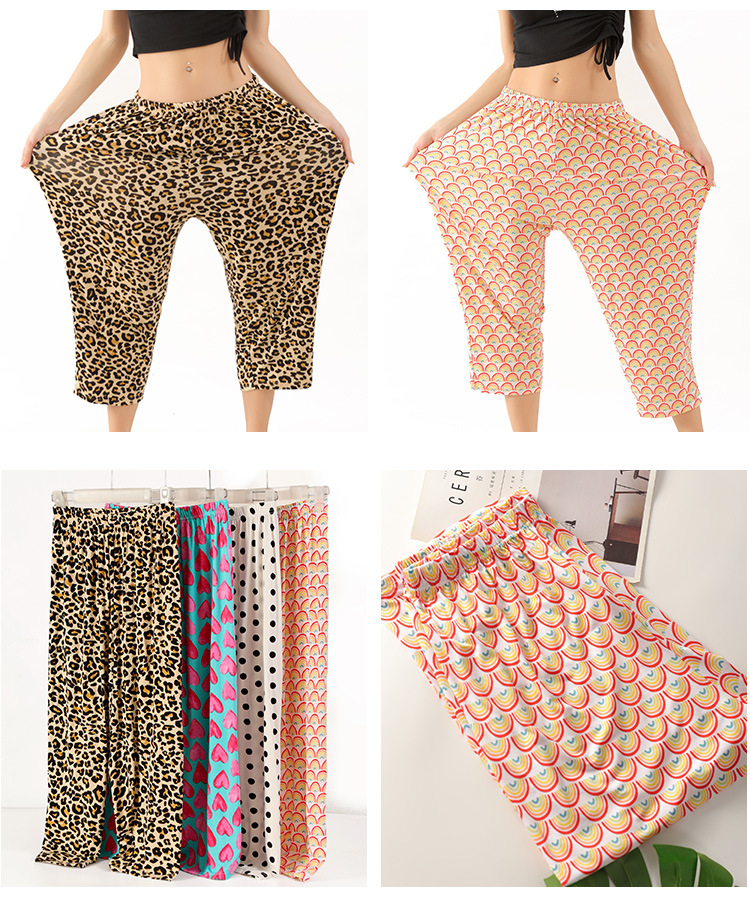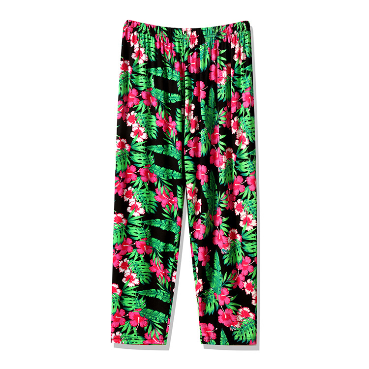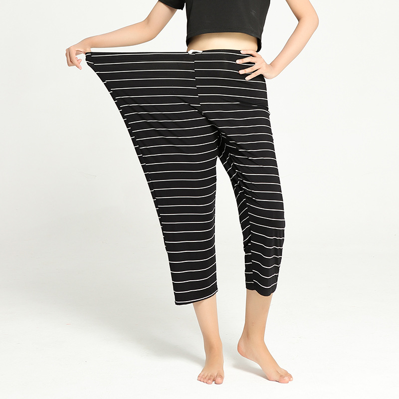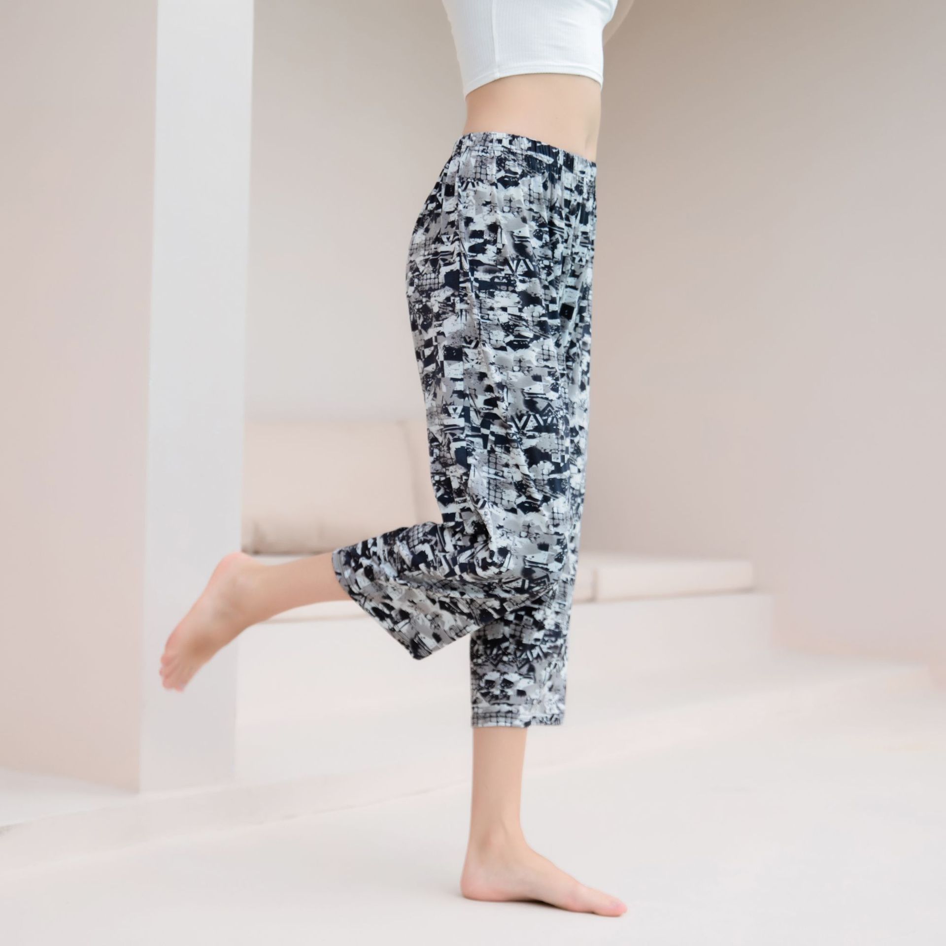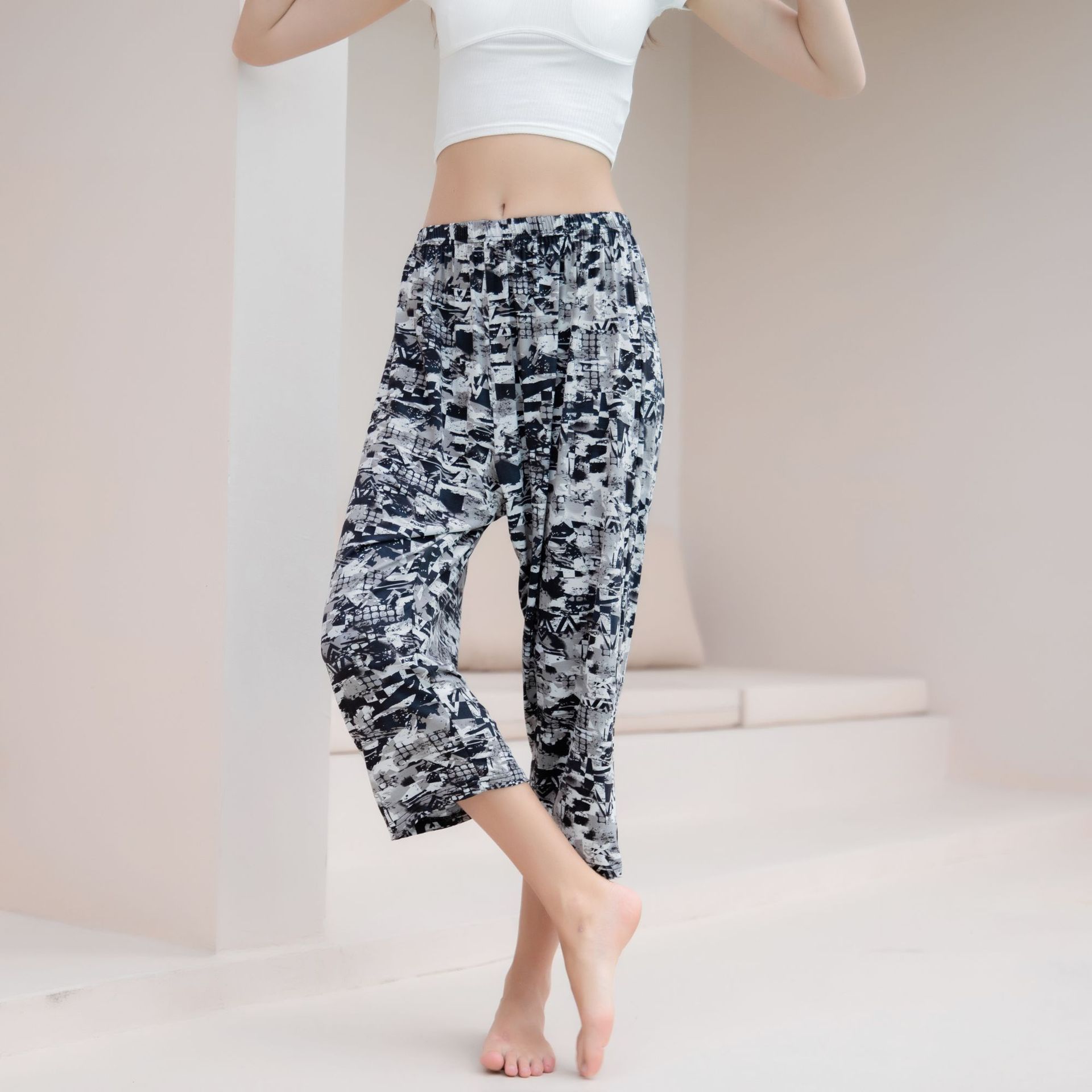 Grosir wanita musim semi dan musim panas baru tipis ukuran besar elastis tinggi kasual bottoming rumah longgar pelangsing bunga celana crop