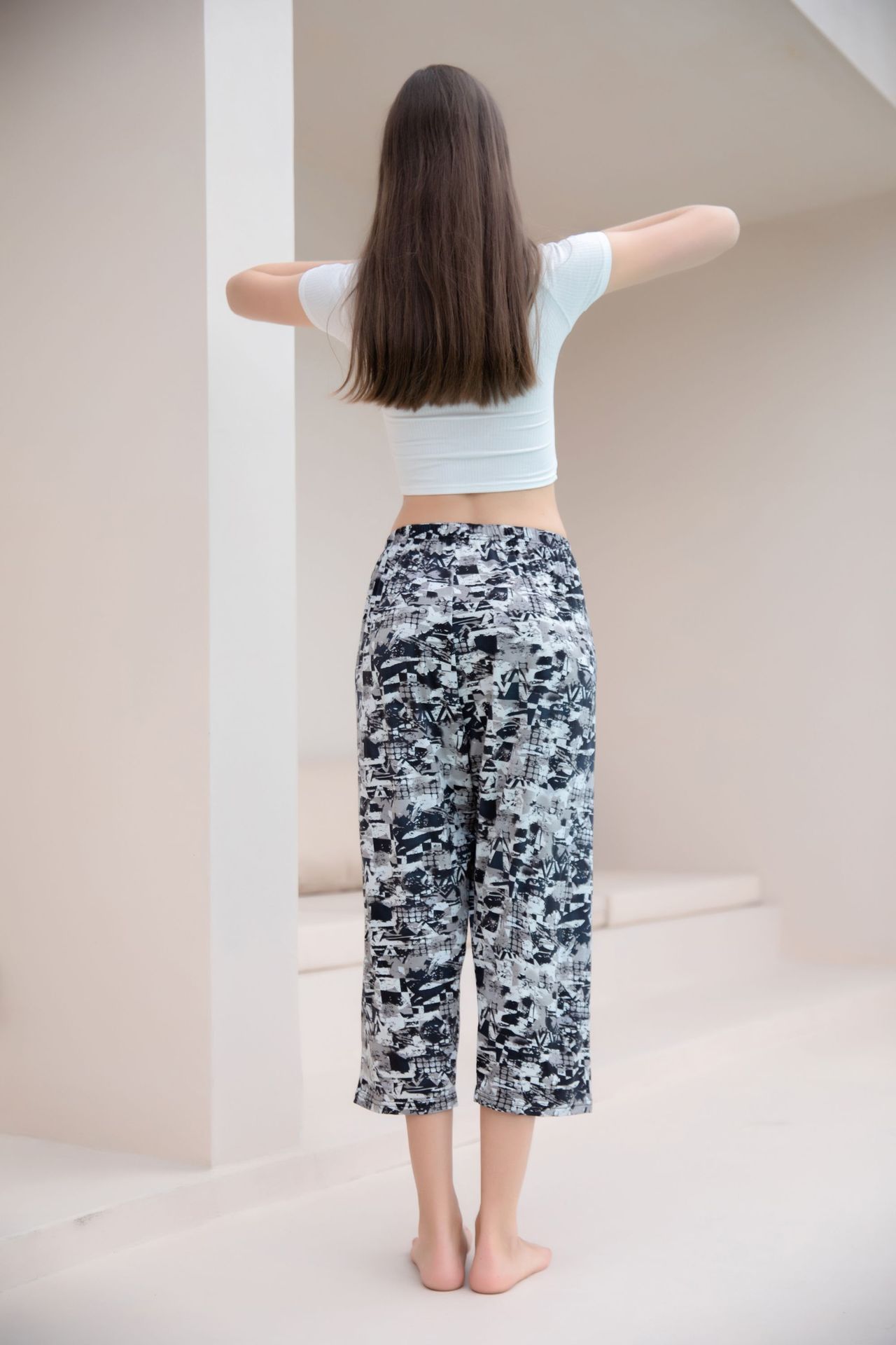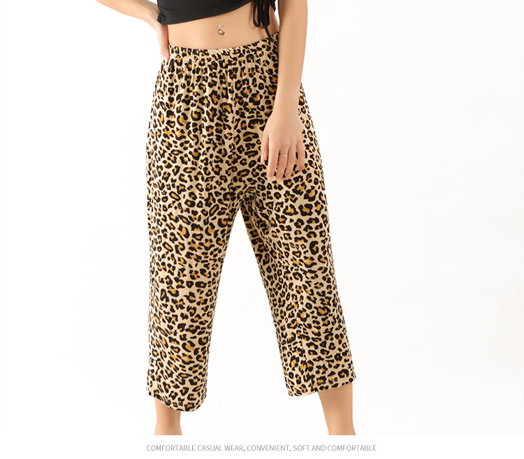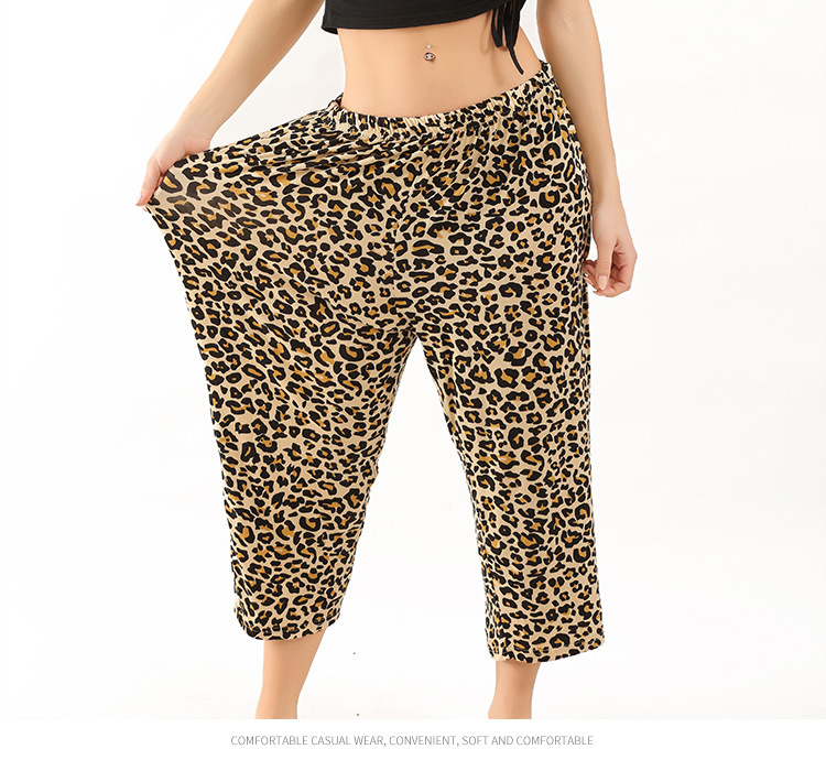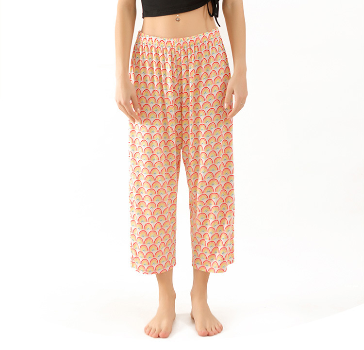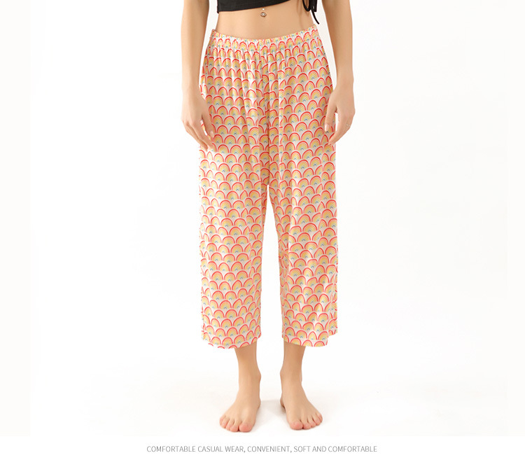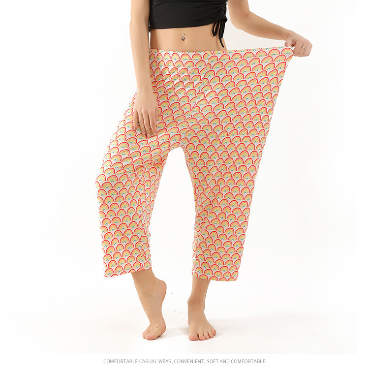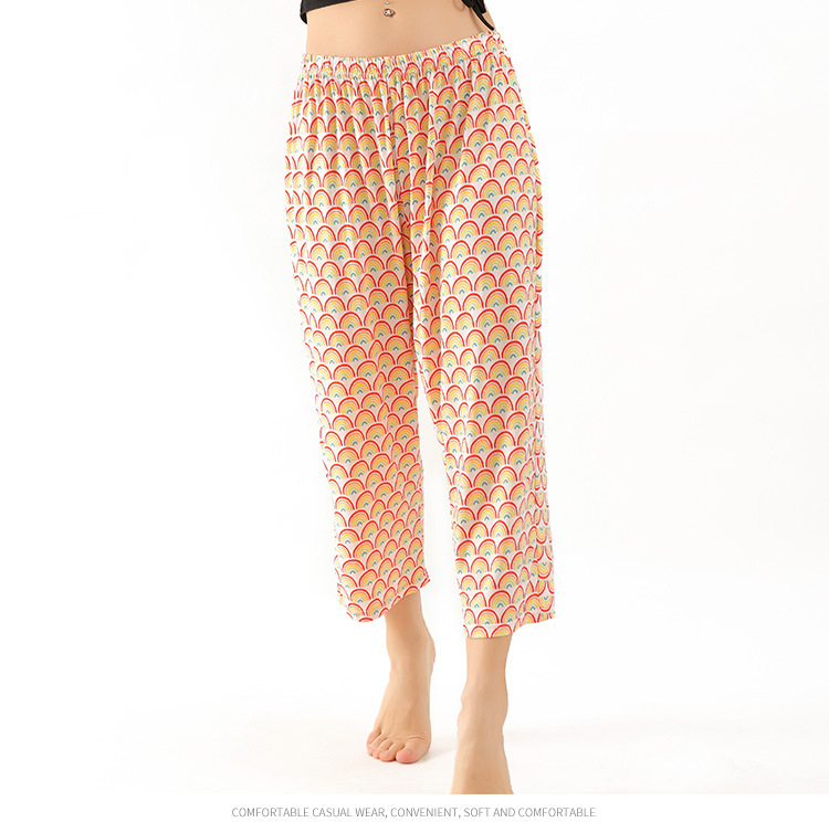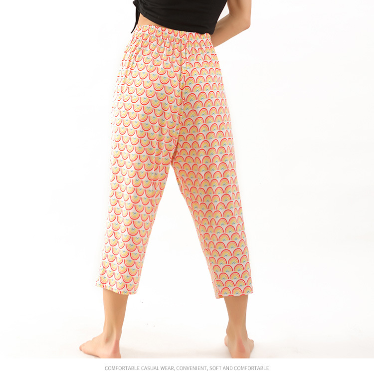Grosir wanita musim semi dan musim panas baru tipis ukuran besar elastis tinggi kasual bottoming rumah longgar pelangsing bunga celana crop