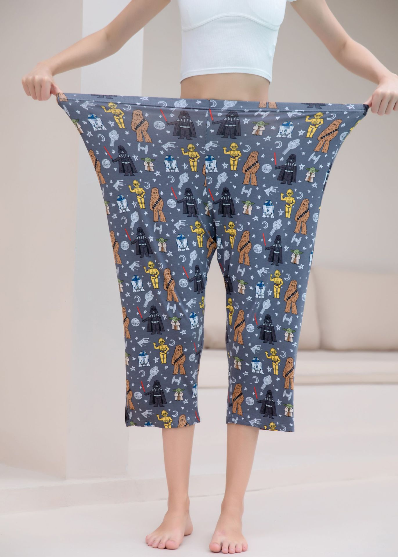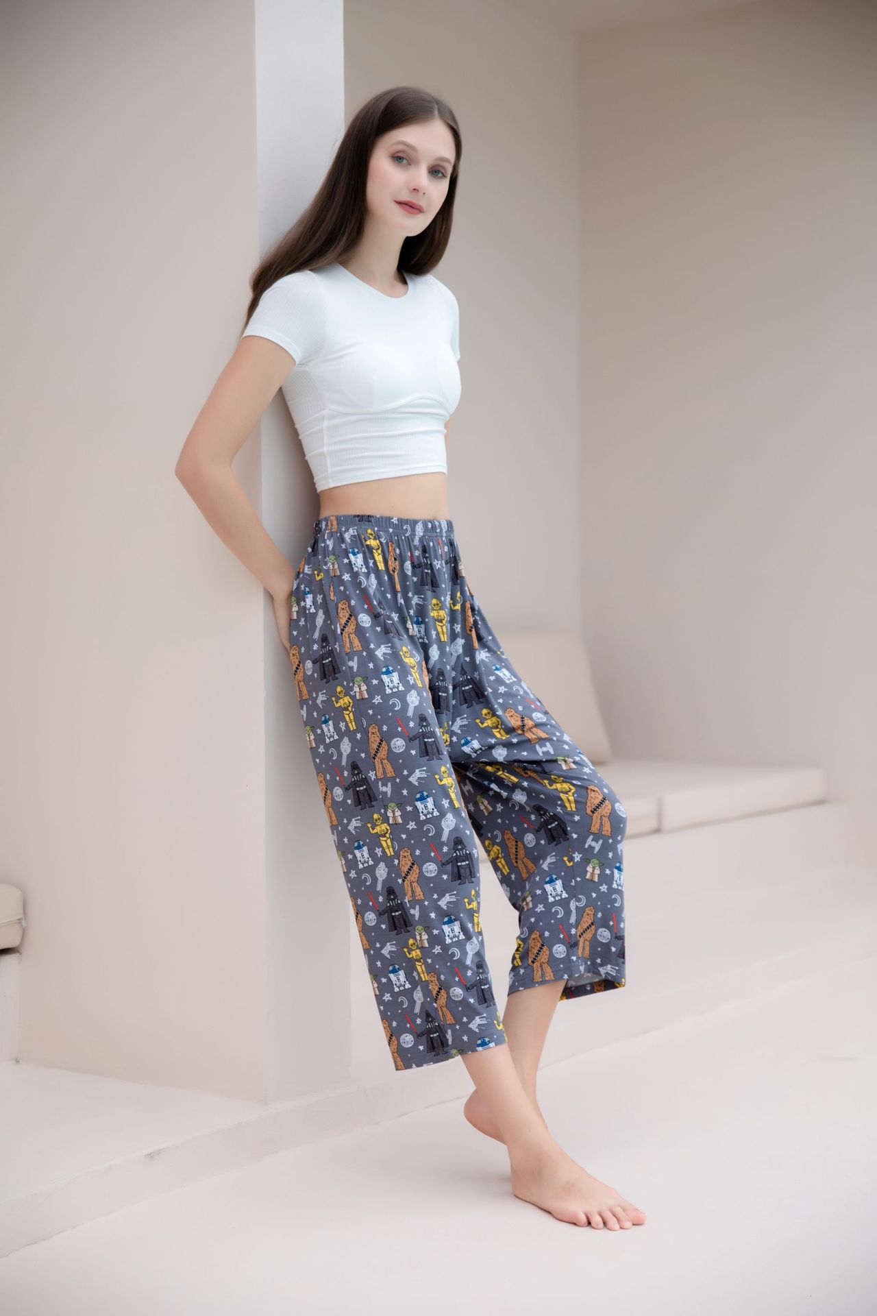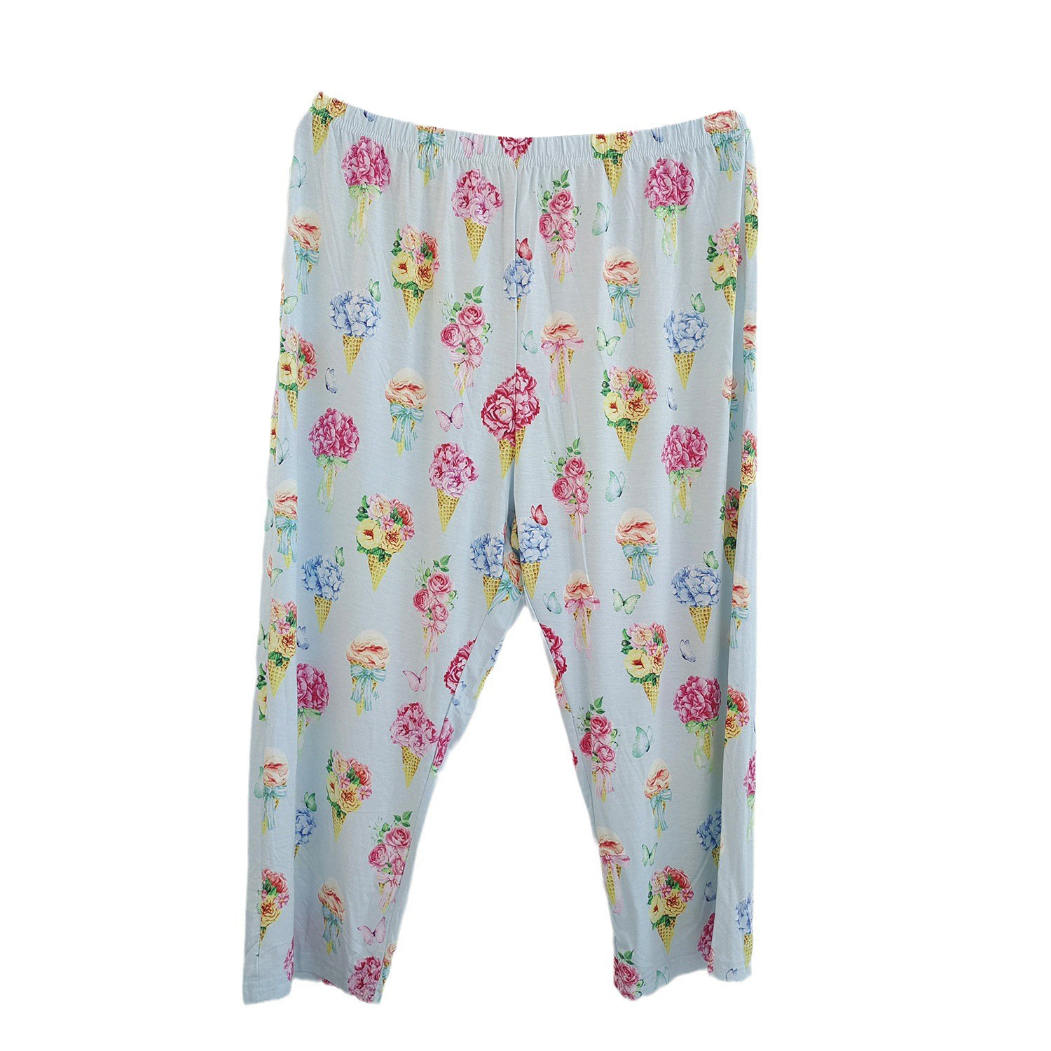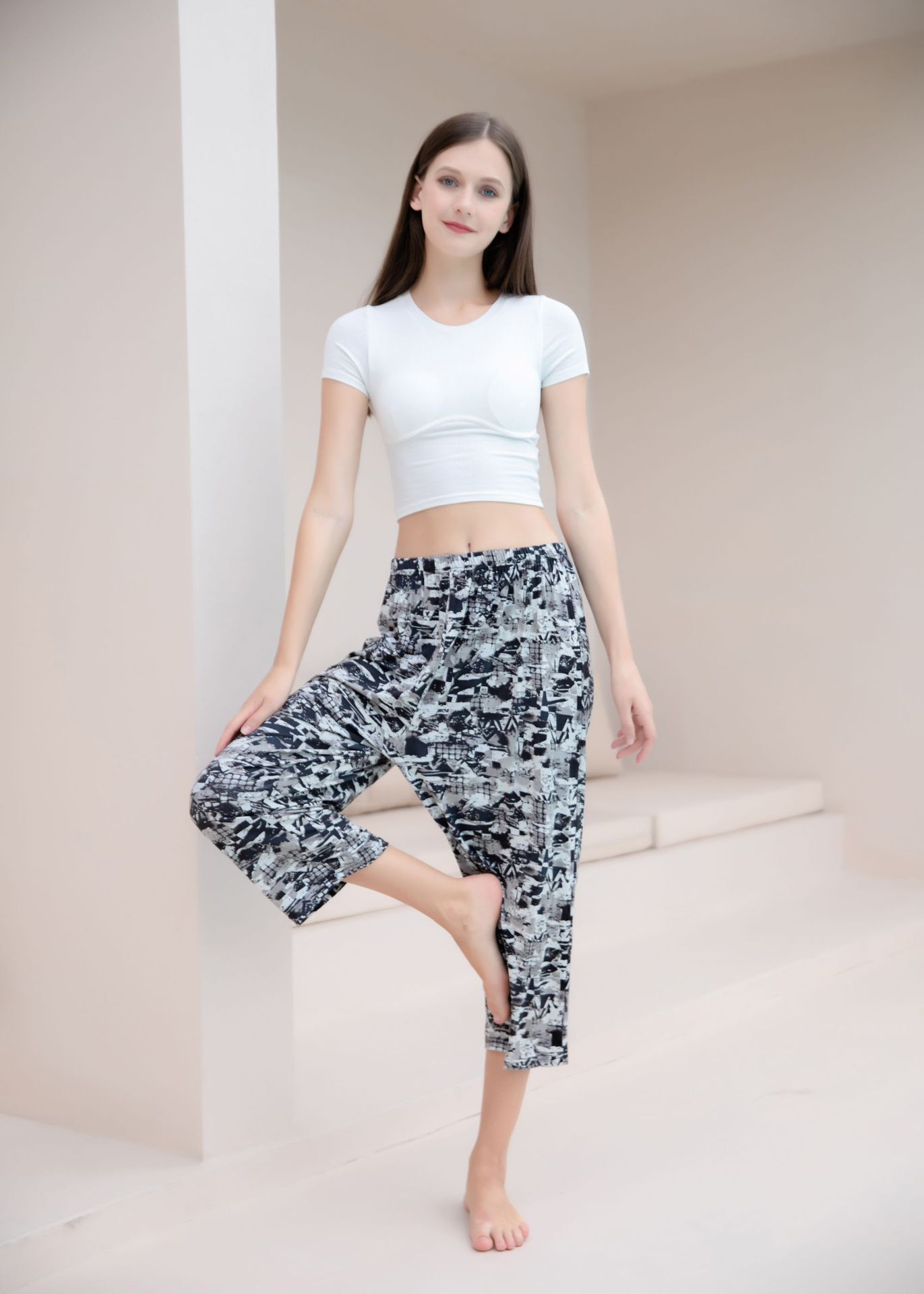 Grosir wanita musim semi dan musim panas baru tipis ukuran besar elastis tinggi kasual bottoming rumah longgar pelangsing bunga celana crop